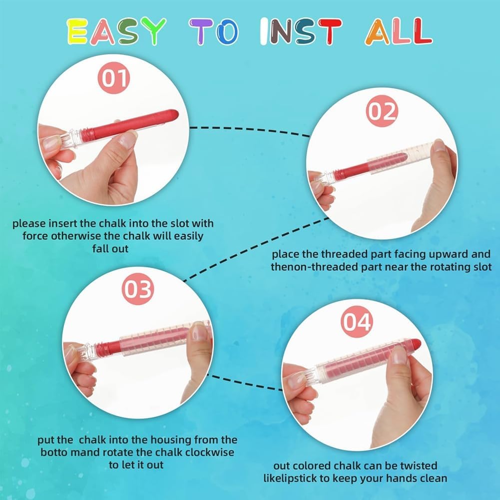 Realizzato con materiale di gesso di alta qualità e privo di polvere, il nostro prodotto fornisce una scrittura pulita e senza interruzioni e ne facilita la lettura. Le etichette possono essere facilmente rimosse con un asciugamano umido o un tovagliolo di carta, lasciando le tue tavole immacolate e pronte per il tuo prossimo sforzo creativo. La durata e l'affidabilità del nostro gesso senza polvere sono ulteriormente migliorate da un innovativo supporto regolabile e rotante che imita la funzionalità di un rossetto, garantendo facilità d'uso e riducendo il rischio di rottura o danneggiamento. L'alloggiamento sicuro impedisce inoltre alla polvere di gesso di disperdersi e causare potenziali disagi all'utente. Goditi la comodità del nostro gesso senza polvere in 12 colori diversi, che soddisfa le tue diverse esigenze di scrittura o artistiche. Che si tratti di insegnare, fare brainstorming, dipingere o scarabocchiare, queste tonalità vivaci soddisfano una varietà di esigenze estetiche, incoraggiando la creatività e migliorando la comprensione. La versatilità è in prima linea nel nostro gesso, rendendolo un accessorio perfetto per lavagne e lavagne bianche a casa e in ufficio. La sua applicabilità si estende anche ad altri locali che necessitano di una comunicazione visibile e chiara, come ad esempio: B. Ristoranti e bar per menù e cartelloni pubblicitari.