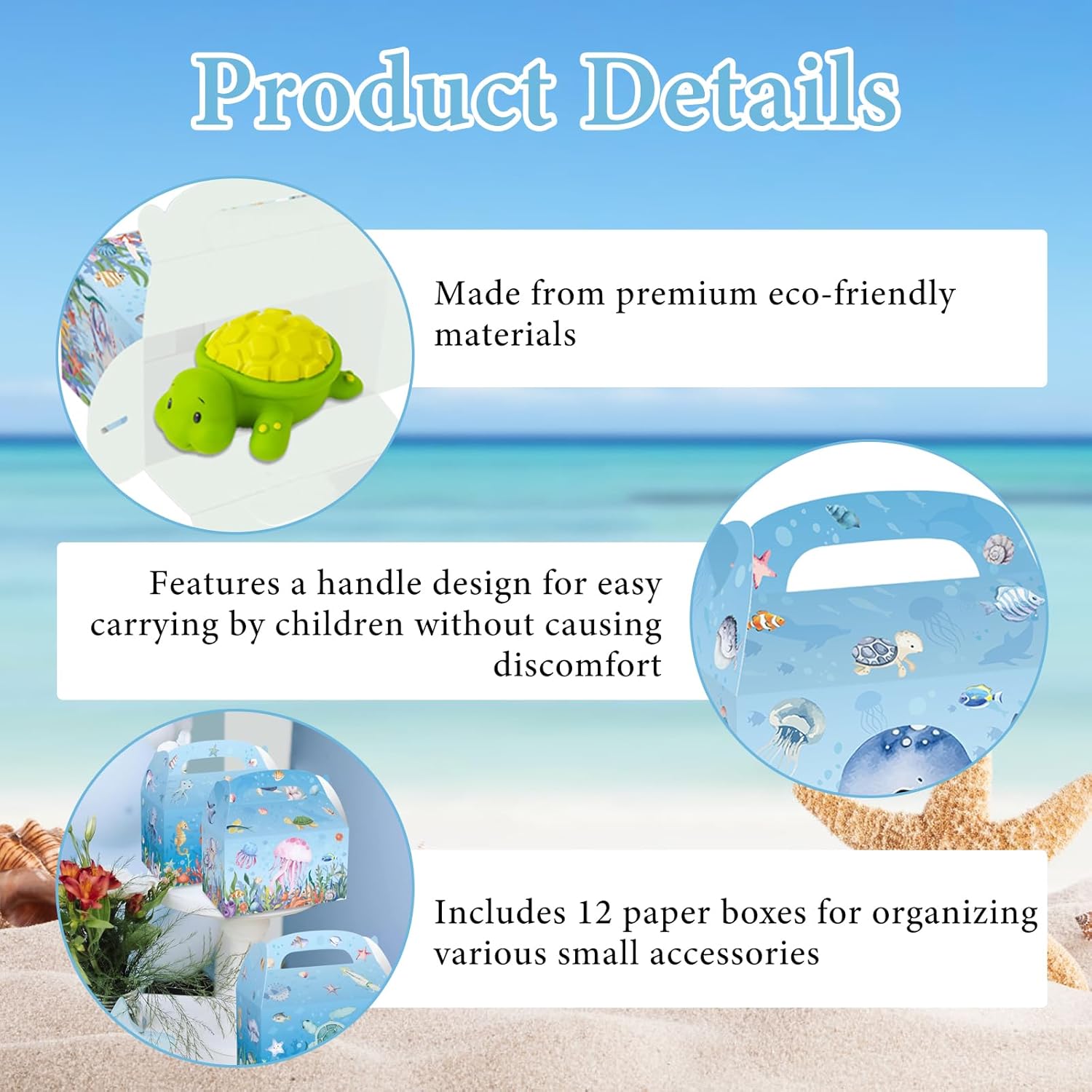 Ecologiche e durevoli: le nostre scatole blu per dolcetti del mondo sottomarino sono realizzate in carta con buone proprietà di resistenza alla pressione, agli urti e agli urti. Estremamente decorative: le nostre scatole per regali per feste a tema animale oceano possono aumentare l'attrattiva visiva della confezione regalo attraverso decorazioni come stampe, adesivi o nastri. Dimensioni della scatola: Le nostre scatole per bomboniere sottomarine sono splendidamente progettate, la dimensione della scatola è di circa 16*9,5*9,5 cm, per soddisfare le tue esigenze quotidiane Convenienza e semplicità: Le nostre scatole per bomboniere a tema animale oceano possono essere assemblate in base al design della scatola, della base e della maniglia di trasporto per garantire una struttura solida Ampia gamma di applicazioni: Le nostre scatole per bomboniere per feste sull'oceano possono essere utilizzate in casa per conservare dolci, ma anche come scatole per riporre piccoli oggetti