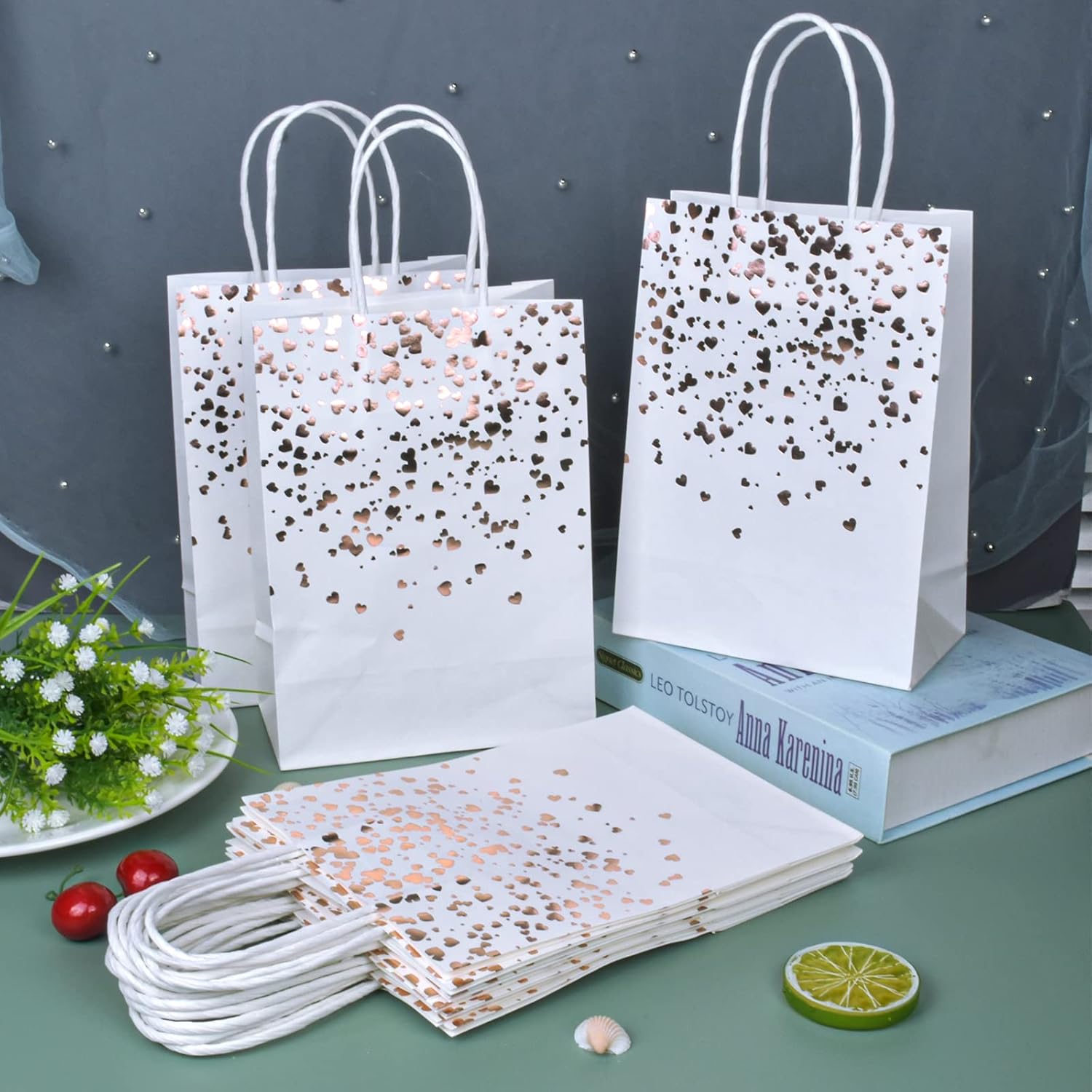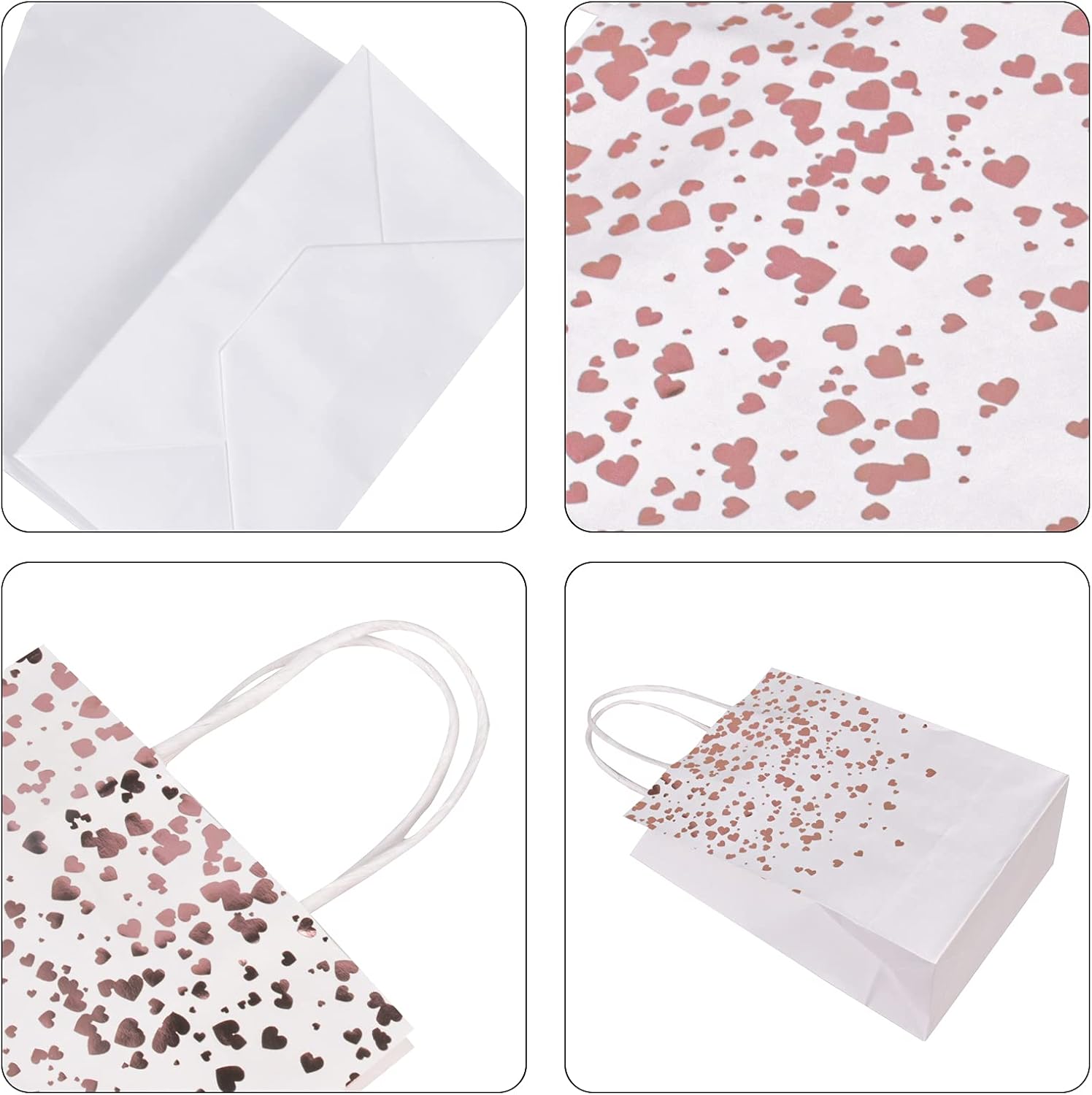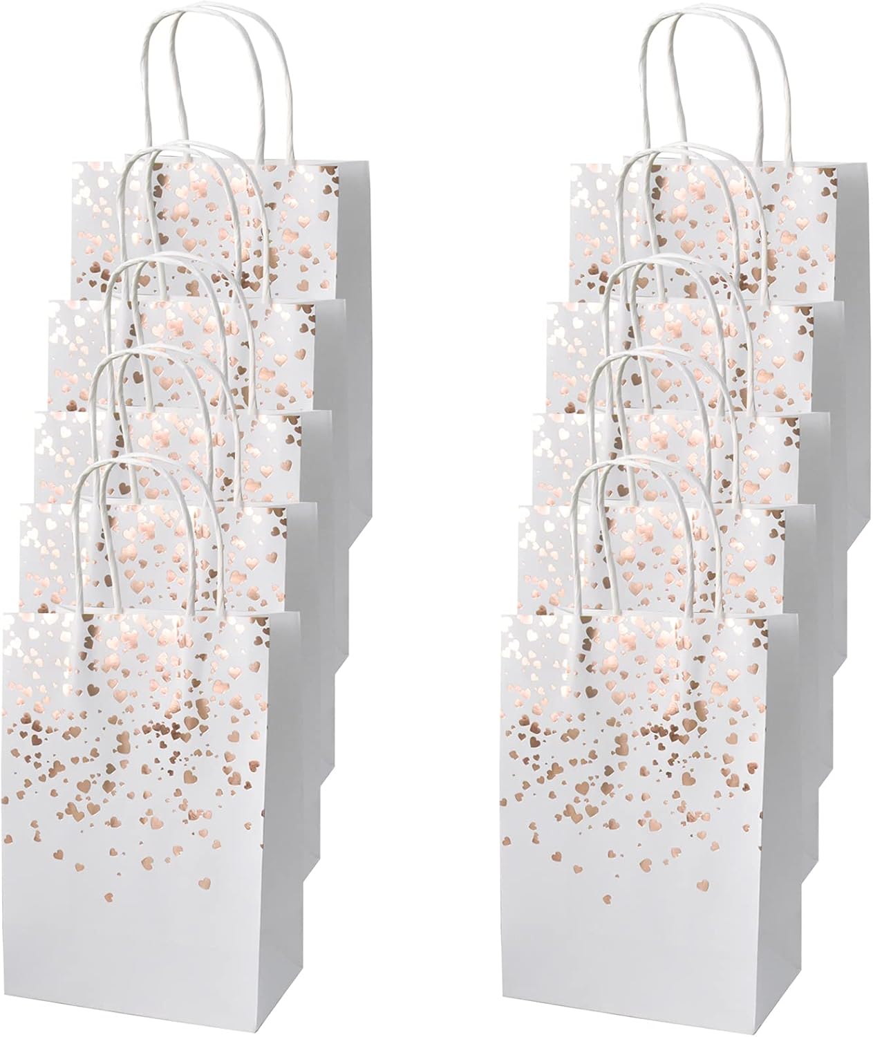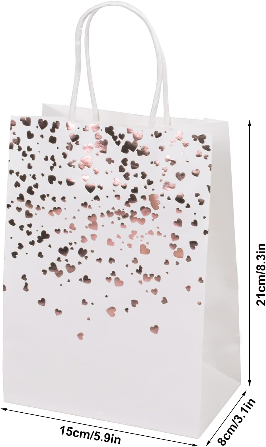 【Materiale】Le borse da festa in carta bronzo sono realizzate in carta kraft di alta qualità, riutilizzabile, pieghevole e riciclabile. 【Dimensioni】 Il piccolo sacchetto di carta kraft marrone misura 15 x 8 x 21 cm, un totale di 12 sacchetti di carta kraft con motivi a cuore color oro bronzato. 【Design】Ogni sacchetto regalo ha una maniglia nella parte superiore, la maniglia è alta circa 8 cm, facile da trasportare, ideale per lo shopping. 【Sacchetto di carta fai-da-te】 Puoi attaccare o disegnare i tuoi elementi preferiti sul sacchetto regalo per creare un sacchetto regalo unico e significativo. Applicazione: questi sacchetti di carta kraft bianca sono adatti per confezionare regali di Natale, Halloween, compleanni, matrimoni, lauree e feste varie. Rendi il tuo regalo più accattivante.