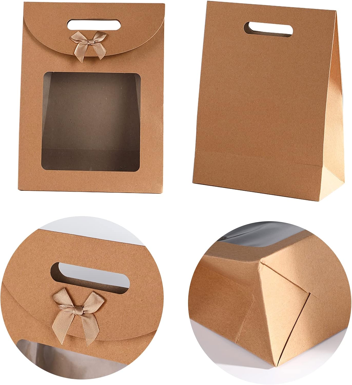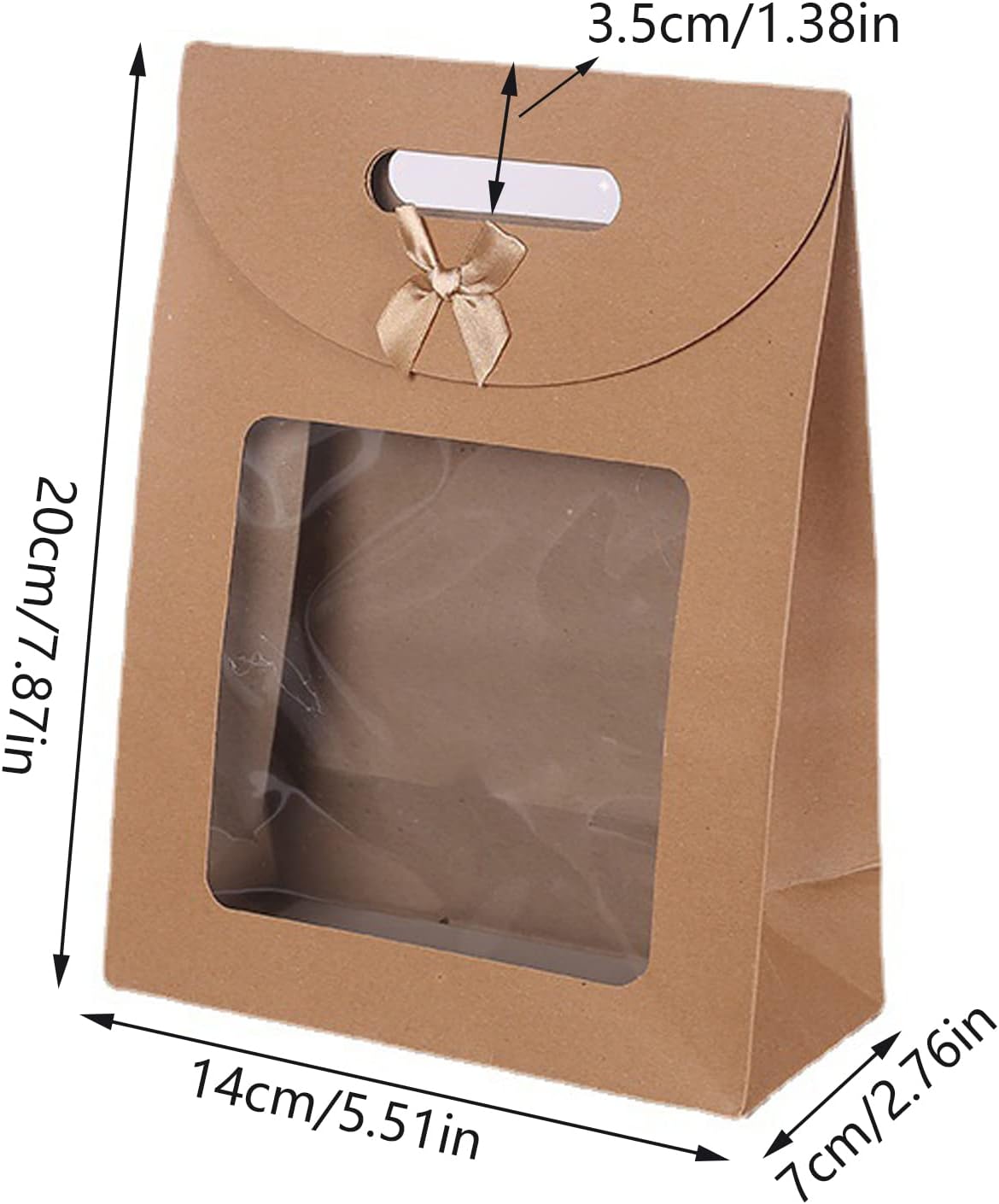 MATERIALE DI ALTA QUALITÀ: la borsa regalo con manico è realizzata in carta kraft. Il sacchetto regalo è spesso e resistente, bello, liscio al tatto, non facile da danneggiare, riutilizzabile, non tossico e può essere utilizzato a lungo. DESIGN PERFETTO: I sacchetti di carta marrone con manico hanno una maniglia e una finestra, che non solo facilita la presa ma permette anche di vedere gli oggetti all'interno. Inoltre, la base rettangolare assicura che la borsa rimanga in posizione verticale e così anche tutto ciò che contiene. FACILI DA CONSERVARE: i sacchetti di carta marrone con manici sono pieghevoli e misurano circa 14*7*20 cm quando aperti e 14*2*20 cm quando piegati. Puoi riporre le scatole regalo Kraft in posizione piatta in modo che non occupino troppo spazio. MIGLIOR REGALO: le scatole regalo in carta kraft sono perfette come confezione regalo o regalo principale, piene di regali, caramelle, snack e altro per i tuoi cari. Lascerai a bocca aperta i tuoi cari. VERSATILE: le scatole regalo Kraft possono essere utilizzate per confezionare cioccolatini, dolci nuziali, caramelle, gioielli e piccoli regali. Può essere utilizzato per Natale, compleanni, appuntamenti, lauree, Pasqua e altre festività.