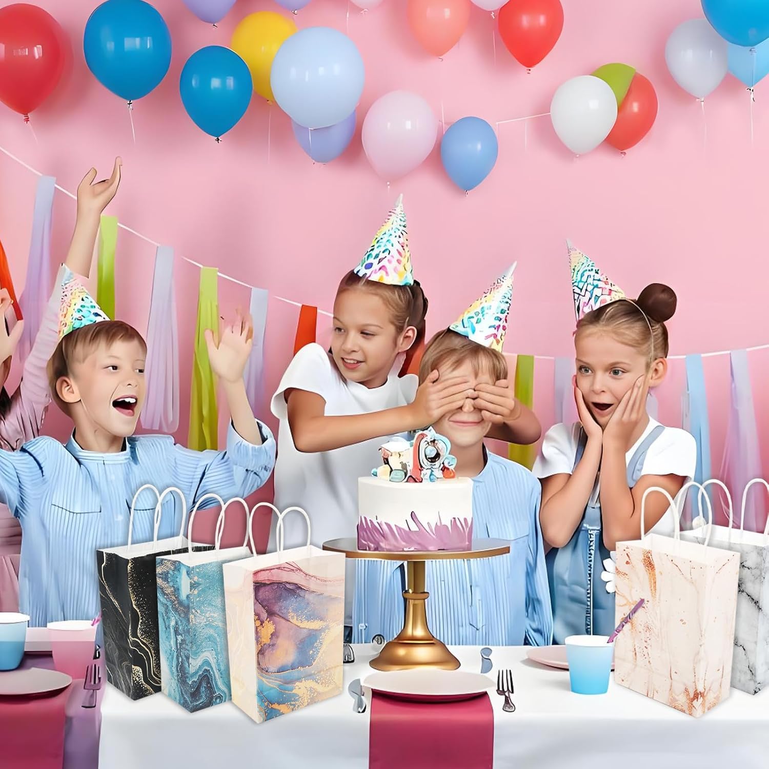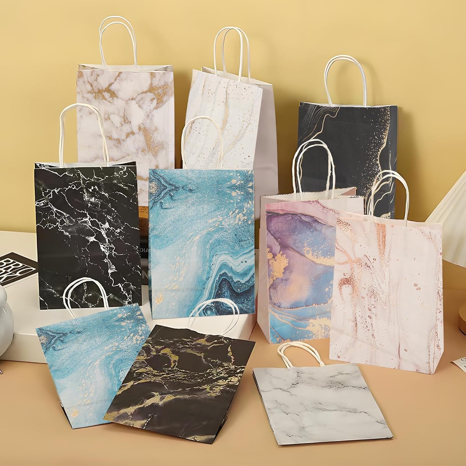 【Pacchetto incluso】Riceverai 12 sacchetti regalo con modelli diversi, ogni sacchetto regalo misura 15 x 8 x 21 cm, la dimensione giusta per le varie esigenze della vita quotidiana e delle feste. 【Materiale di qualità】 Questi piccoli sacchetti regalo con manici sono realizzati in carta kraft, che ha una buona tenacità e durata, in grado di resistere a oggetti più pesanti e non facile da rompere. Rimangono robusti e affidabili anche dopo molti utilizzi. Facile da riporre e trasportare: i nostri sacchetti regalo di compleanno occupano poco spazio una volta piegati e possono essere facilmente riposti quando non vengono utilizzati. Una volta aperti, hanno una grande capacità e possono contenere una varietà di oggetti, perfetti per l'uso quotidiano e da portare con sé. 【Squisito e pratico】 I nostri sacchetti regalo di compleanno per bambini sono piatti a terra e possono stare in posizione verticale, il che è comodo e pratico. Il motivo in marmo sul sacchetto di carta kraft è dettagliato ed elegante, evidenziandone la bellezza distintiva. 【Ampia applicazione】 I regali di compleanno dei nostri bambini possono essere utilizzati non solo per feste di compleanno, matrimoni, feste e altri eventi, ma anche per lo shopping quotidiano, la confezione di regali o la conservazione di piccoli oggetti, il che è l'ideale per te.