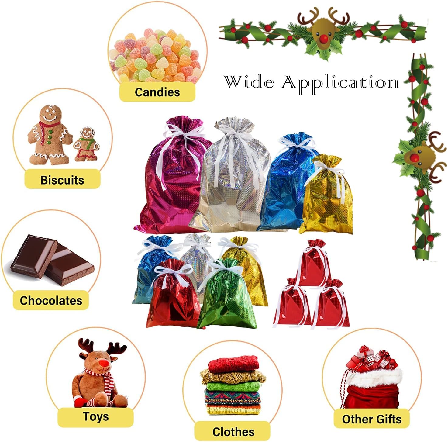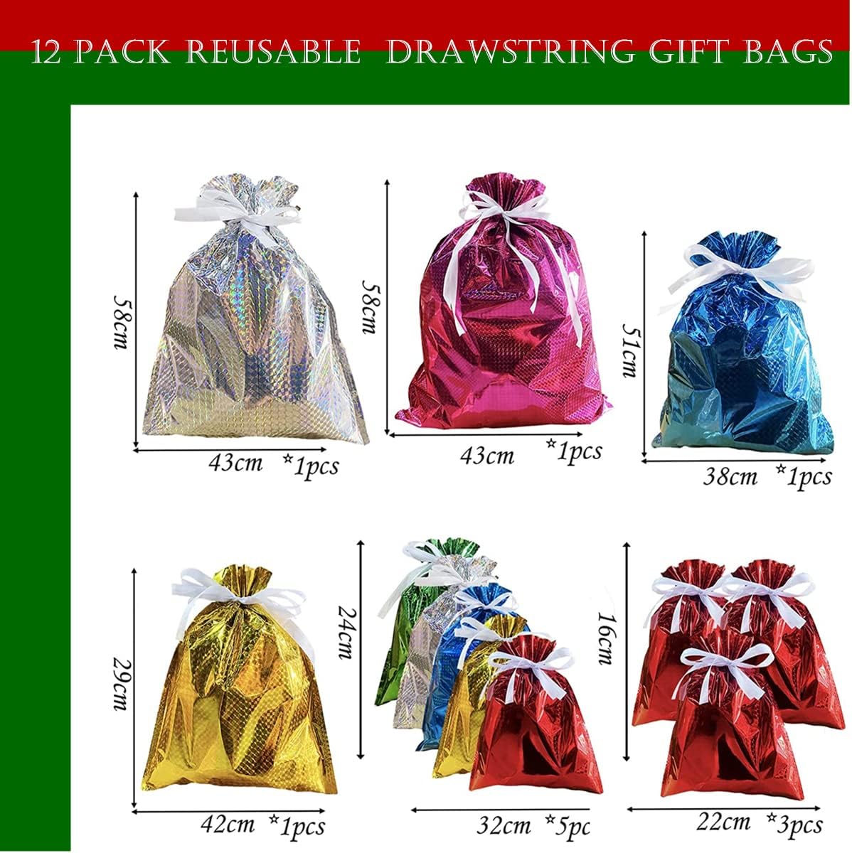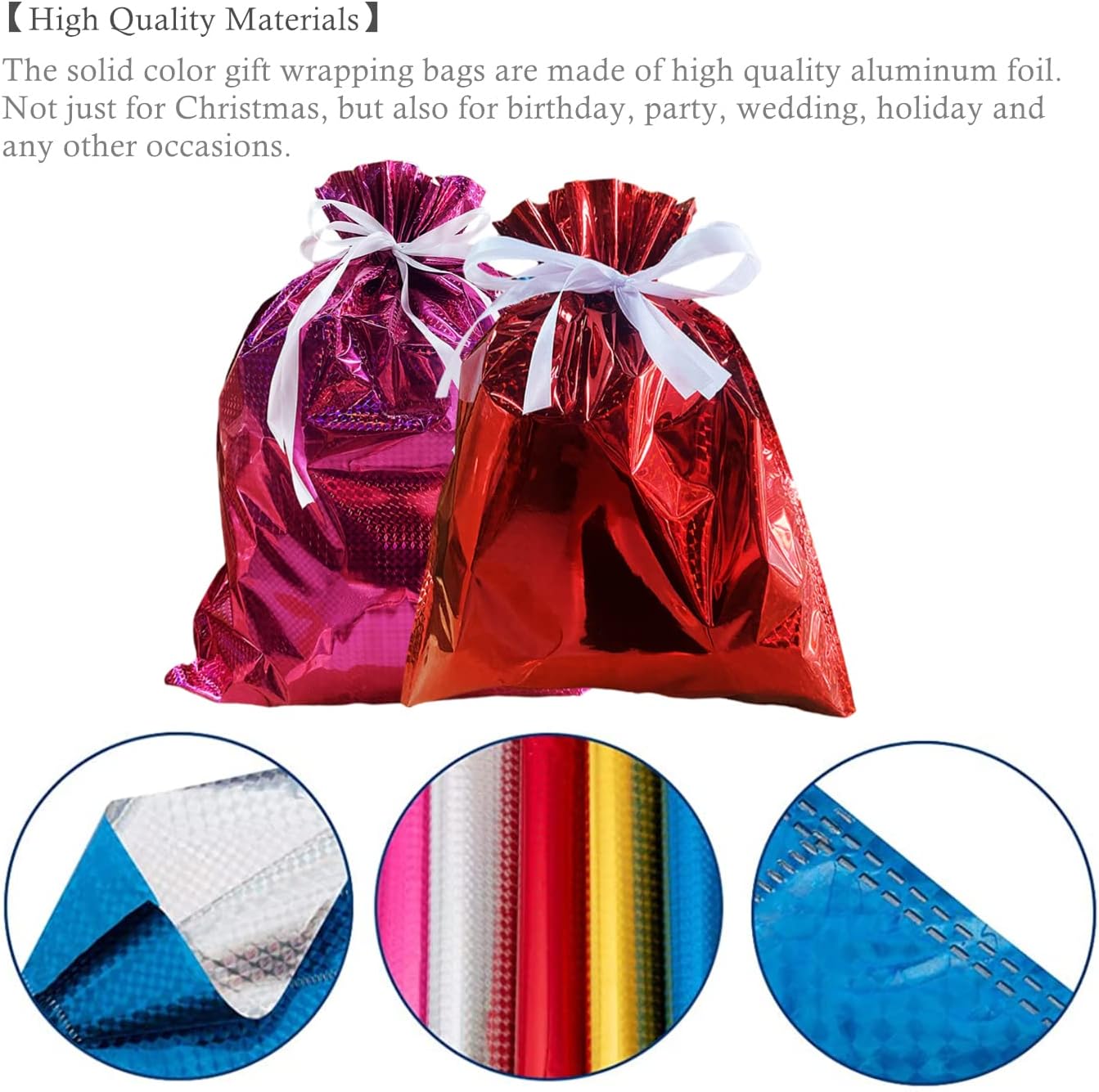 🎁【Sacchetti regalo natalizi con cordoncino】: 12 pezzi in totale. 2 sacchetti regalo di Natale sfusi 58 x 43 cm, rosa e argento. 1 grande sacchetto regalo di Natale 51 x 38 cm, blu. 1 sacchetto regalo dorato 42 x 29 cm. 5 sacchetti regalo di Natale medi 32 x 24 cm, blu, oro, giallo, rosso, verde. 2 x 16 cm. 🎁【Materiali di alta qualità】I sacchetti regalo di Natale in tinta unita sono realizzati con un foglio di alluminio di alta qualità. Bello, pratico, leggero per un trasporto facile e duraturo. Coulisse per la chiusura. Non facile da rompere per un riutilizzo durevole e duraturo e facile da riporre dopo la piegatura. 🎁【Design】Sacchetti natalizi di diverse dimensioni, blu, oro, giallo, rosso, verde, rosa e argento. Puoi decorare il tuo Natale e creare un'atmosfera felice e vivace per Natale. 🎁【Ampia applicazione】Sacchetti regalo di Natale dal miglior rapporto qualità-prezzo per confezionare regali di Natale. Perfetto per decorazioni natalizie, confezioni regalo di Natale, decorazioni di regali di Natale, aule, bomboniere, regali di festa extra speciali, decorazioni per feste, matrimoni, alberi di Natale, bottiglie di vino, per evidenziare l'atmosfera di buon Natale. 🎁【Buon Acquisto】Garanzia di soddisfazione al 100%. Se hai qualche problema con i prodotti che hai acquistato da noi, non esitare a contattarci e ti risponderemo entro 24 ore.