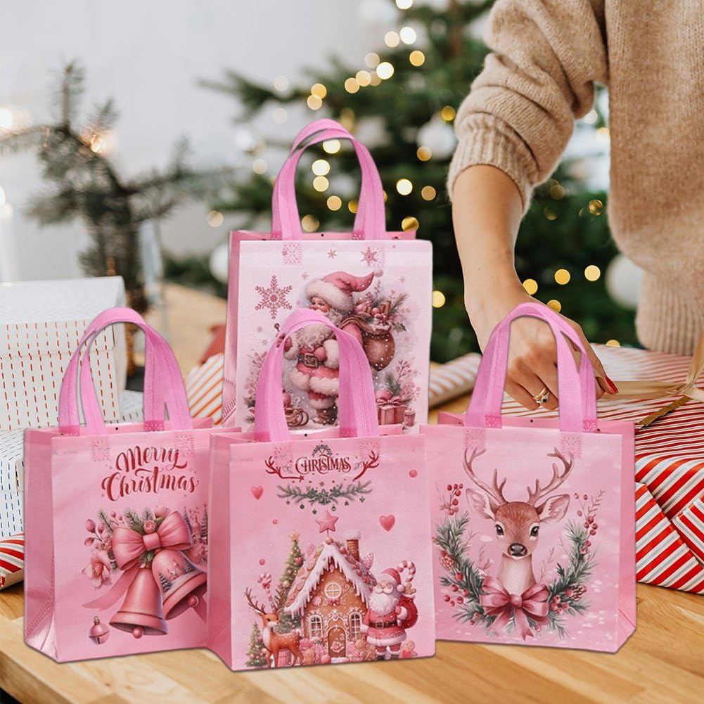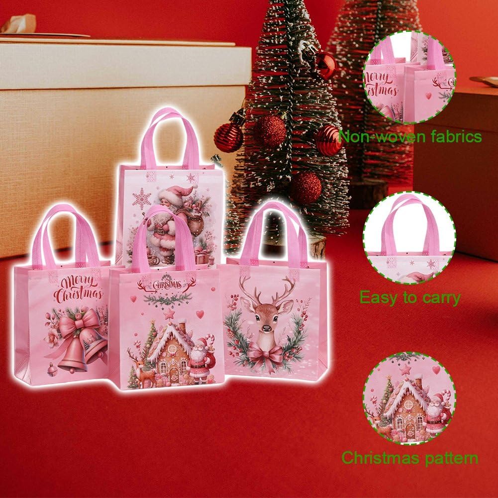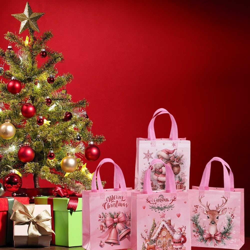 DESIGN FESTIVO: Un set di 12 eleganti sacchetti regalo decorati con un'affascinante grafica a tema natalizio per creare un'atmosfera festosa DIMENSIONI PERFETTE: Ciascuno misura 22 cm di larghezza x 23 cm di altezza x 11 cm di profondità, ideali per regali di festa, dolcetti e bomboniere USO VERSATILE: Perfetti per lo shopping natalizio, gli acquisti di regali, le bomboniere e lo stoccaggio delle feste, questi sacchetti aggiungono un tocco magico alle tue celebrazioni festive COSTRUZIONE DUREVOLE: Realizzati in robusto tessuto non tessuto con manici rinforzati, garantiscono affidabilità utilizzare durante le festività natalizie CARATTERISTICHE PRATICHE: Gli interni spaziosi con robuste maniglie per il trasporto rendono queste borse riutilizzabili comode per regali di festa e esigenze di conservazione stagionale