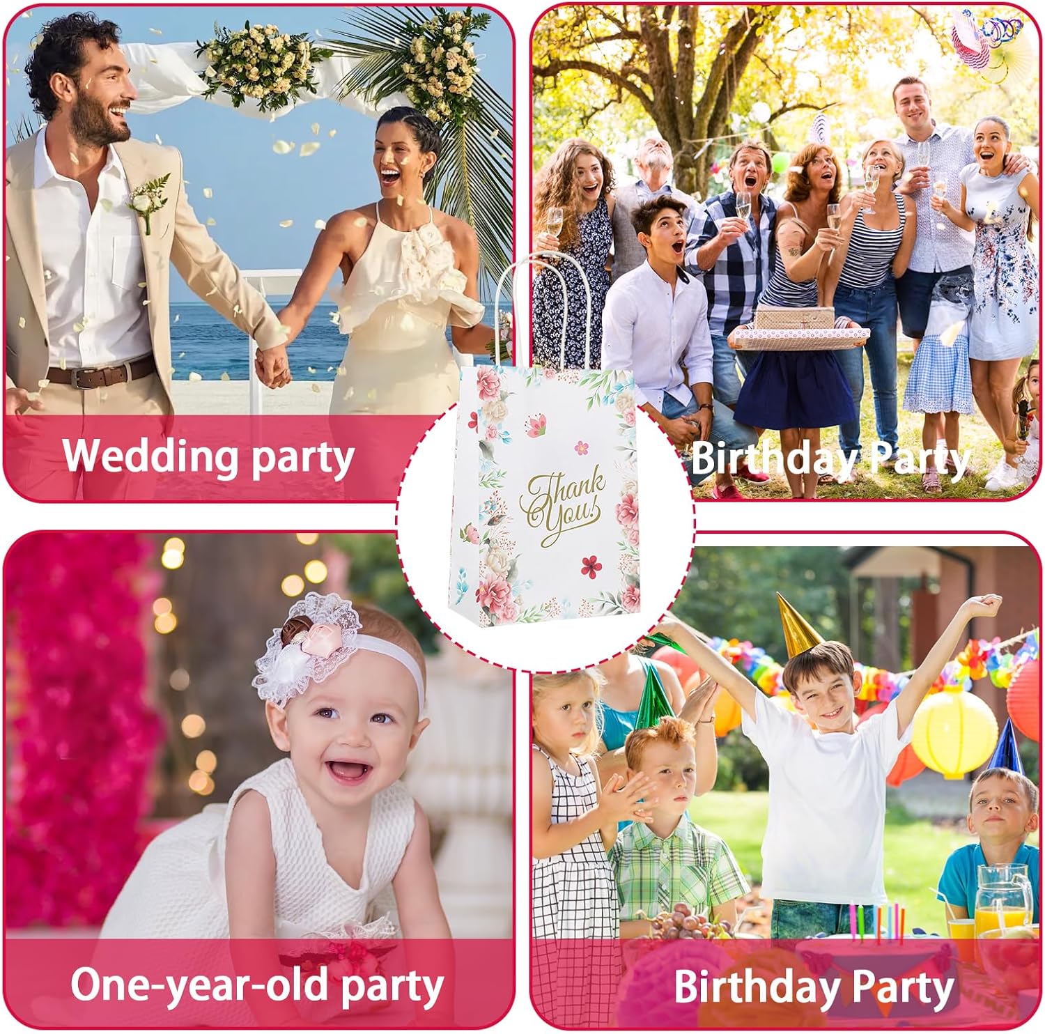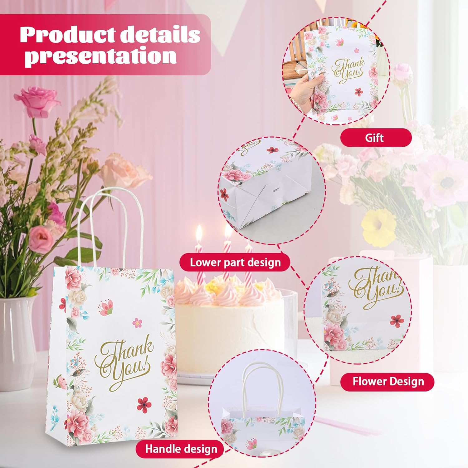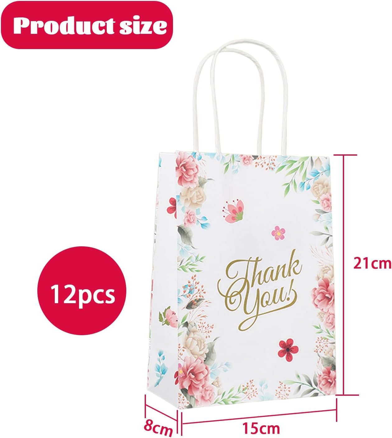 Materiali di alta qualità: i nostri sacchetti regalo sono realizzati in carta kraft di alta qualità, nota per la sua resistenza e durata. I colori brillanti e chiari assicurano che le borse siano visivamente accattivanti e lascino un'impressione duratura ai tuoi ospiti. Molteplici occasioni: che si tratti di compleanni di bambini, matrimoni o altre celebrazioni, questi versatili sacchetti regalo sono perfetti per confezionare piccoli regali con stile. Sono ideali per regali di ringraziamento e faranno sentire i tuoi ospiti ancora più apprezzati. Dimensioni pratiche: con una dimensione di 15x8x21 cm, le borse offrono spazio sufficiente per una varietà di piccoli regali. Sono maneggevoli ma abbastanza spaziosi per riporre i tuoi regali in modo sicuro e ordinato. Design elegante: i sacchetti regalo bianchi sono progettati con un attraente motivo floreale che aggiunge un tocco elegante. Questo design senza tempo li rende la scelta perfetta per qualsiasi celebrazione in cui lo stile e l'estetica sono fondamentali. Contenuto della confezione: ogni confezione contiene 12 squisiti sacchetti regalo pronti per l'uso. Non solo forniscono borse sufficienti per una celebrazione di medie dimensioni, ma sono anche una soluzione pratica per gli ospiti che danno valore ai dettagli.