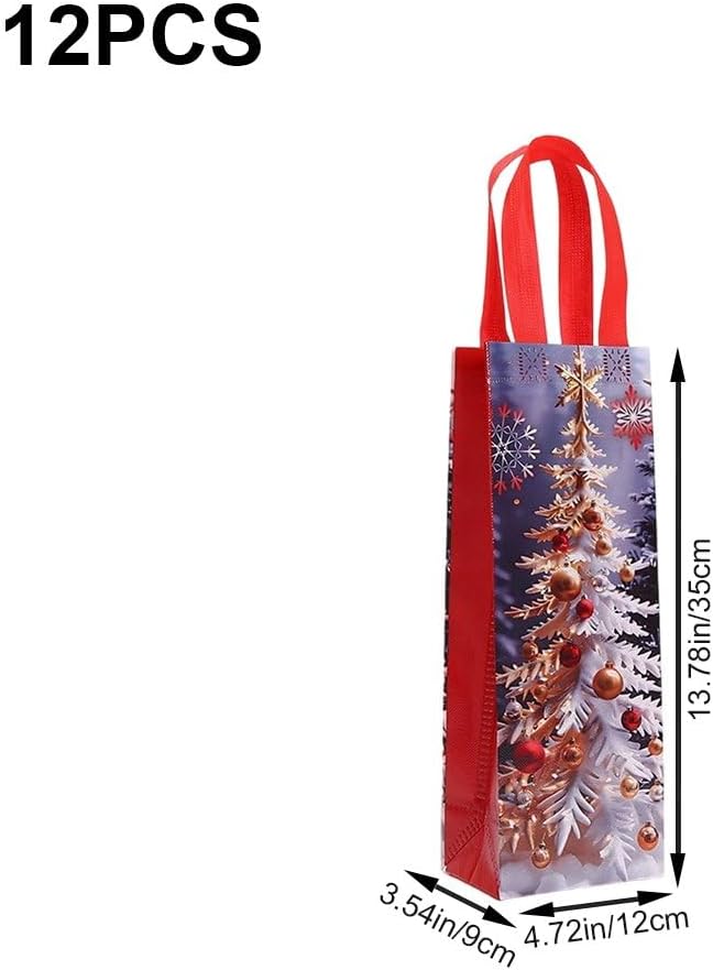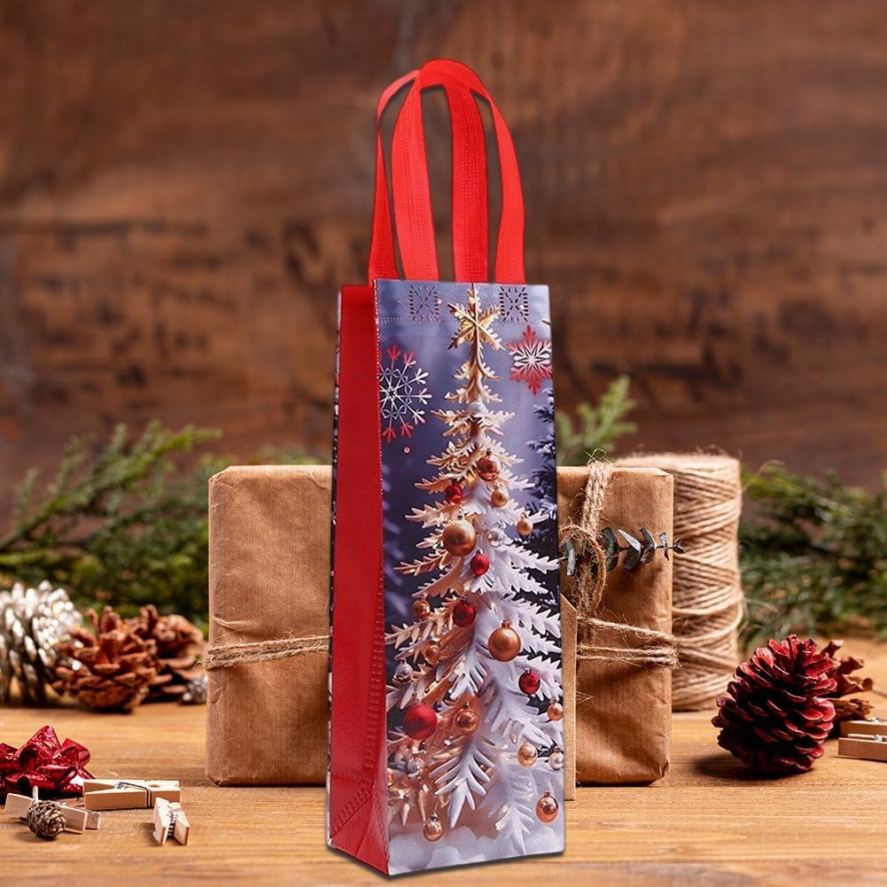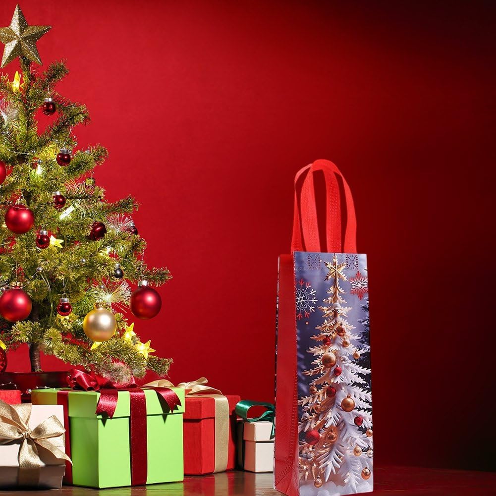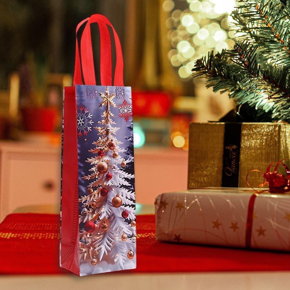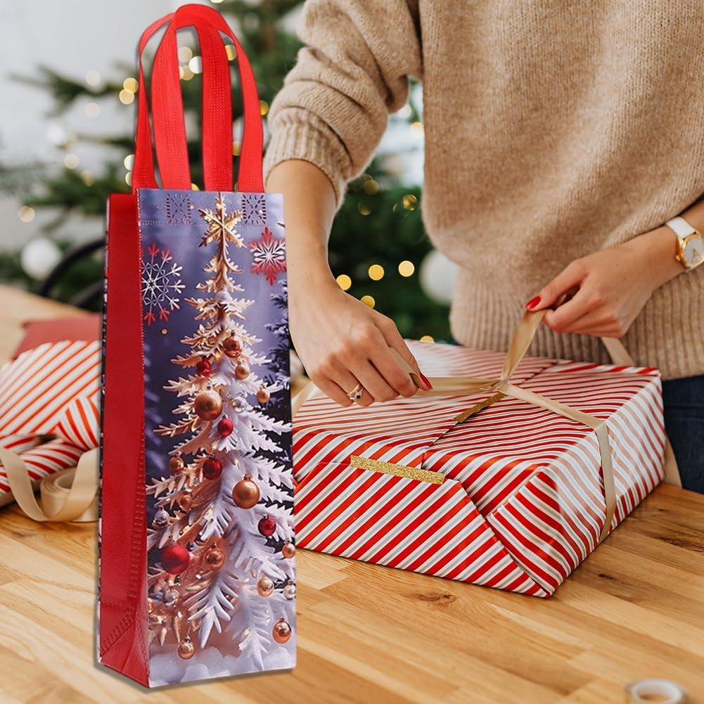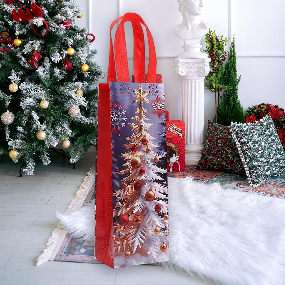 Design di stampa natalizia festiva: vivaci stampe a tema natalizio completano l'estetica natalizia. Dona un allegro tocco stagionale ai regali di vino, ideale per feste, riunioni di famiglia o scambi di regali di Natale. Comodo per le feste: leggero e facile da trasportare, il che lo rende ideale per portare vino a feste, cene o incontri con gli amici. Riutilizzabile: gli interni spaziosi si adattano alla maggior parte delle dimensioni standard delle bottiglie di vino. Il design aperto sulla parte superiore facilita l'inserimento o la rimozione di oggetti. REGALO DI VINO VERSATILE: appositamente progettato per bottiglie di vino, ma funziona anche come regalo versatile per piccoli articoli per le vacanze. MATERIALE NON TESSUTO PER DURATA: Realizzato in tessuto non tessuto di alta qualità, resistente agli strappi, leggero e abbastanza robusto da contenere bottiglie di vino standard.