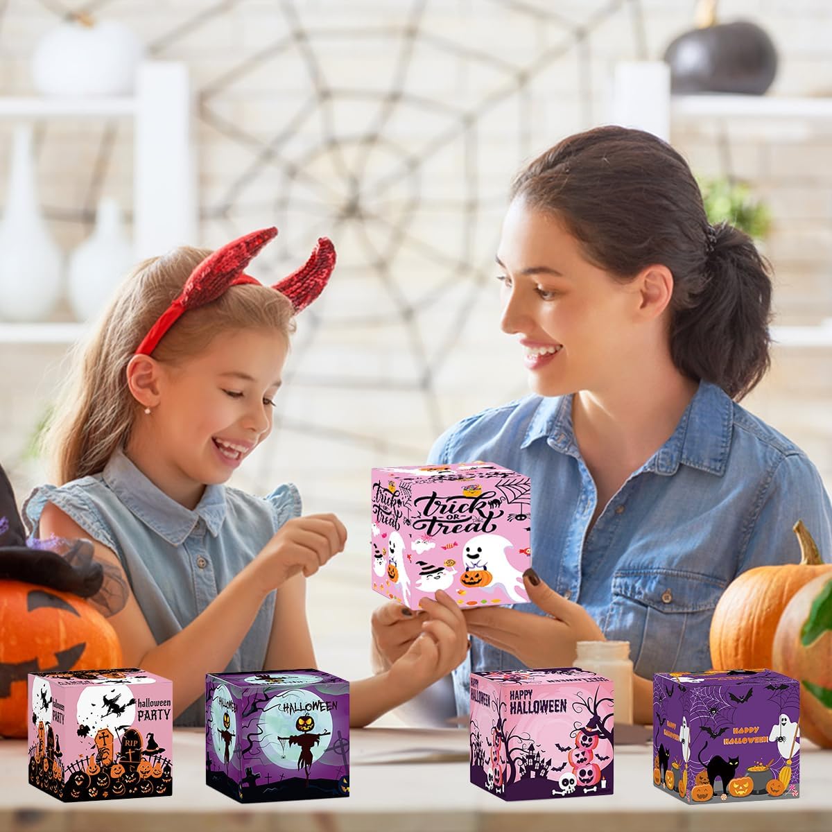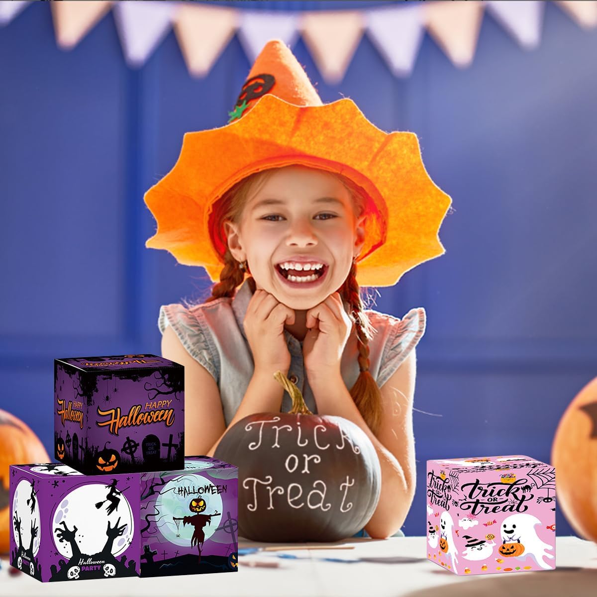 🎃【La confezione del sacchetto regalo include】Con 12 design divertenti, misurano 7 x 7 x 7 cm e sono disponibili in un set da 12, ideali per le forniture per feste di Halloween. 🎃 【Scatole regalo carine】 Scatole regalo per dolcetto o scherzetto dal design carino con colori vivaci e motivi a tema Halloween le rendono accattivanti, ottime per dolcetto o scherzetto e abbastanza delicate da creare scatole per dolcetto o scherzetto che piaceranno ai bambini piccoli e possono anche essere belle decorazioni per feste a tema Halloween. 🎃【Più che semplici caramelle】Queste scatole per dolcetti di Halloween sono perfette per conservare e regalare biscotti, cioccolata, piccoli giocattoli e altri dolcetti. Hanno un design divertente e festoso che delizierà i tuoi ospiti e i tuoi dolcetti o scherzetti. Puoi usarli per feste di Halloween, eventi scolastici o qualsiasi occasione che ne richieda. 🎃【Materiali ecocompatibili】Realizzati con carta di alta qualità, inodore, sicura e durevole, forniscono un'alternativa affascinante e funzionale ai tradizionali sacchetti di plastica. Queste scatole per dolcetti sono ecologiche e riutilizzabili, riducono gli sprechi e proteggono l'ambiente. 🎃【Facilità d'uso】Le nostre scatole regalo per feste di Halloween sono facili da montare piegando le alette e puoi premere i lati, quindi imballarle piatte per riporle comodamente quando non in uso, riutilizzabili e riciclabili.