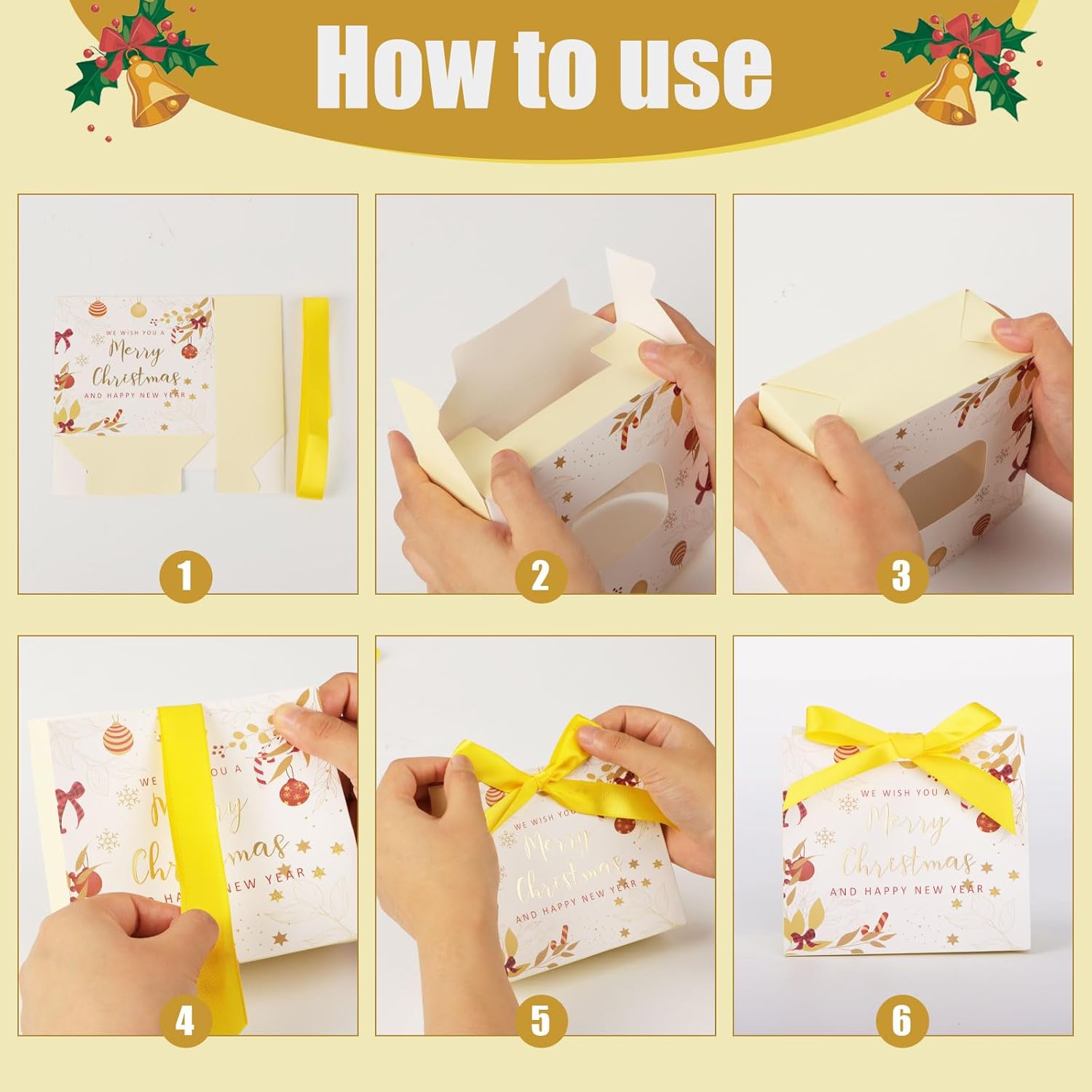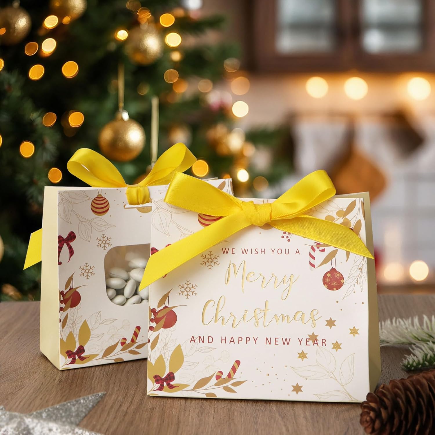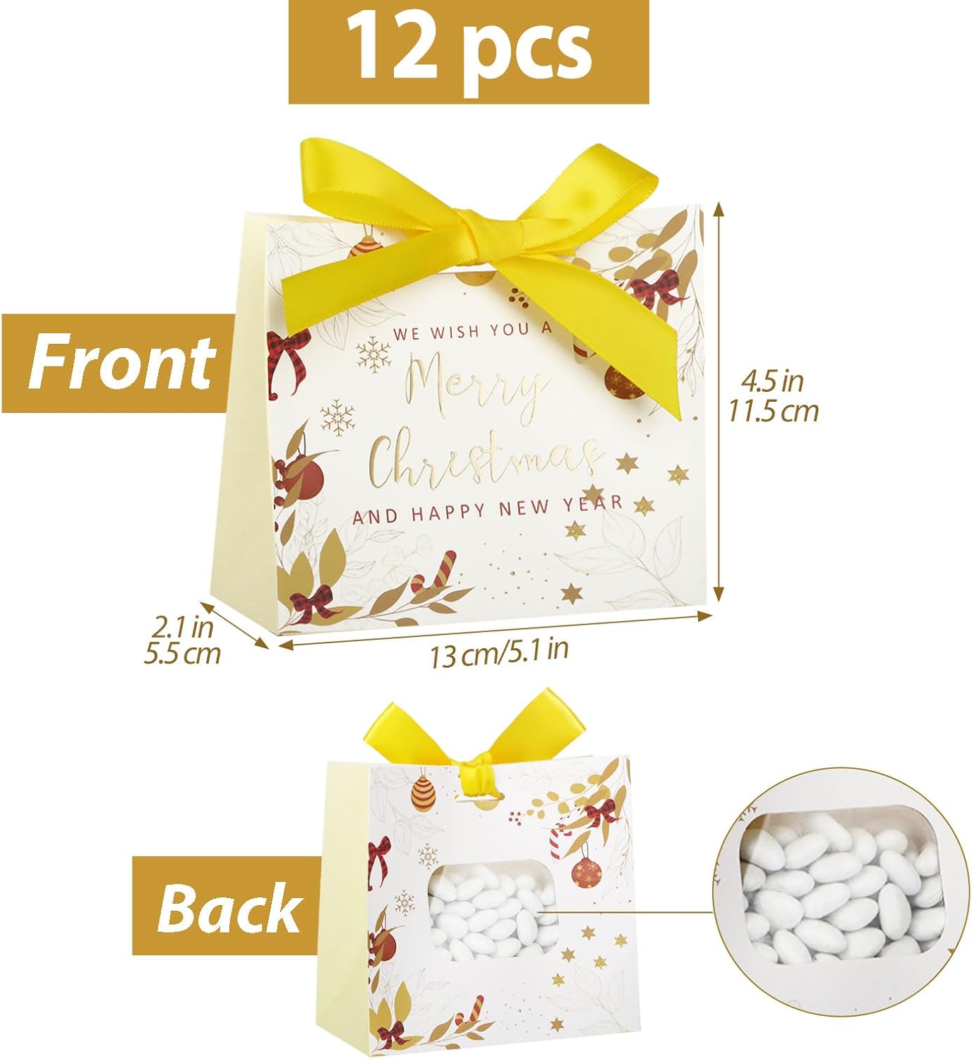 Dimensioni: 12 piccole scatole regalo di Natale con 12 nastri di seta. Dimensioni: ca. 13 x 11,5 x 5,5 cm, per snack, dolcetti, pretzel, biscotti e alcuni piccoli regali. 🛍️𝗠𝗮𝘁𝗲𝗿𝗶𝗮𝗹: Le buste sono di cartone. Spessa, robusta e riutilizzabile. Facile da usare: i sacchetti regalo sono molto comodi da usare, non è necessaria la colla e possono essere utilizzati con poco assemblaggio. Utile: i sacchetti natalizi sono perfetti per confezioni regalo di Natale, decorazioni per l'albero di Natale, scambi di regali, ecc.
