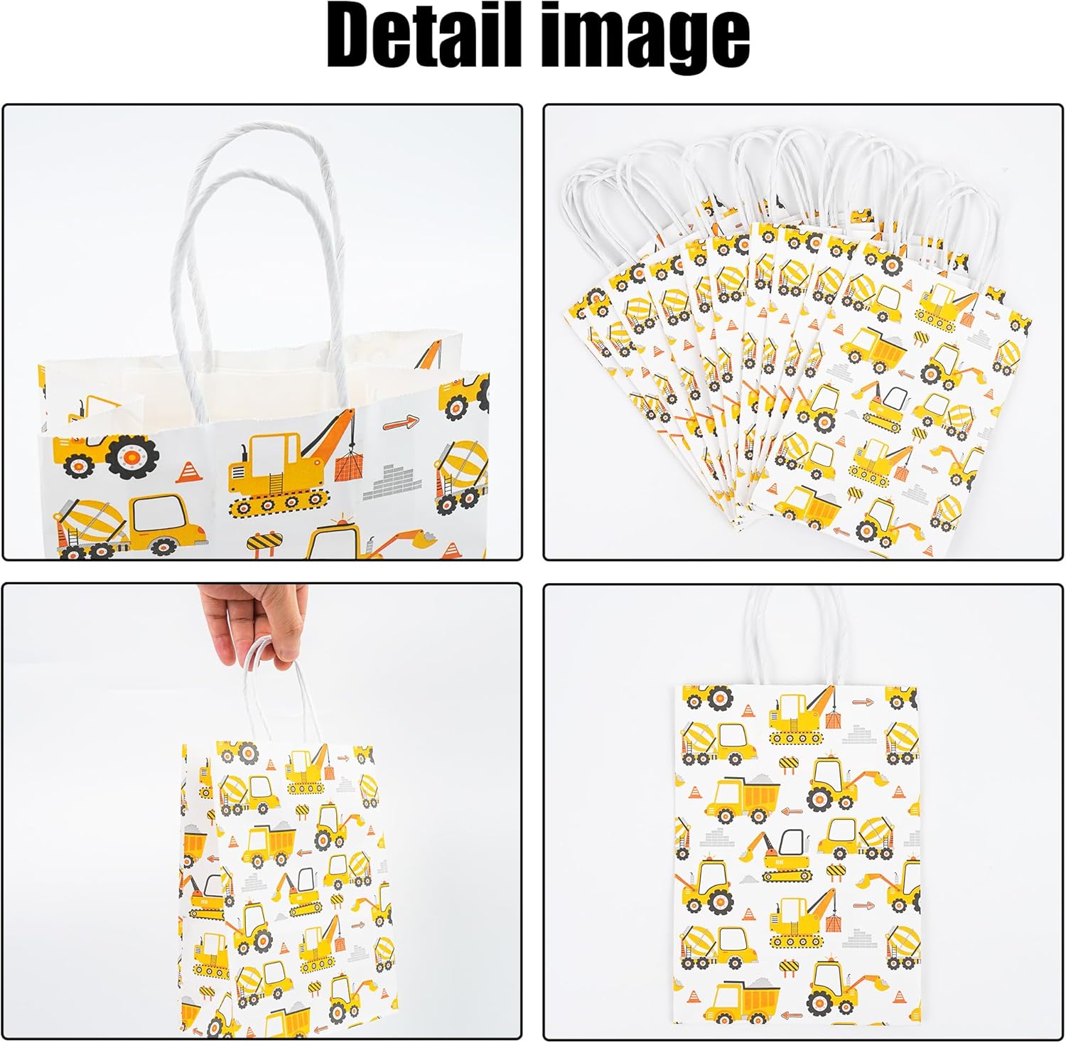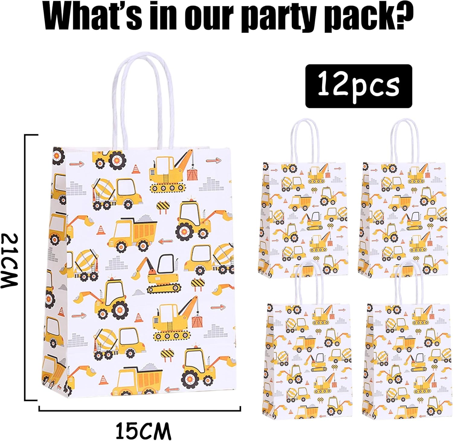 Sacchetti regalo per cantiere: include 12 sacchetti di carta per feste da cantiere. Ogni sacchetto misura 21 x 15 x 8 cm ed è perfetto per confezionare snack e regali per una festa degli scavatori. Materiali di alta qualità: questi sacchetti regalo da cantiere sono realizzati in carta kraft riutilizzabile. Sono perfetti per conservare dolci, snack e piccoli regali e rendono i tuoi regali davvero speciali. Design unico: perfetto per i bambini che amano i motivi degli escavatori e i temi dei cantieri! Questi sacchetti di carta a tema cantiere appositamente progettati e splendidamente modellati regaleranno ai tuoi bambini ricordi indimenticabili. Facile da usare: i sacchetti regalo da cantiere hanno una maniglia per un facile trasporto. Dopo l'uso, puoi piegare le borse e riporle per risparmiare spazio. Versatili: questi sacchetti regalo sono versatili e perfetti per feste a tema cantiere, compleanni di bambini e giochi di ruolo. Fanno fantastiche decorazioni per le feste e confezioni regalo