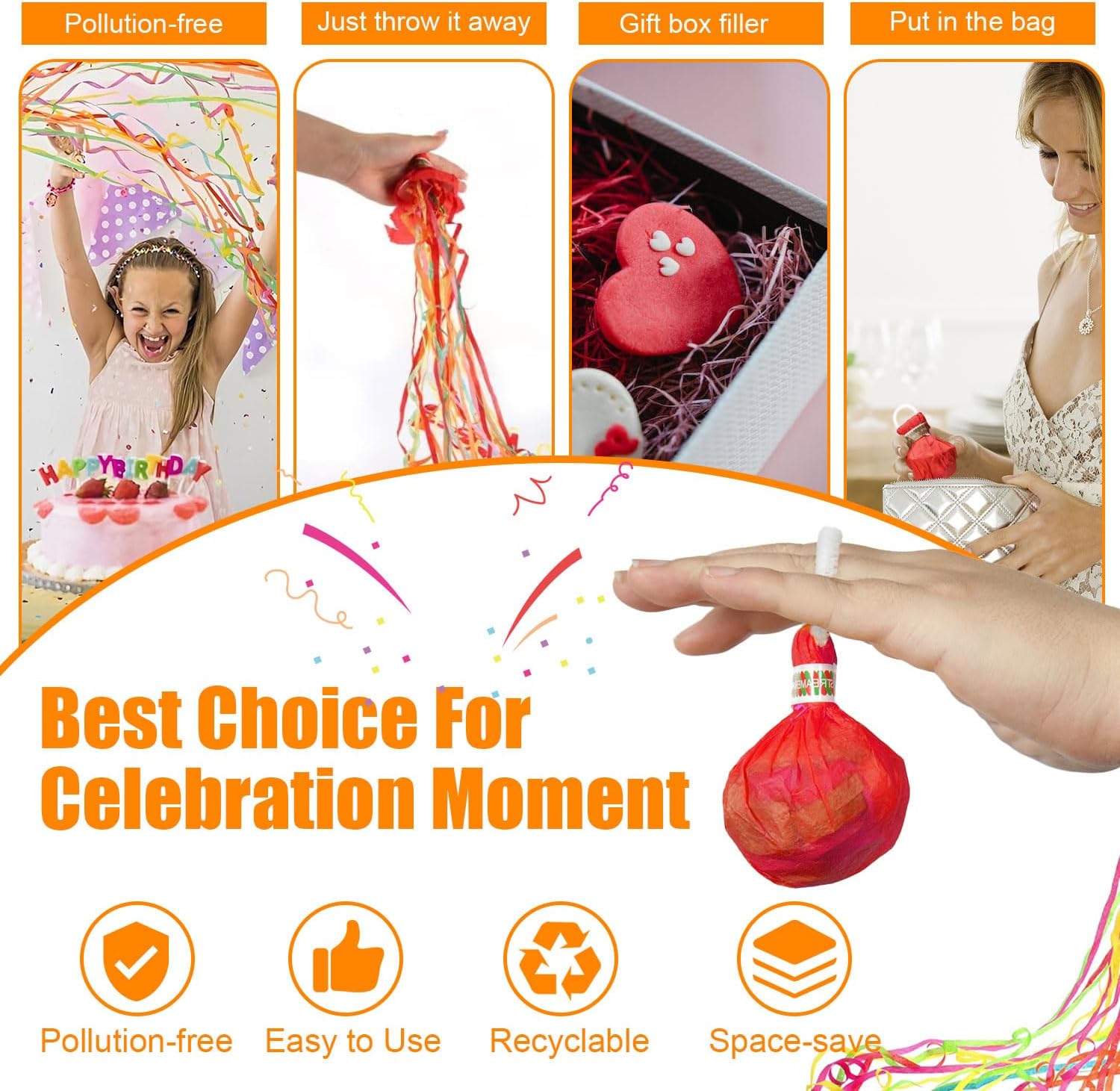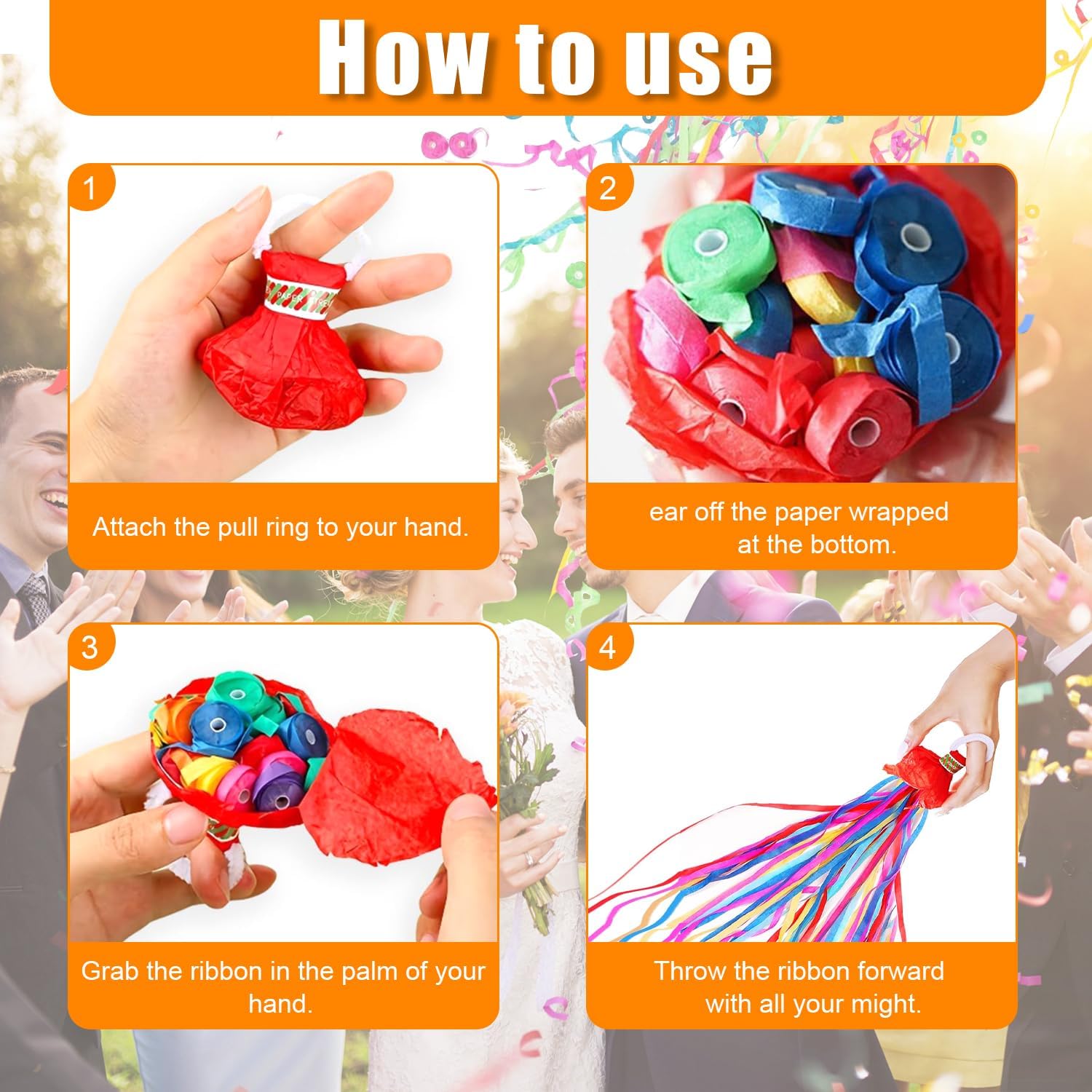 【Facile da usare】 Con questi streamer colorati devi solo tirare la corda, disimballare il pacchetto inferiore e lanciarlo con forza in un luogo alto, e il nastro scorrerà via come pioggia, regalandoti un effetto scena davvero spettacolare. Dopo l'uso, non lascerà residui, lontano dai problemi di pulizia. 【Set di prodotti】 Include dodici pezzi, per un totale di sei stili di colore; pieni di rotoli di nastro colorati, gli streamer JGA più lunghi possono essere lanciati a 5 metri di distanza; prodotto colorato, compatto e leggero, puoi metterlo in borsa in anticipo, aspettare il momento della festa per tirarlo fuori per buttare l'uso del momento, molto comodo. 【Materiale leggero】 Il materiale cartaceo è morbido e leggero, non farà male a nessuno né danneggerà nulla; Nessun rumore, nessun fuoco d'artificio. I nastri utilizzati possono essere utilizzati per riempire le confezioni regalo. 【Novità unica】 Generalmente utilizzato quando si scattano foto durante i momenti di celebrazione delle feste, è più nuovo e unico delle normali bombe cracker e spray streamer, non inquinante, che può creare rapidamente un'atmosfera vivace e romantica e congelare ogni bellissimo momento. 【Essenziale per gli eventi】 Sono articoli essenziali per matrimoni, compleanni, cerimonie di laurea, riunioni, spettacoli, fotografie e altre attività; Può aggiungere divertimento per te che ami le feste.