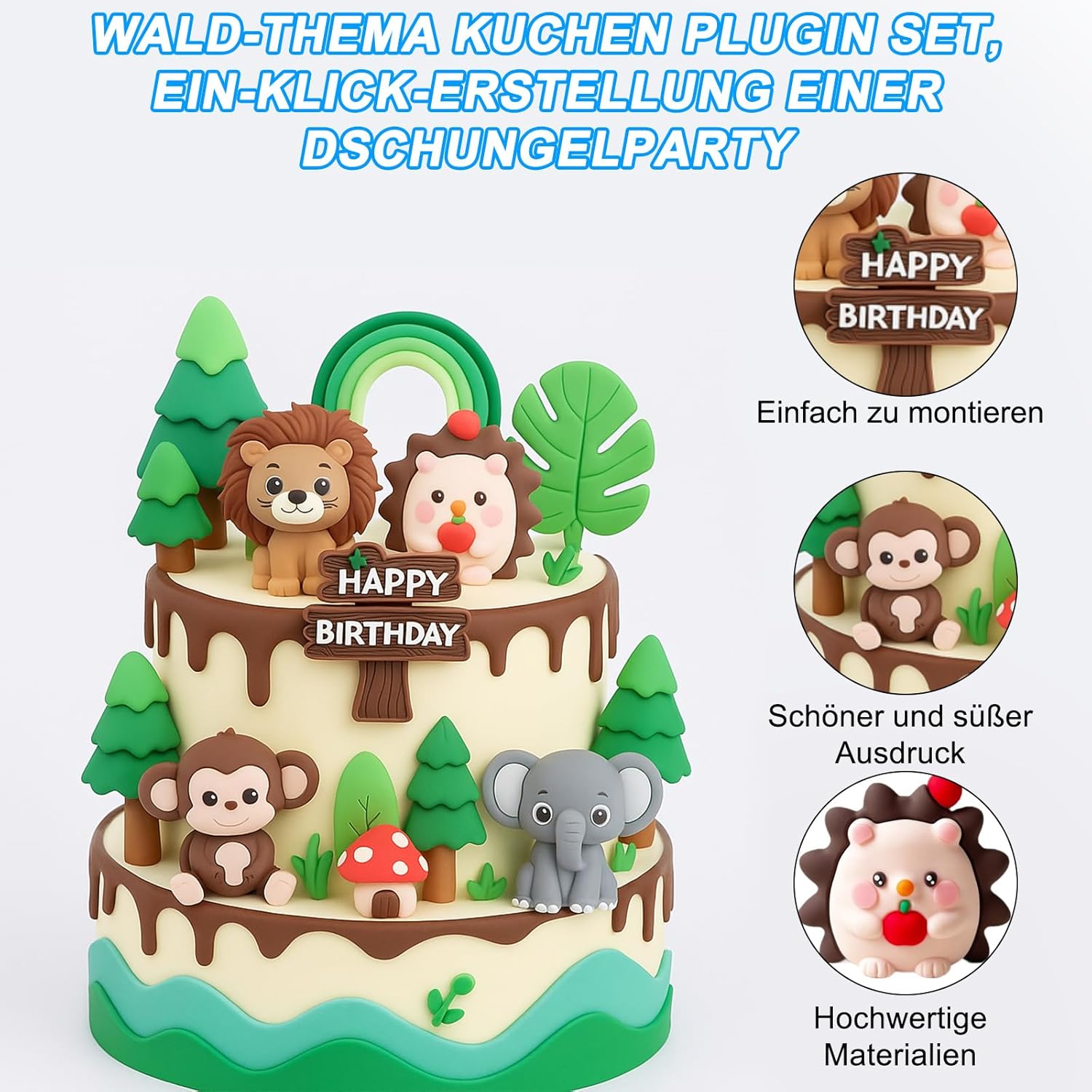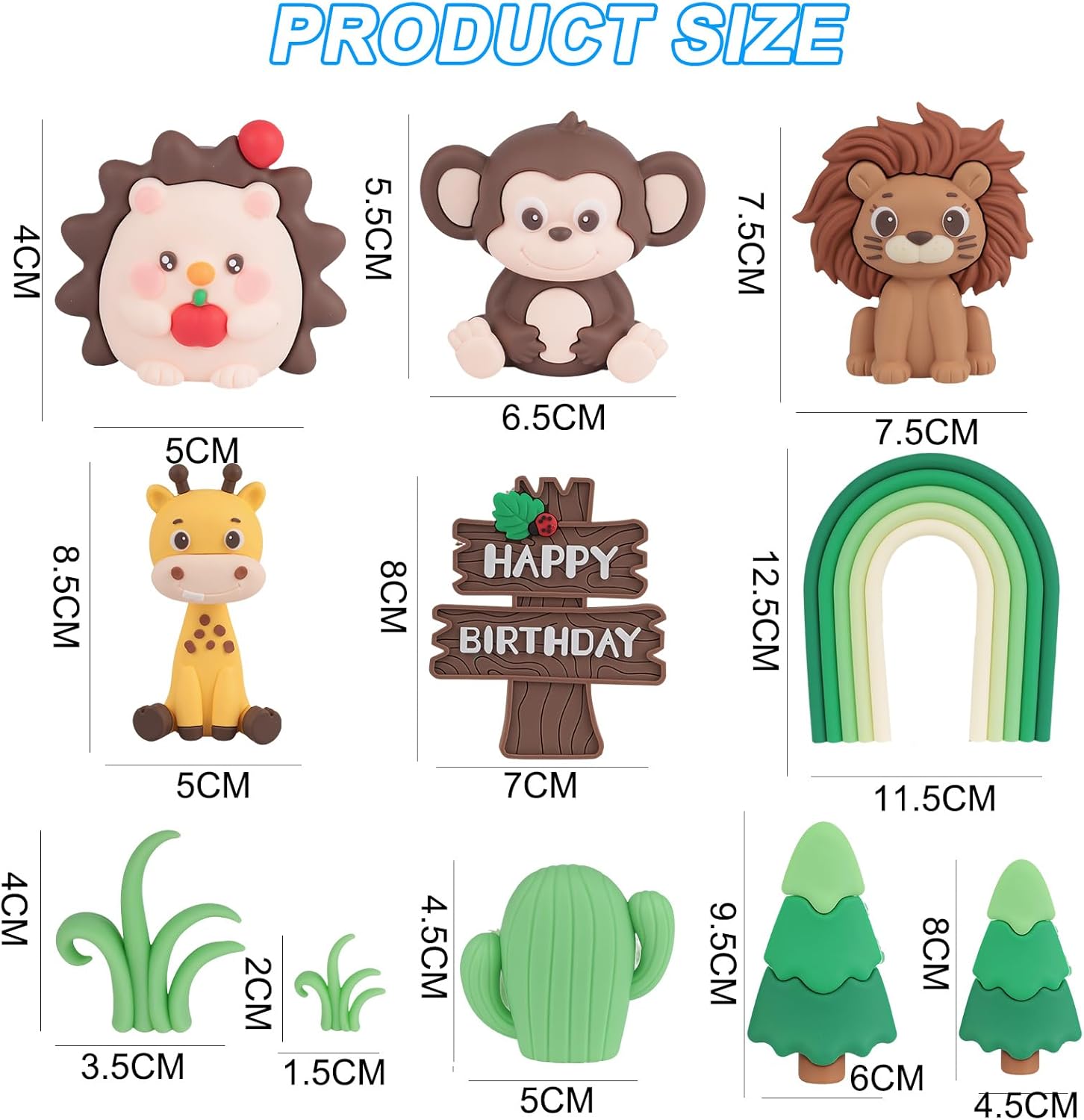 Set di 12 graziosi cake toppers: trasforma il compleanno di tuo figlio in un'incantevole festa con cake toppers e cake toppers. Questo affascinante accessorio per feste include: 1 leone, 1 giraffa, 1 elefante, 1 scimmia, 1 riccio, 1 coccinella, 1 arco arcobaleno verde, 2 erbe scure, 2 pini, 1 cactus. DECORAZIONE A TEMA ANIMALI: I toppers per torta con animali portano un tocco vibrante di natura alle tue feste di compleanno, affascinando immediatamente sia i bambini che gli adulti. I toppers per torta aggiungono un'atmosfera stravagante, fondendosi perfettamente con il tema dei tuoi animali domestici per una magica atmosfera di festa. Facile da montare: trasforma facilmente lo spazio della tua festa utilizzando i nostri toppers per torta e toppers per torta. Questi accessori per torte sono appositamente progettati per un assemblaggio semplice, consentendoti di creare un'atmosfera di festa professionale e incantevole in pochi minuti. Stupisci i tuoi ospiti con un allestimento creativo che sembra complesso ma incredibilmente semplice da realizzare, rendendo la tua festa memorabile e senza stress. Ideale per feste di compleanno: i toppers per torta e le decorazioni per torte con animali sono l'aggiunta perfetta alle feste di compleanno, affascinando l'immaginazione di bambini e adulti. Queste splendide decorazioni creano un'atmosfera vivace, facendo sì che ogni ospite si senta coinvolto ed emozionato. Con i loro colori vivaci e i design giocosi, questi toppers trasformano le torte ordinarie in splendidi centrotavola che lasciano un'impressione duratura e ricordi preziosi per gli anni a venire. DESIGN UNISEX PER BAMBINI: i nostri toppers e toppers per torta presentano un design unisex che li rende perfetti per la festa di compleanno di ogni bambino, indipendentemente dalle preferenze di genere o tema. Questi versatili toppers per torta portano un tocco di natura sulla tua tavola da dessert, assicurando che ogni bambino e ospite si senta incluso e felice di festeggiare insieme.