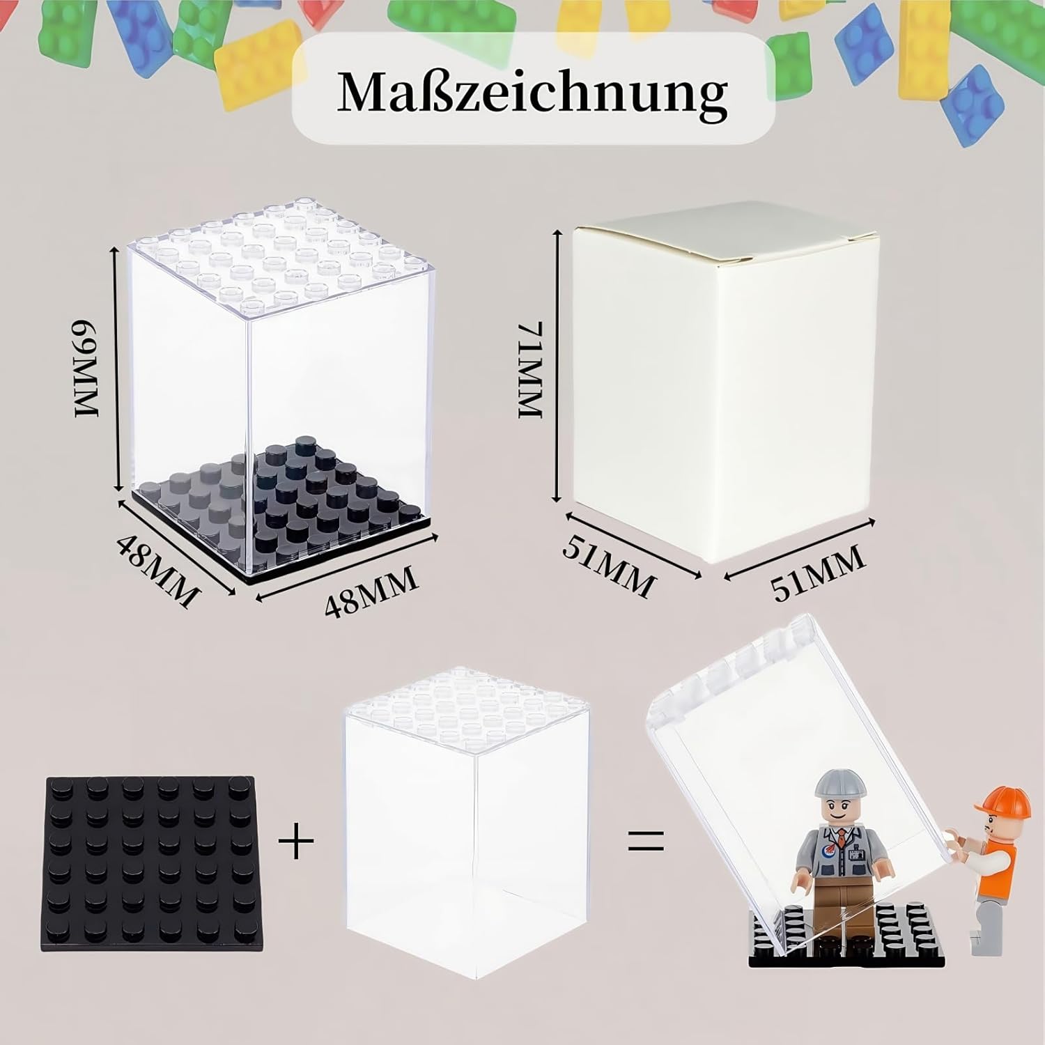 Mostra la tua collezione di figurine con una straordinaria trasparenza a 360° con la nostra vetrina in acrilico trasparente al 95% e proteggi le tue figurine da polvere e detriti. Diventa creativo con il nostro design impilabile. Assembla le vetrine come preferisci e posizionale per creare più scene e goderti la tua collezione. La nostra vetrina è compatibile con molti elementi costitutivi comuni sul mercato, quindi puoi installarla facilmente e proteggere le tue figure. Con il nostro design impilabile puoi creare una camera singola, una camera doppia, una villa a tre piani o addirittura un grattacielo! Le possibilità sono infinite. Ogni confezione contiene 12 vetrine con mattoncini da costruzione che misurano 4,8 x 4,8 x 6,9 cm. Inizia a mostrare la tua collezione oggi