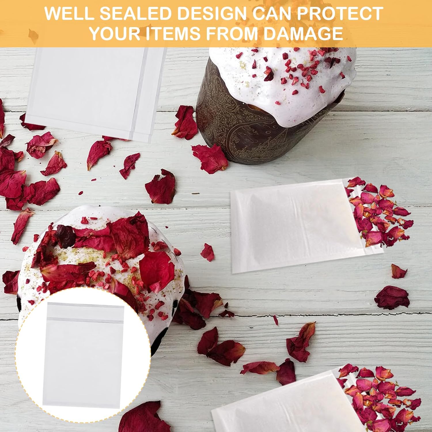 Quantità sufficiente: riceverai buste in glassine da 130 pezzi per una facile installazione o sostituzione, sufficienti per soddisfare le tue esigenze di matrimonio, festival e altre celebrazioni; Puoi condividerlo con i tuoi amici e familiari. Comodo per riporre molti oggetti: le buste richiudibili con semi sono adatte per conservare coriandoli, petali nuziali, cera, caramelle, candele e altri piccoli oggetti; I sacchetti per semi sono traslucidi e progettati in modo conciso per esporre facilmente gli oggetti interni. Qualità e affidabilità: i sacchetti per coriandoli nuziali sono realizzati in carta glassine, sono robusti, affidabili e morbidi al tatto, sono meno inclini allo strappo, possono essere utilizzati molte volte, offrendoti un'esperienza d'uso soddisfacente. Molte occasioni: i nostri sacchetti di carta trasparenti sono autoadesivi e possono essere sigillati per mantenere ben conservati gli oggetti interni. Gli adesivi sono adatti per matrimoni, addio al nubilato, feste di compleanno e anniversari Conservazione di piccoli oggetti: la carta trasparente è adatta per coriandoli, foglie nuziali, dolci, gioielli, semi, candele e altre piccole cose. Le buste in glassine hanno un design trasparente per visualizzare comodamente il contenuto.