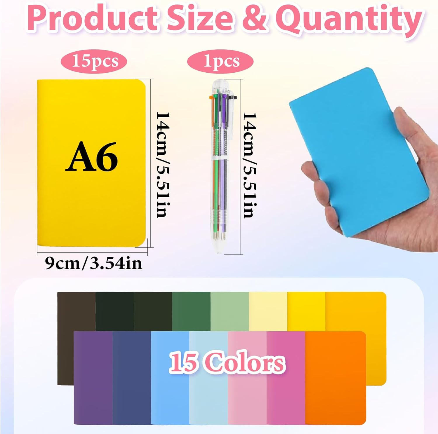 Set quaderno A6: riceverai 15 mini quaderni colorati e una penna multicolore con 30 fogli (60 pagine). Tutti i quaderni sono cuciti con filo resistente, senza colla necessaria, carta beige ecologica e non tossica per proteggere i tuoi occhi Carta premium: i quaderni A6 hanno una copertina in carta kraft e le pagine interne con linee orizzontali sono realizzate in carta riciclabile, ecologica e di alta qualità. La carta è abbastanza spessa per scrivere senza problemi e non perde inchiostro. Facile da trasportare: il piccolo blocco note A6 è disponibile in 15 colori diversi. La dimensione di 14 x 9 cm è facile da trasportare. Il taccuino può essere aperto o piegato di 180° e i fili facilitano il collegamento delle pagine. Quindi la carta rimane intatta per lungo tempo. Uso versatile: questi quaderni A6 vuoti sono spesso usati come liste di cose da fare, liste di budget, appunti, disegni, diari di viaggio, blocchi per scarabocchi, quaderni fatti a mano, ecc. Sono ampiamente usati nelle scuole, università, centri di formazione, a casa e in ufficio. Regalo meraviglioso: questo piccolo taccuino è anche un ottimo regalo per studenti e amici. I quaderni colorati sono versatili, diversi colori possono essere utilizzati per distinguere diversi contenuti, è un quaderno indispensabile nella vita quotidiana