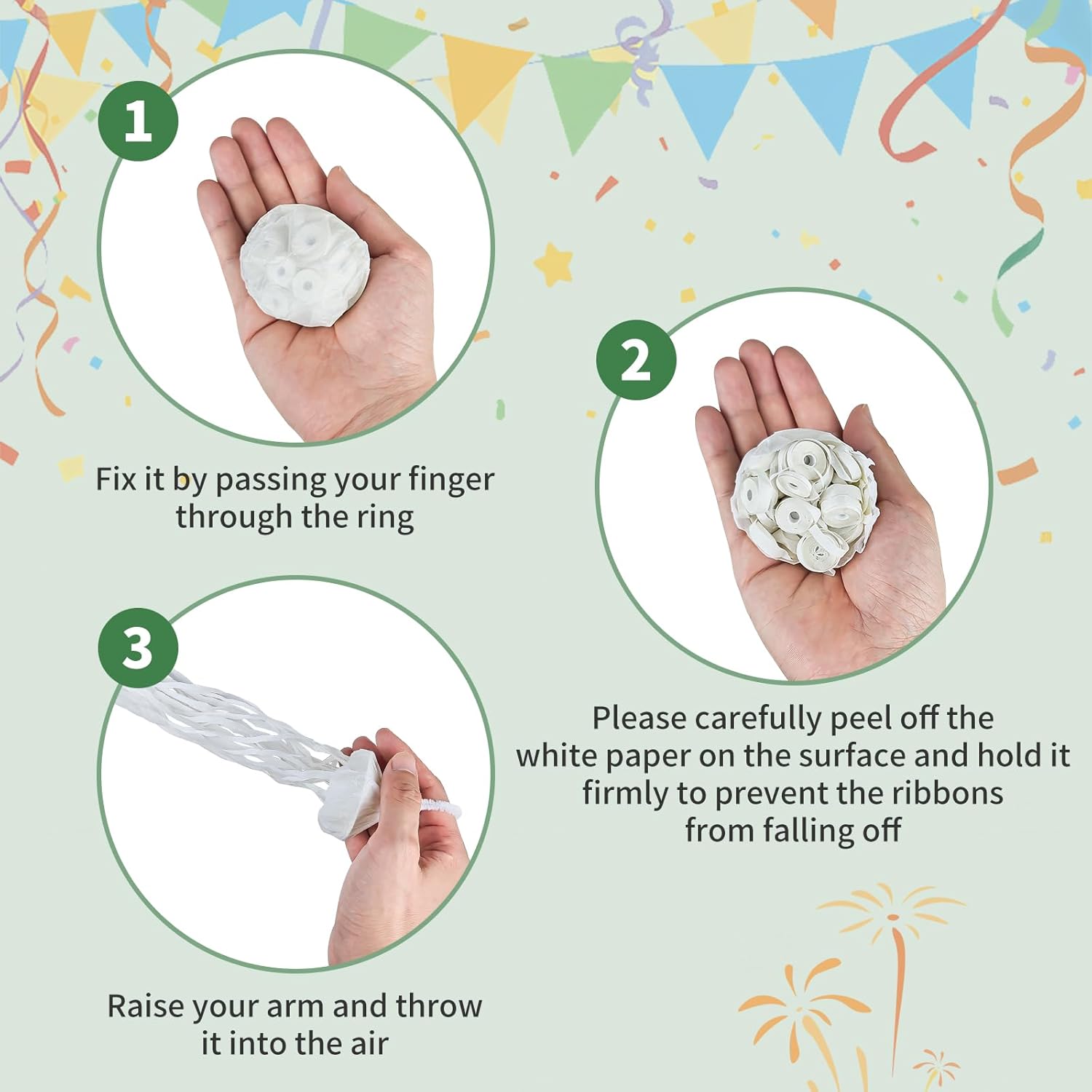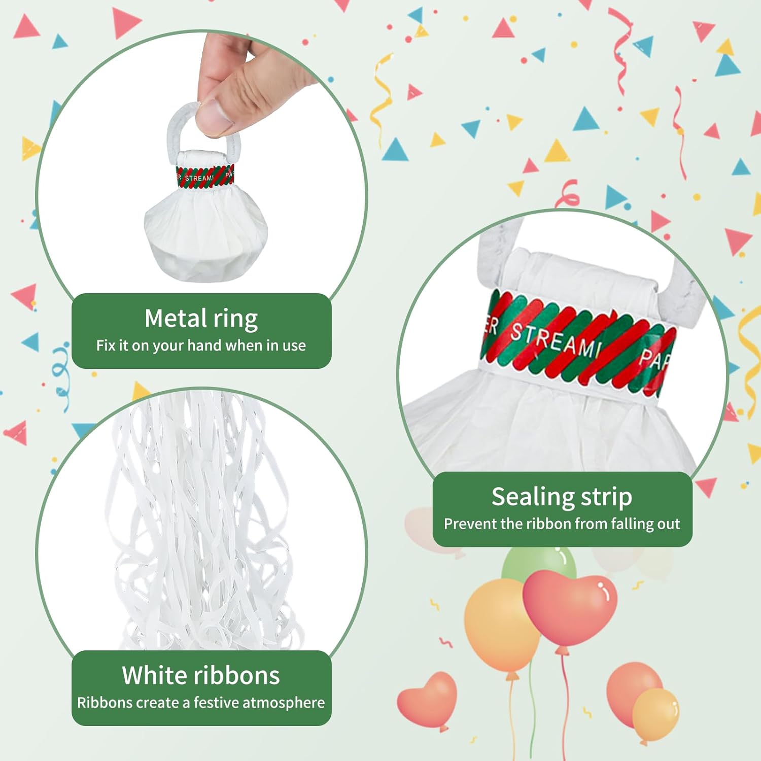 La confezione contiene: Riceverai 15 pezzi di stelle filanti da lanciare a mano. Ogni rotolo di streamer di carta è dotato di fasce di carta sottile di colore diverso. Facile da usare: basta posizionare l'anello inferiore sull'indice o sul medio, strappare la confezione superiore e poi lanciarlo verso l'alto con un angolo di 45 gradi o lasciarlo cadere da un'altezza. Pulizia rapida: poiché le strisce di carta interne sono collegate e possono essere riciclate insieme, non rimangono residui dopo l'uso. Risparmierai tempo prezioso per la pulizia e potrai concentrarti interamente sulla festa. Sicuro e innocuo: non c'è rischio di esplosione e sostanze tossiche e può essere utilizzato da bambini, adulti e anziani. (Poiché è fatto di carta, deve essere tenuto lontano da fonti di fuoco.) Scenari applicabili: perfetti per matrimoni, compleanni, lauree, carnevali, anniversari, Halloween, Natale, Pasqua e altre celebrazioni, creando un'esperienza indimenticabile per te, la tua famiglia e i tuoi amici.
