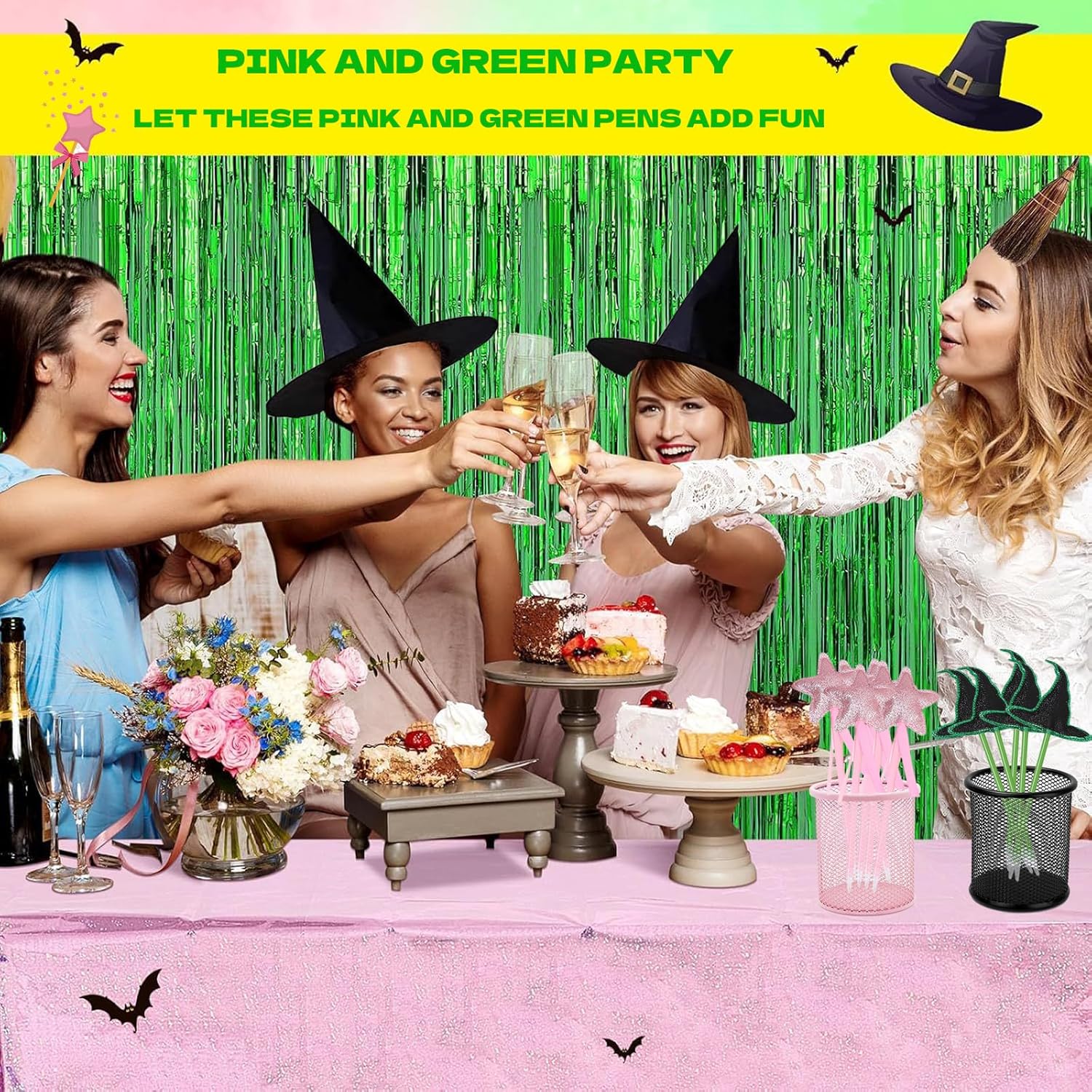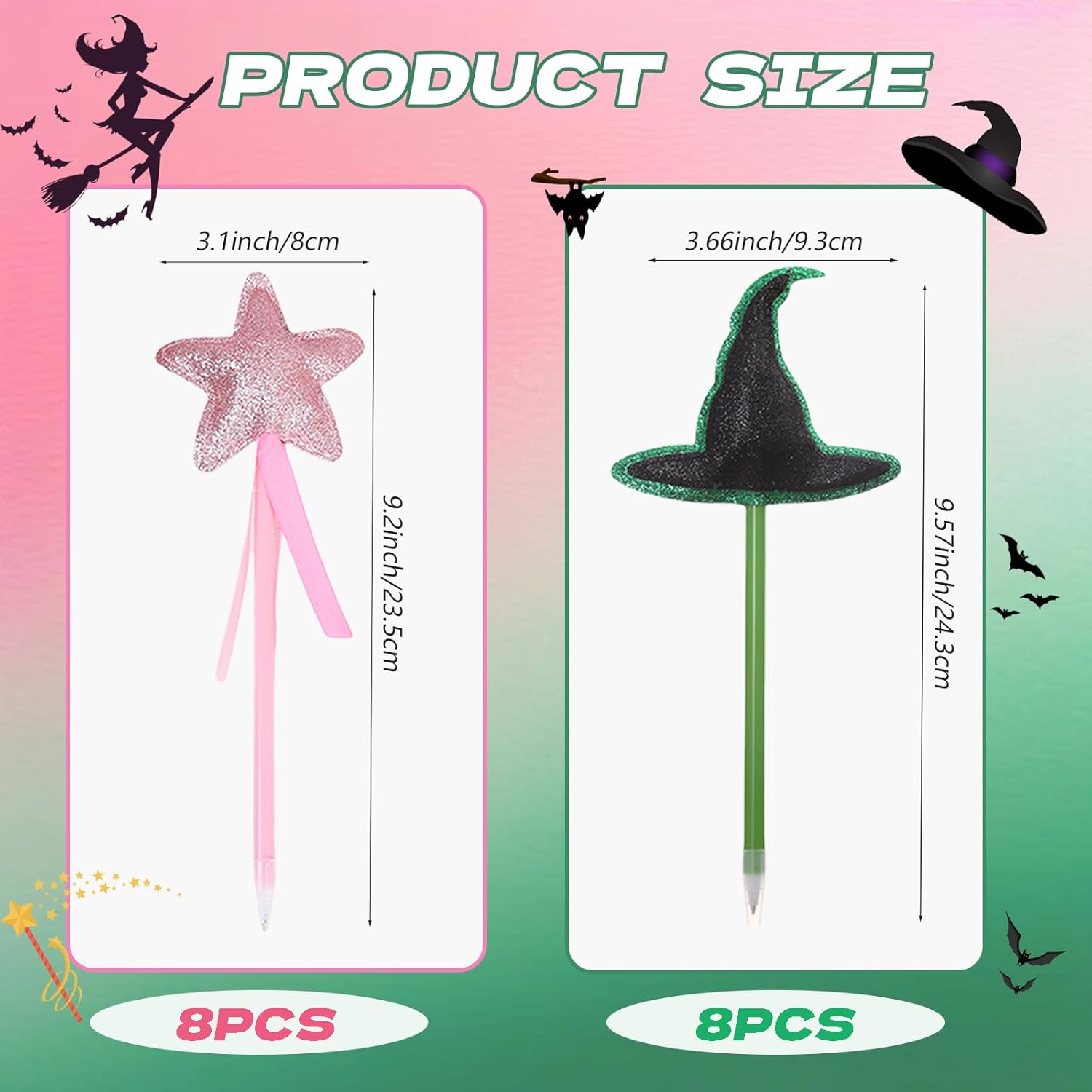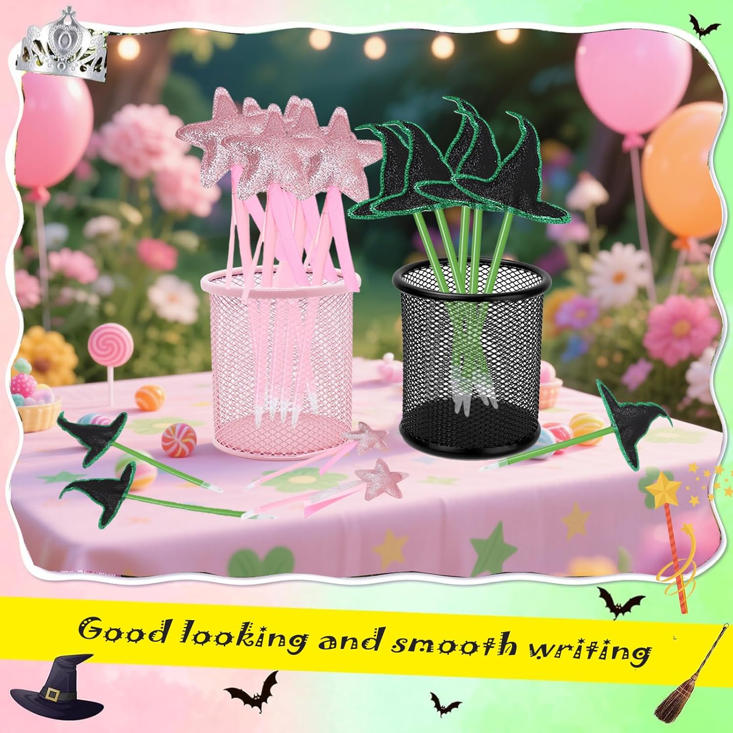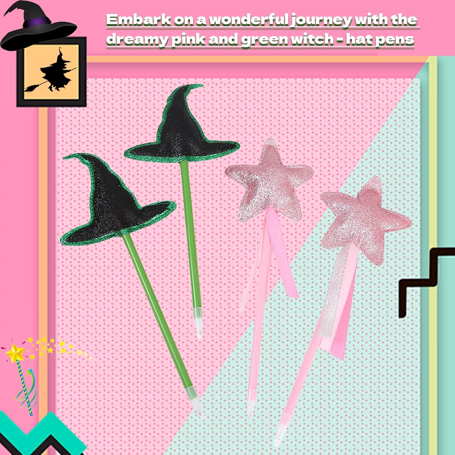 Set completo: la confezione include 16 penne decorative con 8 decorazioni a stella rosa glitterate e 8 topper per cappello da strega nero con accenti verdi Caratteristiche del design: ogni penna combina decorazioni stravaganti con punte a sfera funzionali, perfette per attività di festa e regali da portare a casa Due temi: la magica combinazione di penne a stella rosa a tema principessa e penne a cappello da strega spettrale crea una versatile collezione di bomboniere per feste Dimensioni pratiche: le penne a lunghezza intera con topper decorativi sono perfettamente dimensionate sia per bambini che per adulti da usare comodamente Ideale per feste di compleanno, feste in costume, eventi scolastici o qualsiasi celebrazione a tema magico come bomboniere o forniture per attività