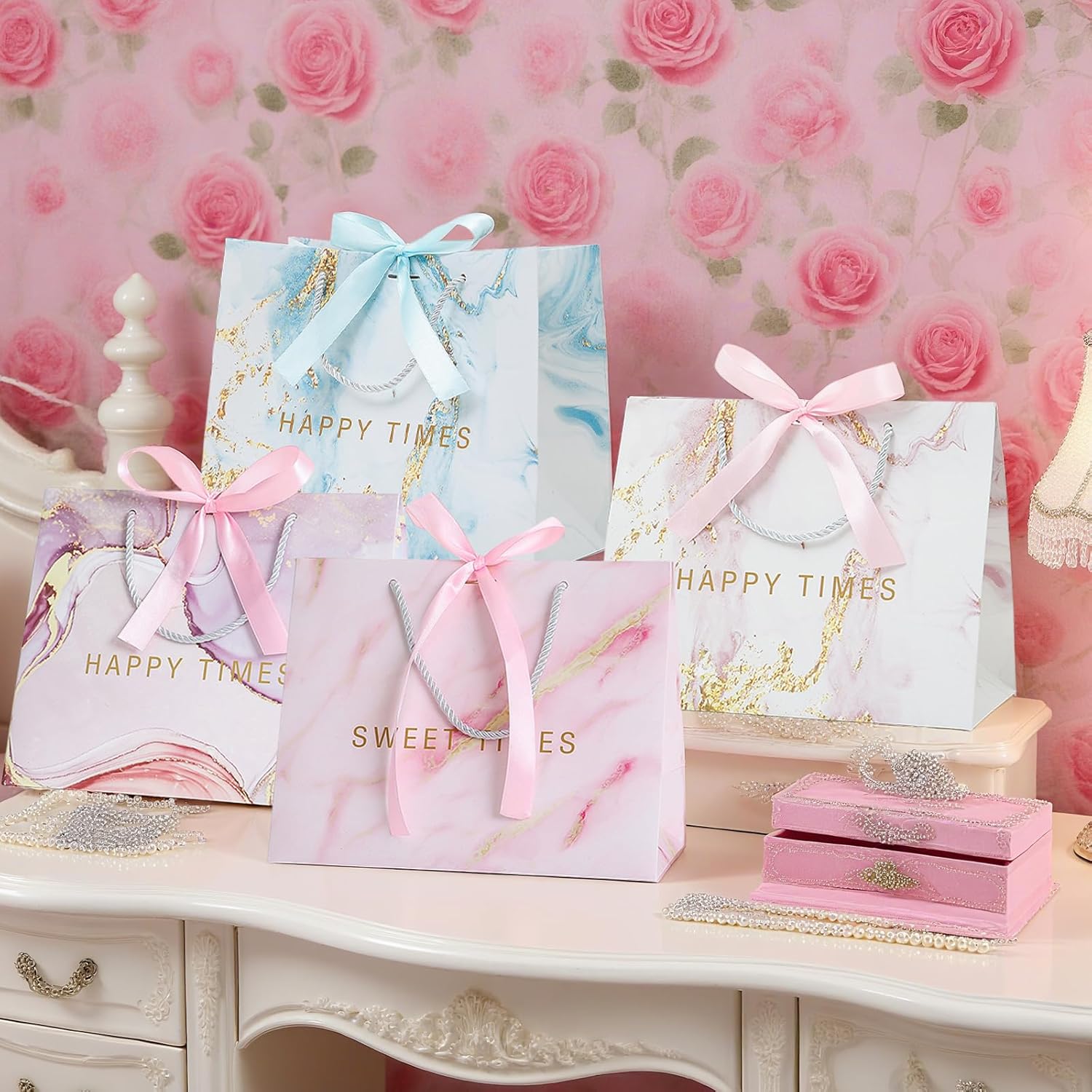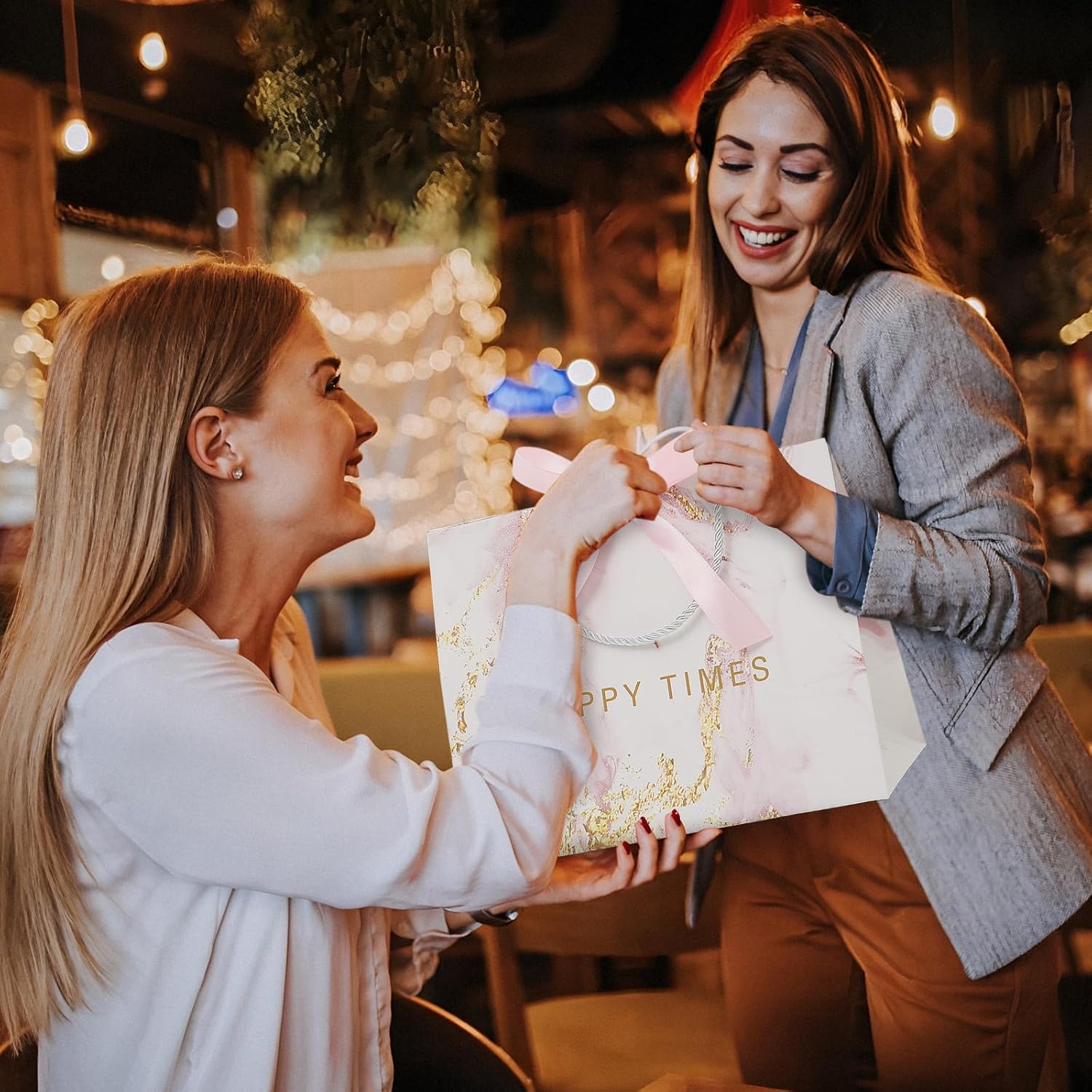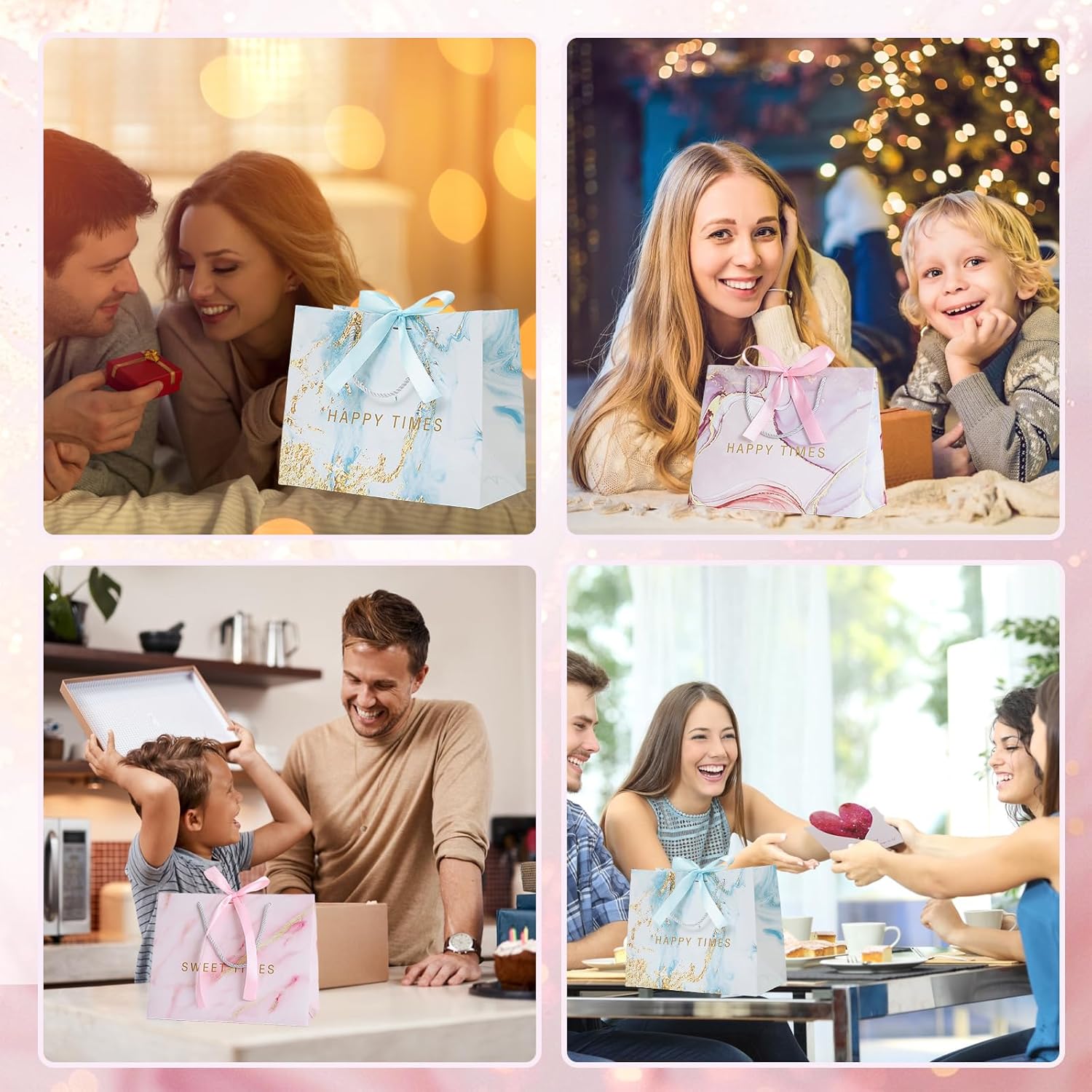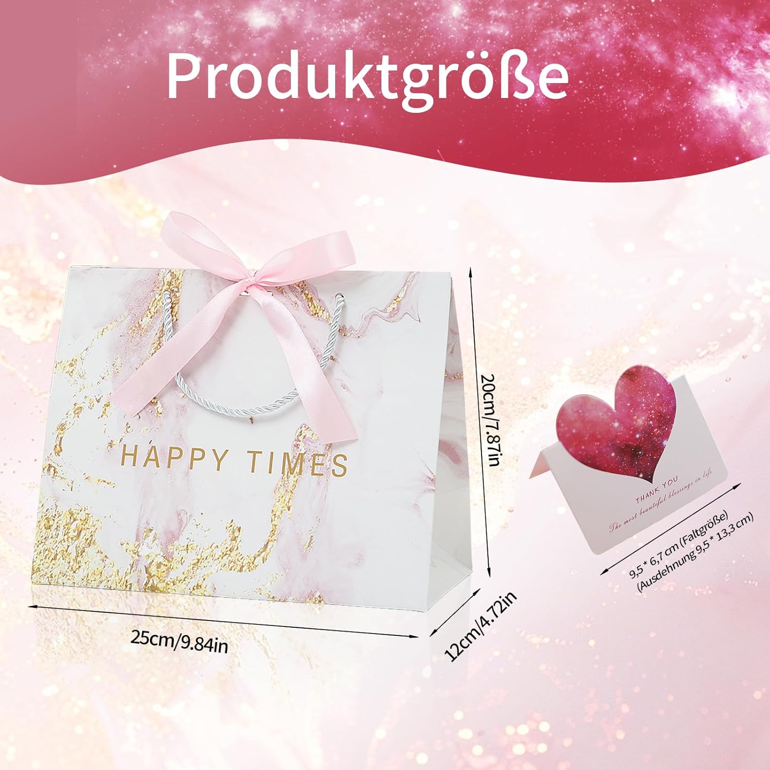 SET CONVENIENTE - Riceverai 8 eleganti sacchetti regalo dal design in marmo e 8 biglietti di auguri a cuore, perfetti per compleanni, matrimoni, feste o Natale. Dimensioni ottimali: ogni sacchetto regalo grande misura 25 x 20 x 12 cm e offre spazio sufficiente per vestiti, libri, giocattoli, cosmetici o altri regali di medie dimensioni. Materiale di alta qualità - I sacchetti regalo sono realizzati in robusto cartone da 230 g/m², sono durevoli, riutilizzabili e hanno una portata fino a 2,5 kg - ideali come confezione regalo di compleanno sostenibile. Design elegante: con un motivo in marmo, goffratura dorata lucida e nastri a fiocco, i sacchetti regalo sembrano moderni e lussuosi. I biglietti abbinati con motivo a cuori completano con stile l'idea regalo. Utilizzo versatile - Che si tratti di sacchetti regalo per San Valentino, festa della mamma, baby shower, anniversari o feste aziendali, questo set è adatto per numerose occasioni e dona ad ogni regalo un tocco speciale.