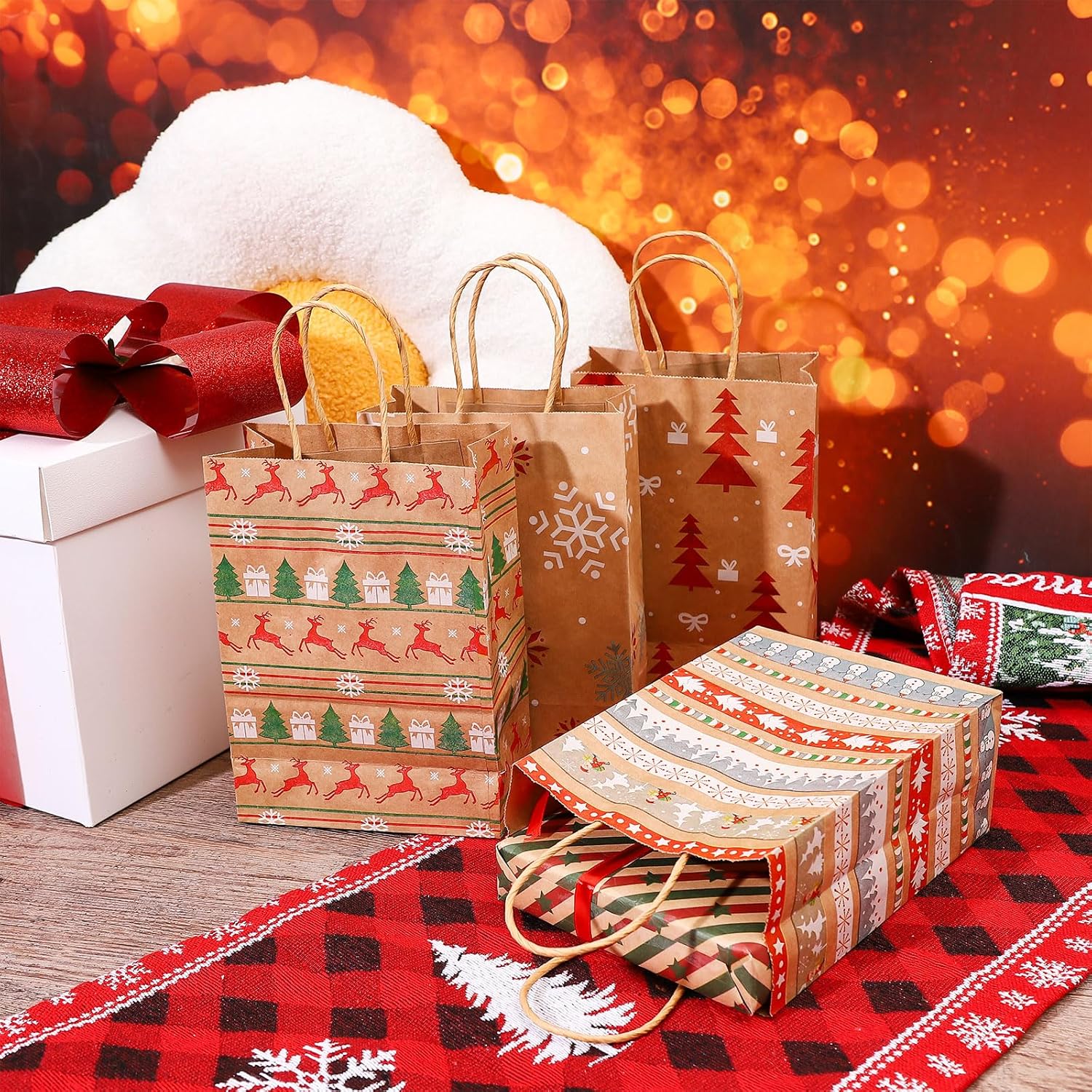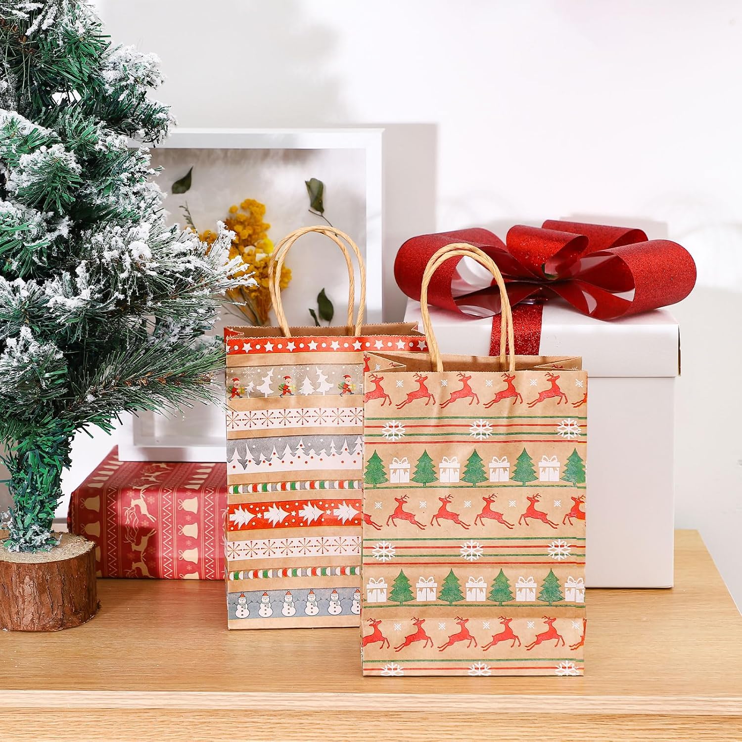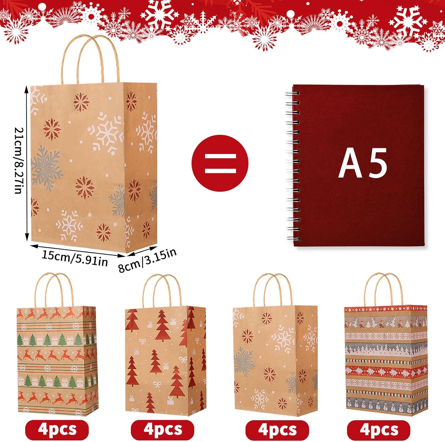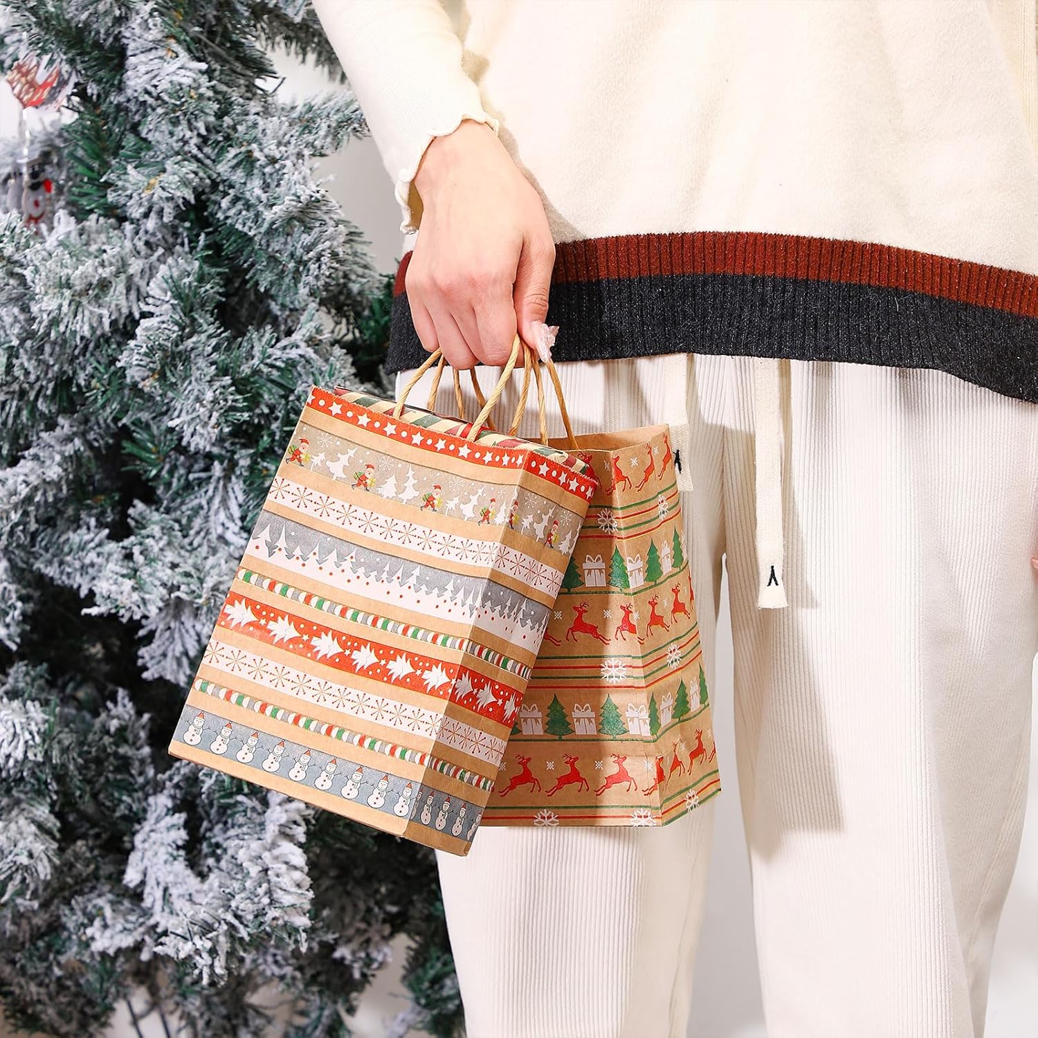 4 MOTIVI - I sacchetti di carta sono disponibili in quattro diversi modelli: alce carino, fiocco di neve, albero di Natale, pupazzo di neve, ecc. Ci sono 4 sacchetti per ogni modello, 14 sacchetti in totale. MATERIALE - Il sacchetto regalo di Natale è realizzato in carta kraft, robusto e durevole, non facile da strappare, riutilizzabile. DIMENSIONI - Le dimensioni del sacchetto regalo di Natale sono 21 x 15 x 8 cm/8,26 x 5,9 x 3,14 pollici, il che offre molto spazio per riempire regali, sacchetti per feste, ecc. FACILE DA TRASPORTARE - Il manico del sacchetto di Natale è realizzato in cordoncino di carta e tiene bene. La maniglia rende inoltre la borsa comoda da trasportare. APPLICAZIONE - Questi sacchetti di carta kraft sono pieni di un'allegra atmosfera festosa, perfetta per Natale, Capodanno, festival, feste, ecc.