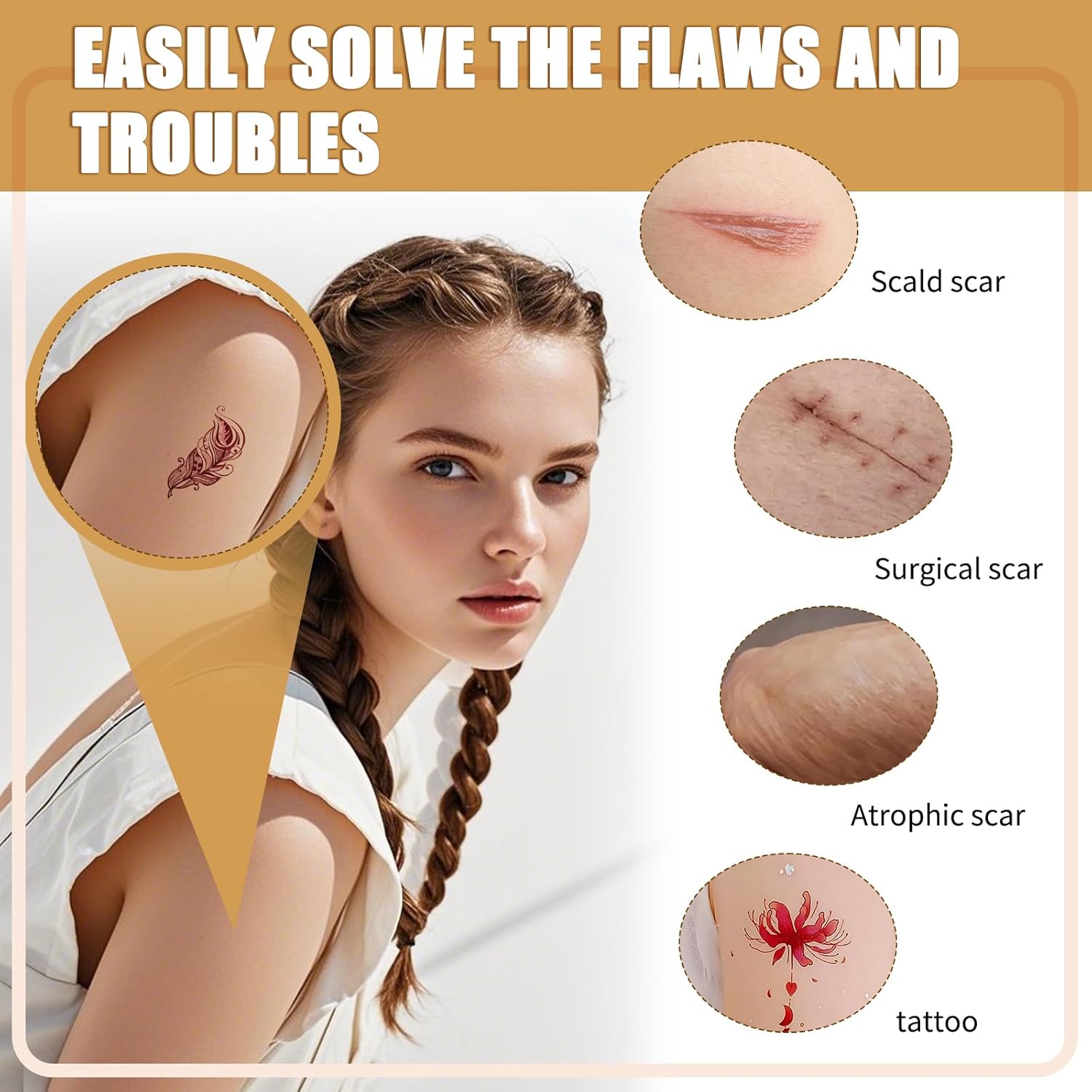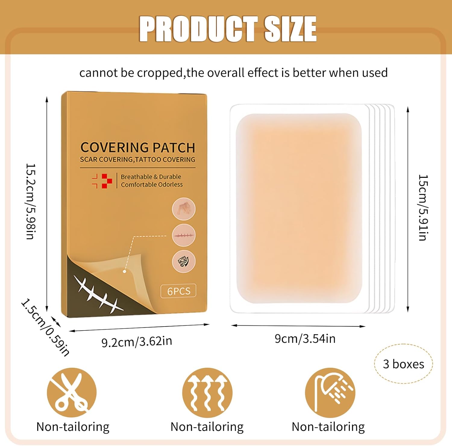 Naturale e senza traccia: il nostro tatuaggio sviluppato con tecnologia avanzata si adatta perfettamente al tono della tua pelle. Che tu abbia bisogno di coprire il tuo tatuaggio ogni giorno o di preservare l'aspetto naturale della tua pelle per occasioni speciali, questo tatuaggio ti offre una copertura eccellente e assicura che la tua pelle abbia un aspetto naturalmente impeccabile. Materiale confortevole: questa copertura per tatuaggio è realizzata in materiale di alta qualità, traspirante e delicato sulla pelle. Il design leggero e sottile non soffoca nemmeno durante l'uso prolungato, garantendo un'esperienza di utilizzo piacevole. Che tu lo indossi tutti i giorni o per un'occasione speciale, puoi contare sulla comodità di indossare i cerotti per tatuaggi tutto il giorno. Design tagliabile: la dimensione della copertura impermeabile del tatuaggio è 15 x 9 cm. Puoi tagliarlo nella forma e dimensione desiderate in base alle diverse esigenze. Questo dispositivo per tatuaggi per nascondere le cicatrici è piccolo e leggero ed è facile da trasportare. Non lascia residui dopo l'applicazione, così puoi sentirti sempre al sicuro. Istruzioni per l'uso: pulire e asciugare la pelle prima dell'uso. Quindi rimuovere la pellicola dal retro del tatuaggio, allinearla nella posizione desiderata, premere prima la parte centrale, quindi adattare completamente la copertura del tatuaggio alla pelle. L'intero processo è rapido e semplice e può essere facilmente completato senza conoscenze tecniche. Ampia gamma di applicazioni: questa copertura per tatuaggi è adatta a più parti del corpo, tra cui braccia, gambe, viso, dita, mani, collo e schiena, ecc., per coprire tatuaggi, voglie, cicatrici, lividi o altri difetti della pelle. La sua eccellente impermeabilità rende i cerotti per tatuaggi la scelta ideale per i viaggi e il nuoto e non è facile cadere anche se indossati per lungo tempo.