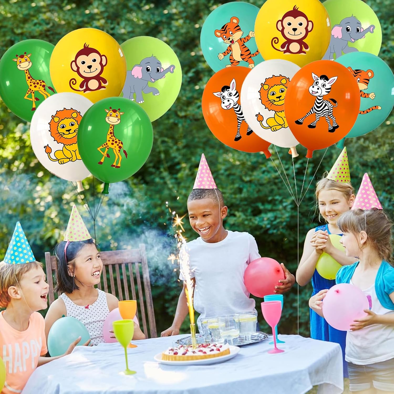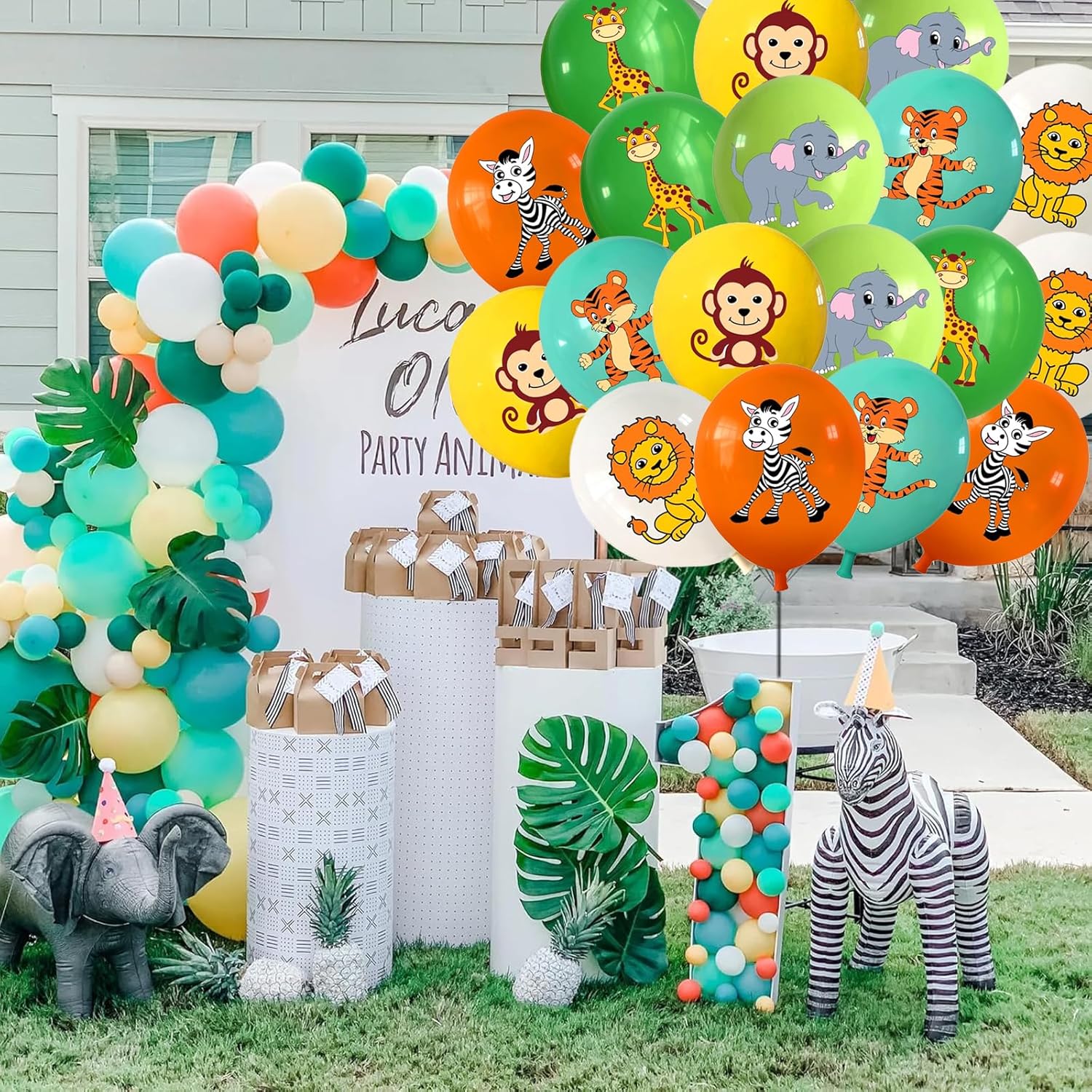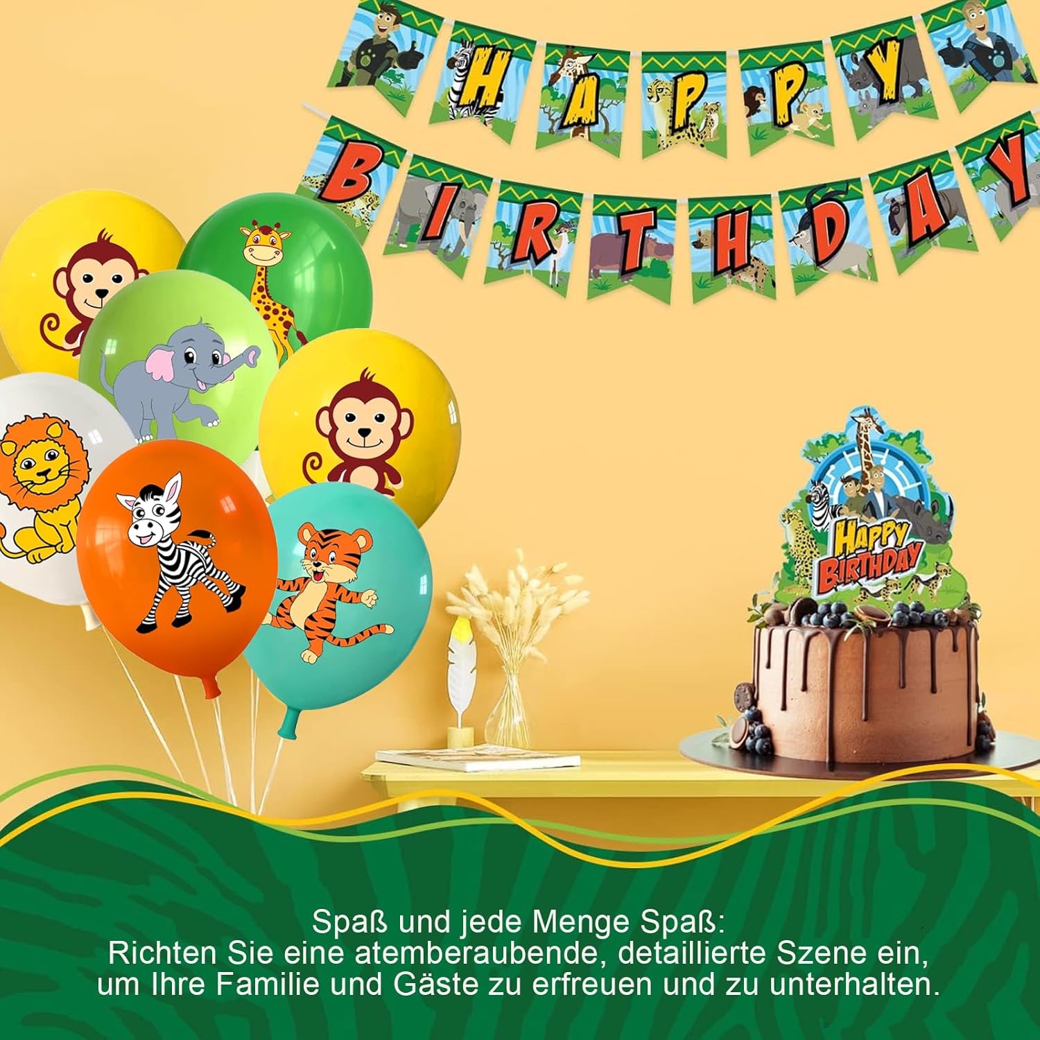Decorazione perfetta per il compleanno dei bambini nella giungla: trasforma ogni celebrazione in un'emozionante avventura safari! Il nostro set di 18 palloncini con animali porta la decorazione del compleanno della giungla direttamente in soggiorno. Con animali popolari come leoni, zebre, scimmie, giraffe, tigri ed elefanti, i palloncini di compleanno fanno illuminare gli occhi dei bambini. Ideale come decorazione per il compleanno dei bambini, decorazione per il compleanno degli animali della foresta, decorazione per feste o decorazione per il compleanno dei bambini: la perfetta combinazione di divertimento e stile. Palloncini a forma di animali di alta qualità - sicuri e durevoli: i palloncini a forma di animali sono realizzati in lattice di alta qualità e sono palloncini biodegradabili, perfetti per genitori attenti all'ambiente. Ogni palloncino è alto 12 pollici ed è ideale come palloncini per bambini o palloncini per il 1° compleanno. Grazie alla loro lavorazione robusta, gli animali in mongolfiera sono durevoli e, come animali gonfiabili, sono perfetti per giochi e decorazioni. Che si tratti di ragazzi o ragazze, i nostri palloncini per bambini attirano davvero l'attenzione. Adatto per l'elio - per animali da festa galleggianti: i nostri animali con palloncini a elio sono particolarmente adatti per l'elio. Possono essere riempiti con gas per palloncini, una piccola bombola di gas elio o nel modo classico con aria. I palloncini di compleanno ad elio fluttuano elegantemente sopra il tavolo e creano un'atmosfera da sogno. Questi palloncini a elio sono perfetti per gli amanti dei palloncini a elio e come palloncini a elio per tutte le età. Utilizzo versatile: decorazione giungla, safari e foresta: sia come festa a tema giungla, decorazione safari per il compleanno di 1 anno o decorazione forestale, questi palloncini adatti all'elio sono adatti per il compleanno di ogni bambino. I nostri animali da festa creano un'atmosfera unica e sono ideali per palloncini di compleanno, palloncini di compleanno e palloncini di compleanno. Combinabili anche come palloncini di compleanno o palloncini xxl, rendono ogni celebrazione indimenticabile! Set completo per gli amanti degli animali - decorato in modo semplice e veloce: il set da 18 comprende diversi animali con palloncini come leoni, elefanti, scimmie e altro ancora: veri eroi degli animali da festa! I palloncini per il compleanno dei bambini possono essere facilmente riempiti con palloncini a elio, palloncini a elio, palloncini a elio o aria. Può anche essere combinato con un palloncino Airwalker per una sorpresa speciale. Perfetto come compleanno con palloncini a elio o per animali da festa 2 motti: questi palloncini a elio fanno risplendere ogni luogo!