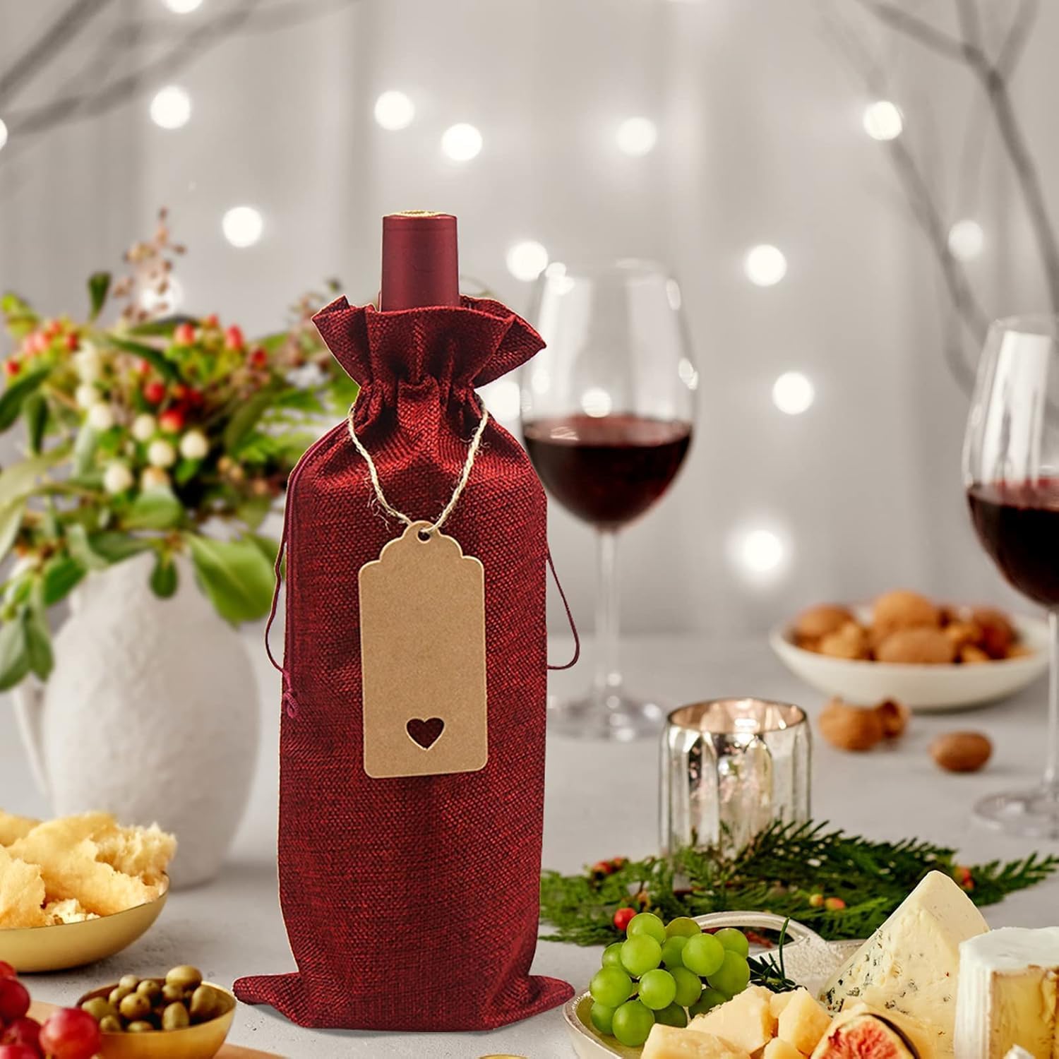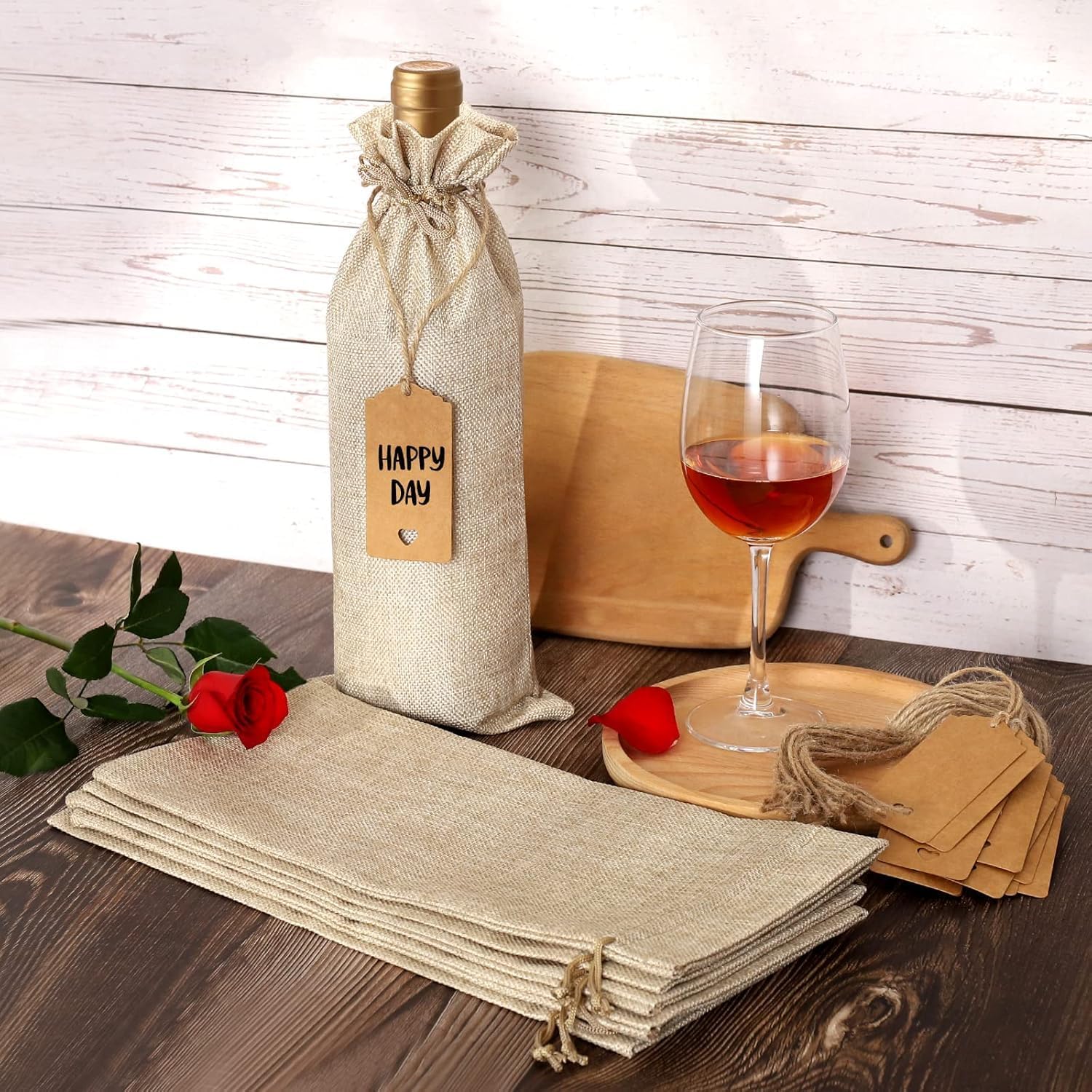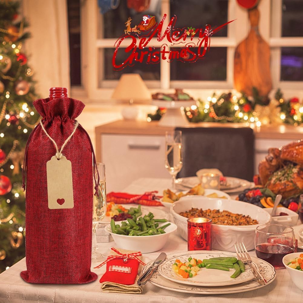 MATERIALI DI ALTA QUALITÀ: I nostri sacchetti regalo per vino sono realizzati in tela di alta qualità, che garantisce resistenza grazie alla sua struttura spessa e alle cuciture senza cuciture. Aggiungono un tocco di raffinatezza ad ogni occasione e possono essere riutilizzati e regalati ripetutamente. Design della fune da tirare: corda in nylon selezionata di alta qualità, facile da tirare. Puoi stringere le maniche delle bottiglie di vino tirando entrambe le estremità della corda nella direzione opposta. È molto comodo per conservare bottiglie di vino o confezionare altri regali per evitare la polvere. MULTIUSO: perfetto per riporre la casa, visite, feste, cerimonie nuziali, anniversari, compleanni, addio al nubilato, inaugurazioni di case, viaggi, vacanze, riunioni di famiglia, San Valentino, Natale, Ringraziamento, Capodanno e altri festival. Dimensioni: la dimensione del sacchetto di iuta è 35 x 15 cm e può contenere una normale bottiglia di vino da 750 ml, una bottiglia di birra, una bottiglia di champagne o una bottiglia di whisky. Puoi anche usarlo per caramelle e altri regali che desideri. Il pacchetto include: sacchetti di vino in tela inclusi: 18 sacchetti per bottiglie di vino in tela, 18 etichette in carta Kraft, 1 corda di canapa. Puoi utilizzare le etichette e la corda per rendere eleganti i tuoi sacchetti regalo e scriverci sopra i tuoi migliori auguri.