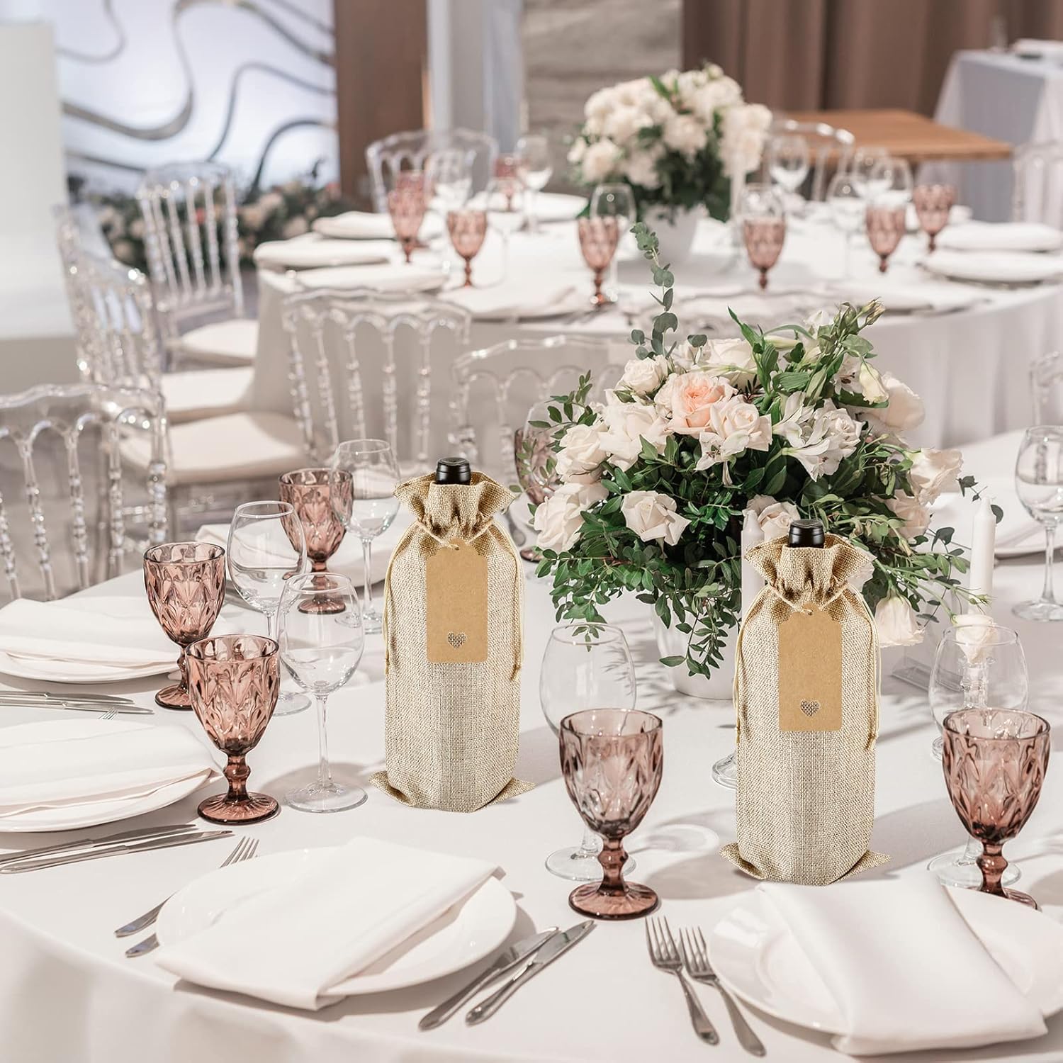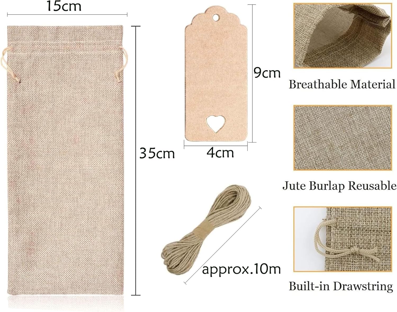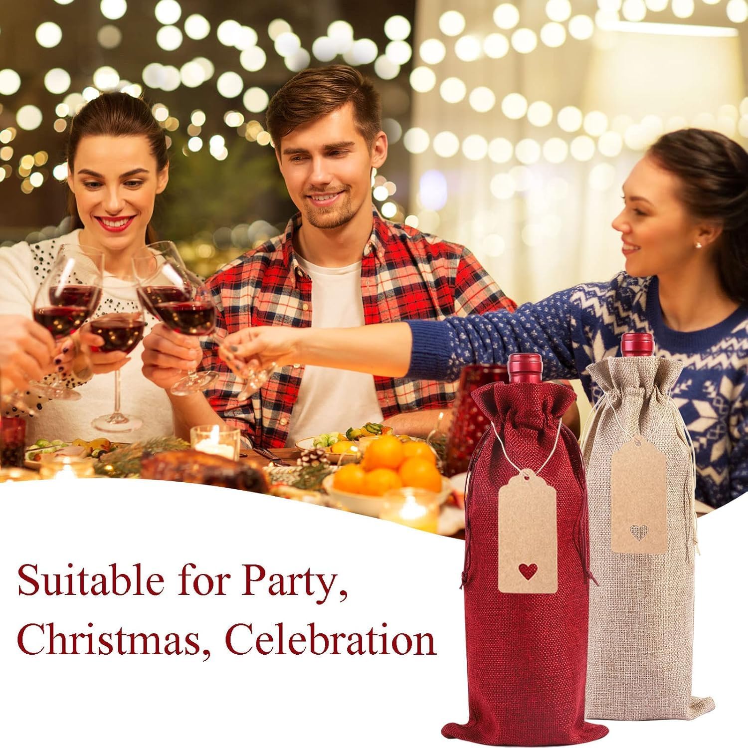 MATERIALI DI ALTA QUALITÀ: I nostri sacchetti regalo per vino sono realizzati in tela di alta qualità, che garantisce resistenza grazie alla sua struttura spessa e alle cuciture senza cuciture. Aggiungono un tocco di raffinatezza ad ogni occasione e possono essere riutilizzati e regalati ripetutamente. Design della fune da tirare: corda in nylon selezionata di alta qualità, facile da tirare. Puoi stringere le maniche delle bottiglie di vino tirando entrambe le estremità della corda nella direzione opposta. È molto comodo per conservare bottiglie di vino o confezionare altri regali per evitare la polvere. MULTIUSO: perfetto per riporre la casa, visite, feste, cerimonie nuziali, anniversari, compleanni, addio al nubilato, inaugurazioni di case, viaggi, vacanze, riunioni di famiglia, San Valentino, Natale, Ringraziamento, Capodanno e altri festival. Dimensioni: la dimensione del sacchetto di iuta è 35 x 15 cm e può contenere una normale bottiglia di vino da 750 ml, una bottiglia di birra, una bottiglia di champagne o una bottiglia di whisky. Puoi anche usarlo per caramelle e altri regali che desideri. Il pacchetto include: sacchetti di vino in tela inclusi: 18 sacchetti per bottiglie di vino in tela, 18 etichette in carta Kraft, 1 corda di canapa. Puoi utilizzare le etichette e la corda per rendere eleganti i tuoi sacchetti regalo e scriverci sopra i tuoi migliori auguri.