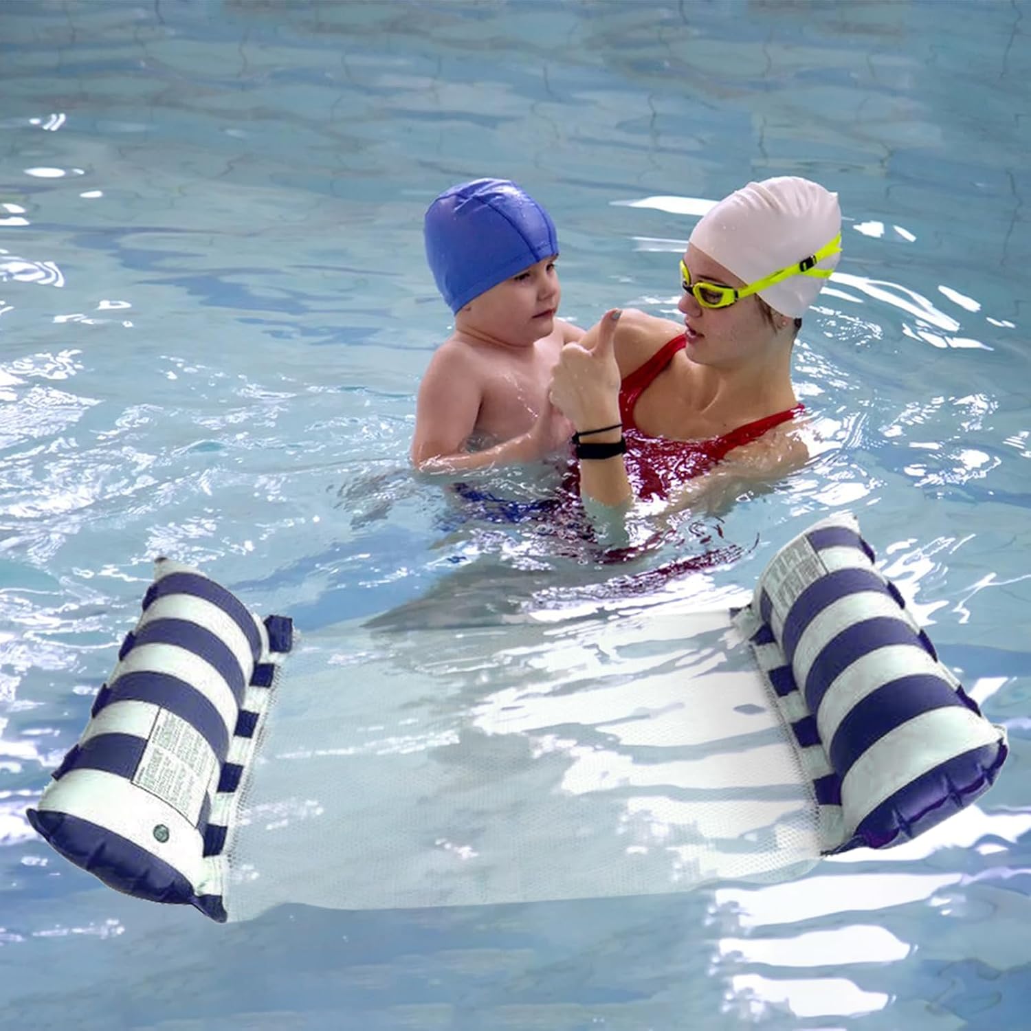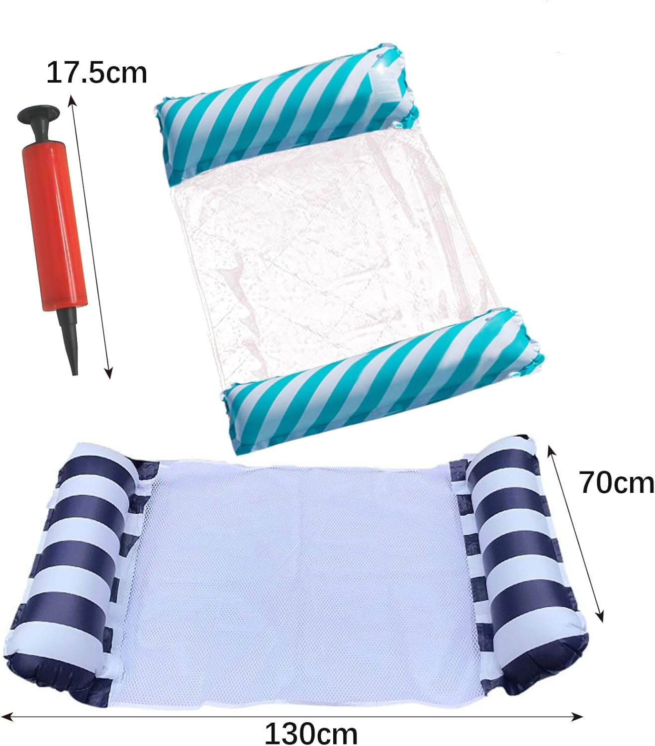 La confezione include: Dimensioni: 130*70 cm/122*70 cm, Peso: 260 g/210 g, incluso Amaca galleggiante 2 pezzi: gialla e rosa, adatta per adulti e bambini, l'amaca ad aria per piscina è pieghevole, facile da riporre e trasportare. Materiale del prodotto: realizzato in PVC ad alta densità e tessuto a rete, non facile da rompere, ecologico, non tossico e durevole, forte capacità di carico, i materiali ad asciugatura rapida possono essere asciugati rapidamente dopo l'uso. Design/Utilizzo del prodotto: questa amaca gonfiabile è dotata di due grandi cuscini di galleggiamento e di un sedile in rete di supporto. Il suo design semi-sommerso può aumentare il contatto tra il corpo e l'acqua per rinfrescare e rilassare meglio il corpo. Scenari di applicazione del prodotto: questa poltrona lounge galleggiante per vasca idromassaggio è pieghevole e compatta, puoi gonfiarla e sgonfiarla rapidamente e facilmente, arrotolarla e riporla facilmente ed è comoda da trasportare in parchi giochi, giardini, prati, mare, spiagge, piscine e altri luoghi. Il regalo perfetto: la confezione da 2 amache galleggianti per piscina è il miglior regalo per giocare con il tuo partner, la tua famiglia e i tuoi amici. Adatto per piscine, spiagge, laghi, vacanze, rafting. Si consiglia ad adulti o bambini di utilizzare l'amaca ad acqua sotto la supervisione di un adulto.