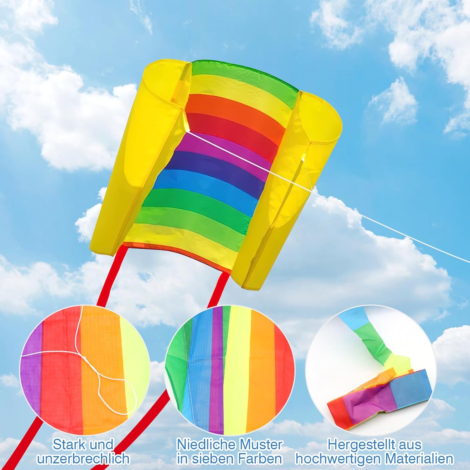 【Aquiloni per bambini】Riceverai 2 pezzi di aquiloni per bambini in diversi stili, 5 protezioni per le dita color pelle, 1 custodia, 1 maniglia per l'uso e una linea di aquiloni lunga 30 m. Le dimensioni del corpo principale del drago sono 78 cm di lunghezza e 53 cm di larghezza, con cinghie di coda colorate lunghe 193 cm su entrambi i lati. 【Materiale durevole】 Il giocattolo dell'aquilone Scetar è realizzato in materiale poliestere resistente agli strappi, leggero e durevole. La stampa sulla superficie del drago è realizzata utilizzando la tecnologia a trasferimento termico e inchiostri ecologici di alta qualità, con immagini chiare e non facili da sbiadire. Facile da montare e far volare: l'aquilone e il giocattolo volante Scetar hanno una struttura semplice e un materiale leggero, adatto a principianti e bambini, i bambini possono facilmente controllare il volo dell'aquilone con la maniglia facile da impugnare. 【Adatto ai regali dei bambini】 Il drago Scetar è adatto a far giocare i bambini di tutte le età e il suo aspetto luminoso può facilmente attirare l'attenzione dei bambini. Questo è un grande regalo per ragazzi e ragazze. Divertenti attività all'aperto: immagina di andare al parco, in spiaggia o al prato con tuo figlio in un fine settimana soleggiato per liberare gli aquiloni tascabili e il momento in cui guardi gli aquiloni tascabili volare nel cielo sarà sicuramente una scena particolarmente gioiosa e impressionante per tuo figlio, che diventerà un prezioso ricordo d'infanzia.