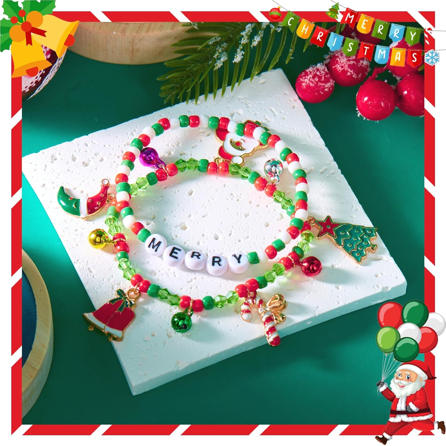Confezione da 2 Braccialetti di Natale per bambini Braccialetti dell'amicizia per ragazze Braccialetti per bambini intrecciati fatti a mano per ragazze Gioielli di compleanno Borse da festa Riempitivi Bomboniere di Natale