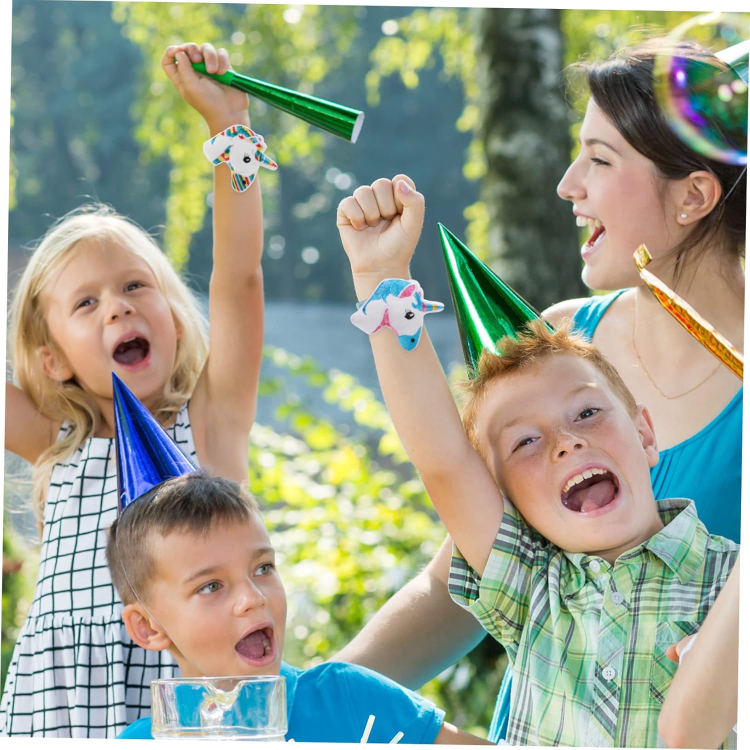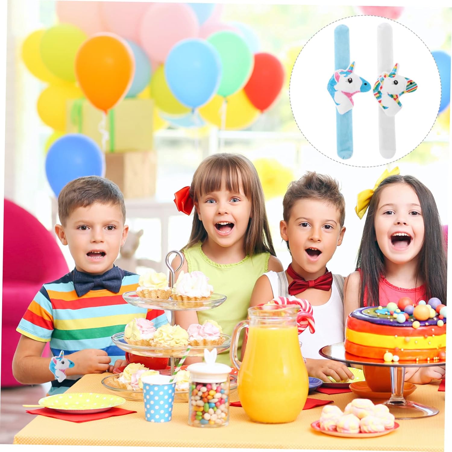 Braccialetti Festival - Bordi arrotondati e superficie liscia, sensazione di tocco delicato, non ti farà male alle mani, puoi usarli con tranquillità, braccialetti schiaffo braccialetti schiaffo per ragazze - questo braccialetto può essere facilmente avvolto attorno al polso, è facile da usare, non sbiadisce facilmente ed è sicuro per far giocare i bambini. Braccialetti per bambini Braccialetti per bambini - vari modelli di cartoni animati di unicorno con una buona sensazione al tatto, molto creativi, possono sicuramente garantire praticità e popolarità, regali per feste per bambini Braccialetti per feste - vari modelli legati ai cartoni di unicorno possono attirare l'attenzione delle persone e dare loro una grande sorpresa. Bomboniere per bambini: facili da girare attorno al polso con un design a punzone, facili da usare, adatti a persone di età diverse, fantastici braccialetti per bambini