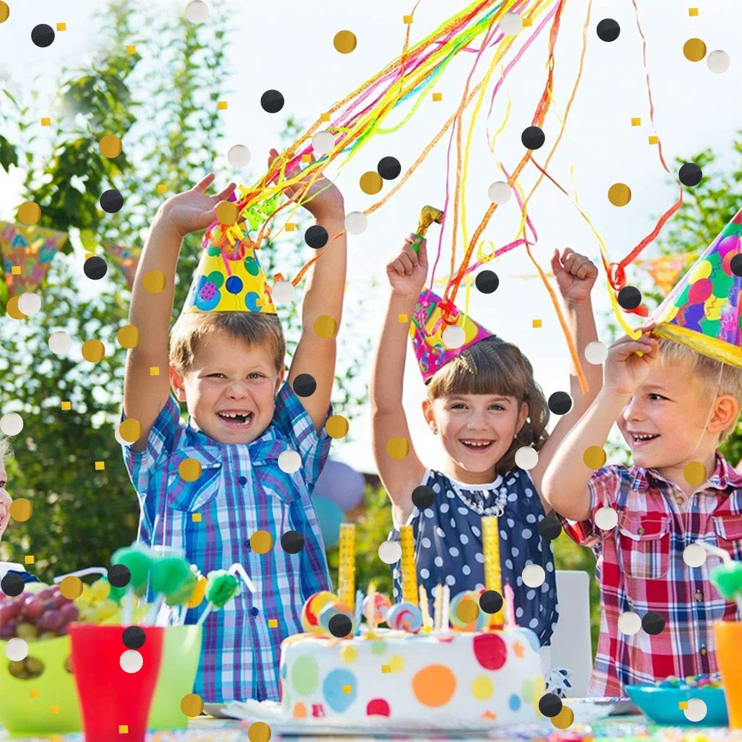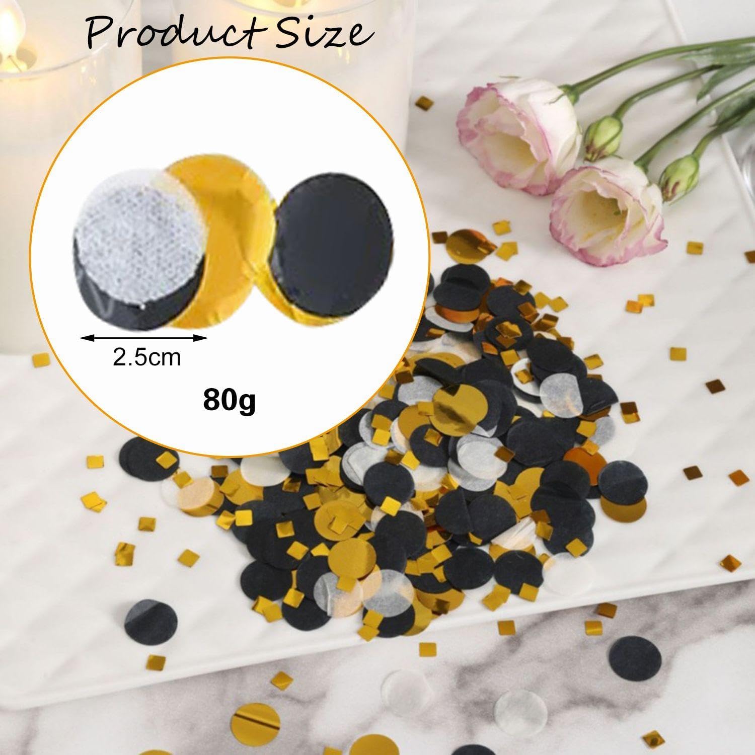 【Contenuto del prodotto】 Riceverai 2 confezioni di coriandoli rotondi, ogni confezione contiene coriandoli neri e dorati, il diametro dei coriandoli è di circa 1,5 cm, perfetto per l'uso come decorazione da tavolo o decorazione per feste. 【Materiale del prodotto】 Questi coriandoli rotondi sono realizzati in materiale cartaceo, ecologico e sicuro, non facile da strappare e facile da pulire dopo l'uso. Questo materiale cartaceo non è solo colorato, ma riflette anche se esposto alla luce, contribuendo a creare un'atmosfera di festa. 【Decorazione creativa】 Questo prodotto è composto da due colori: nero e oro. I colori contrastanti possono migliorare immediatamente il senso della moda e l'atmosfera festosa del luogo. Che si tratti di una tavola o di una confezione regalo, può aggiungere un tocco di colore al tuo evento. 【Ampia applicazione】 Questi coriandoli sono adatti per molte occasioni, come matrimoni, feste di compleanno, San Valentino o altre celebrazioni festive. Può essere utilizzato per decorazioni da tavola, ripieni di carta da regalo, ripieni di palloncini e altro ancora per aiutarti a creare un'esperienza di celebrazione unica e indimenticabile. 【Facile da usare】 Questo prodotto è molto facile da usare. Basta spargere la carta avanzata sul tavolo o ovunque tu voglia decorare. Dopo l'uso, i residui di carta possono essere rimossi facilmente, velocemente e comodamente, rendendo i preparativi del tuo evento più facili e divertenti.