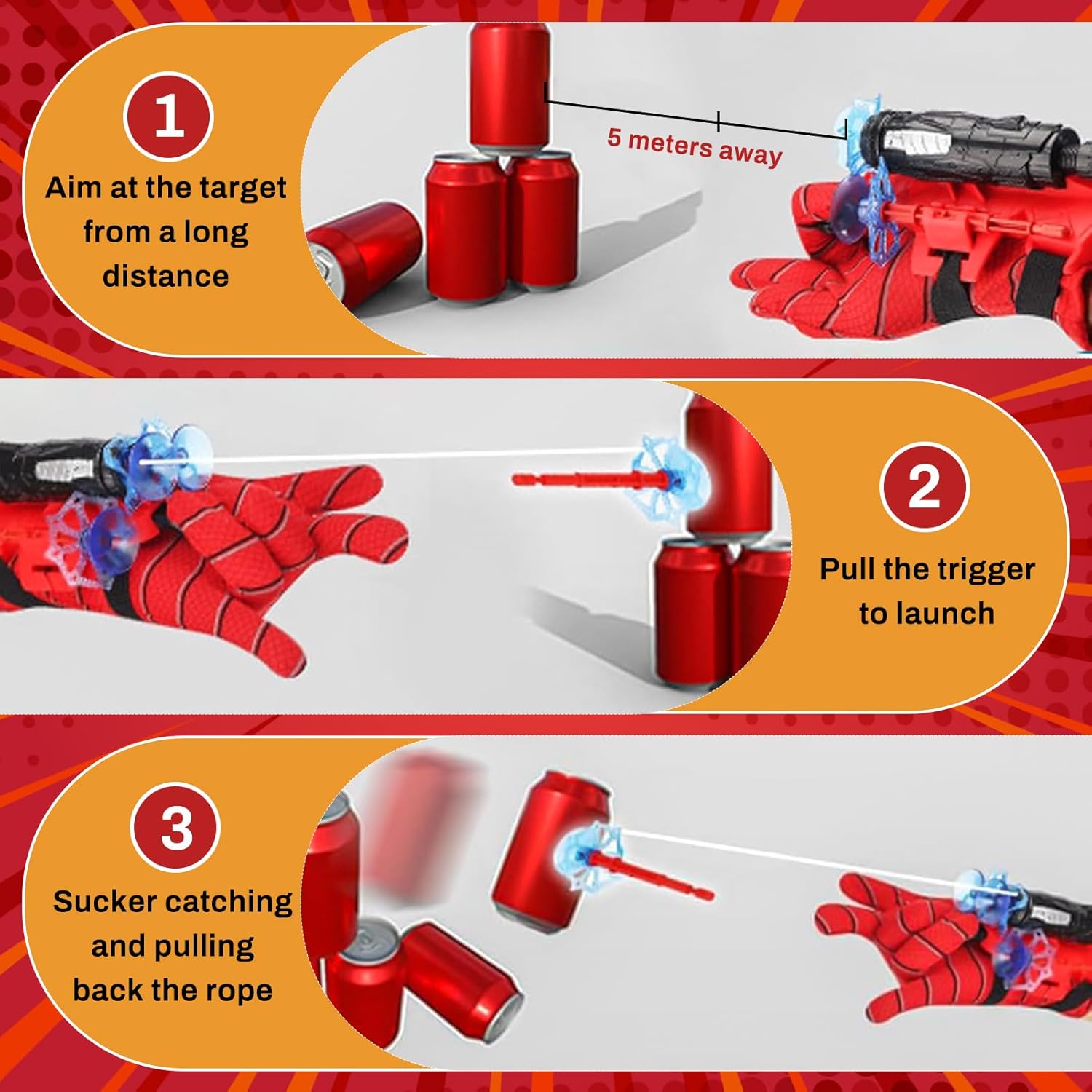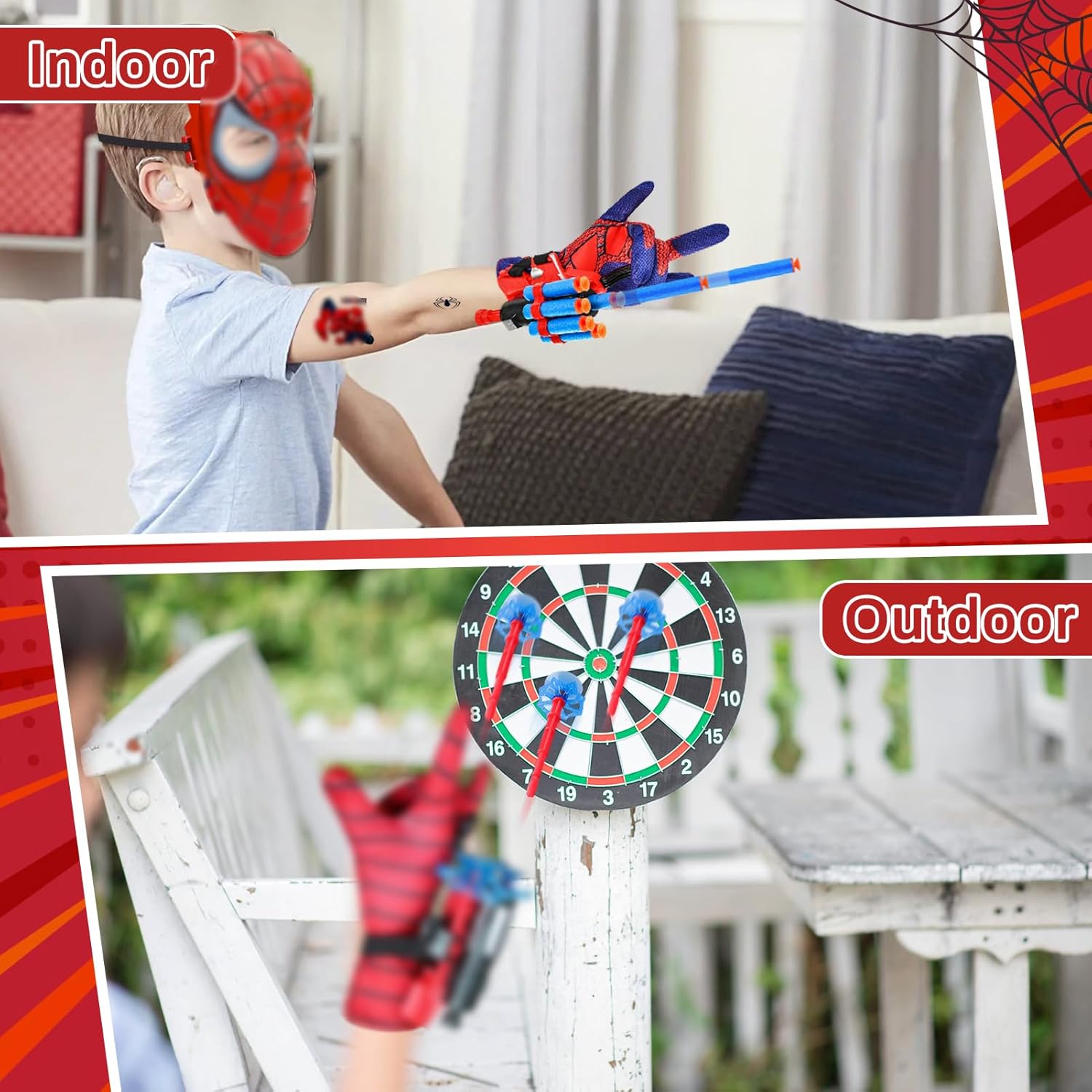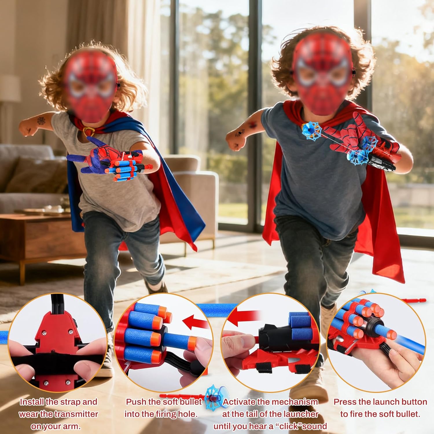 Lancia ragno: riceverai 2 guanti lancia ragno, 2 lanciatori ragnatela, 3 dardi a ventosa, 5 dardi a testa rotonda, 1 maschera da ragno, 1 corda bianca e 2 adesivi da ragno, 4 cinturini da polso regolabili. Il lanciatore di ragnatele del supereroe porta i bambini in un fantastico mondo infantile. Il lanciatore di ragnatele Spiderm consente loro di godersi appieno il divertimento di essere un eroe. Materiale di alta qualità: il nostro guanto per lanciatore di ragnatele Spiderm è realizzato in plastica di alta qualità, ben fatto e comodo da indossare, non tossico e innocuo per il corpo umano e può essere utilizzato in sicurezza dai bambini. Il lanciatore web Spiderm è un giocattolo essenziale per gli appassionati di cinema Facile da usare: basta installare i dardi sul lanciatore, il giocattolo Spiderm, quindi legalo semplicemente con un elastico e usarlo sulla mano. Puoi indossare il lanciatore di ragnatele per lanciare freccette sul pavimento, sul muro o sul vetro, il che è molto divertente. Questo sparatutto in ragnatela può essere abbinato a qualsiasi costume da supereroe, permettendo a tuo figlio di distinguersi. Stimola l'immaginazione: i bambini possono sviluppare la propria visione del mondo e la propria missione giocando a giochi di eroi e stimolando il culto degli eroi dei bambini. Puoi giocare a giochi di ruolo con i tuoi figli per dare loro una comprensione più profonda del ruolo degli eroi e rafforzare l'interazione tra genitori e figli. Il guanto da polso Spiderm Hero Web Launcher è perfetto per cosplay, feste di compleanno, feste a tema, feste di film, interazioni di gioco quotidiane o altre occasioni. Giochi per bambini Giocattolo Spiderm di 3,4,5,6,7 anni,Questo è il lanciatore di web con guanti e maschera di Spiderm, il complemento perfetto per i costumi cosplay ed è il regalo perfetto per i bambini a Natale, Cosplay, Halloween, Carnevale Festa dei bambini e compleanno
