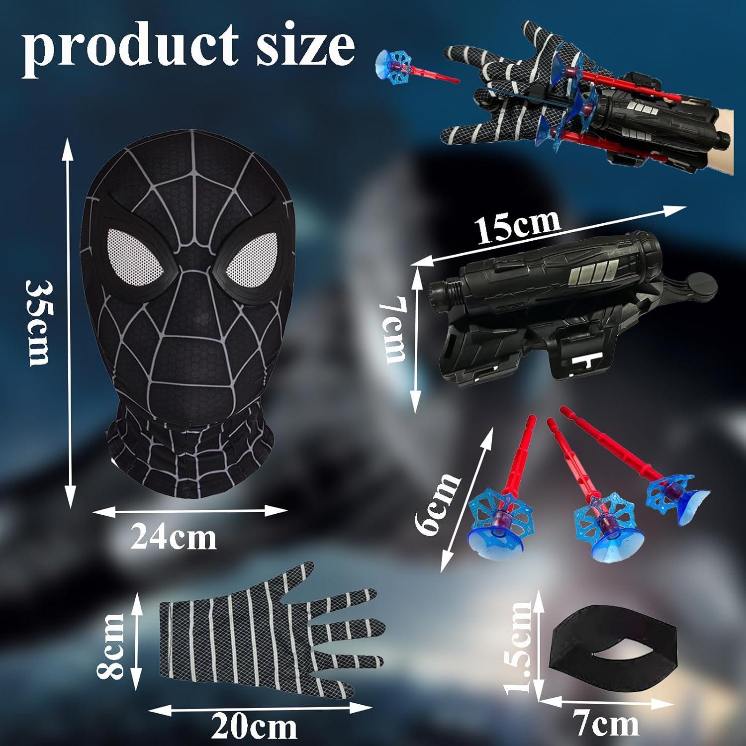 LANCIATELA RAGNATELA - Il set Spider include 1 maschera, 2 lanciatori, 6 ventose e 2 guanti, 2 adesivi ragno, 2 bobine, i bambini hanno tutto l'equipaggiamento dell'eroe, sarà il loro regalo preferito. GIOCO RAGNO DA USARE - Dopo aver indossato il giocattolo Spider, inserisci la palla nel foro del guanto Spider, quindi premi il grilletto rosso all'estremità del lanciatore e senti il clic del grilletto. Infine, premi il pulsante di avvio e puoi iniziare SPIDERM SPIDER WEB LAUNCHER MATERIALE - I guanti da lancio spiderm sono realizzati in ABS di alta qualità, tessuto e materiali in lattice naturale, sono ben realizzati, comodi da indossare e il poligono di tiro può facilmente raggiungere circa 5 metri. Puoi sparare contro il vetro o il terreno e la ventosa aspira il terreno o il vetro, il che è molto interessante GUANTI SPIDERM SPIDER WEB DESIGN - I guanti Spiderm per bambini sono ispirati a un eroe fantastico. I nostri guanti spiderm spider web e dall'aspetto accattivante, puoi giocare a giochi sparatutto spiderm web con i tuoi amici GIOCATTOLI SPIDERM PER BAMBINI - Il guanto Spiderm Launcher è un fantastico giocattolo per bambini, lascia che i bambini imparino e coltivino la propria visione del mondo, immaginazione e creatività quando si divertono