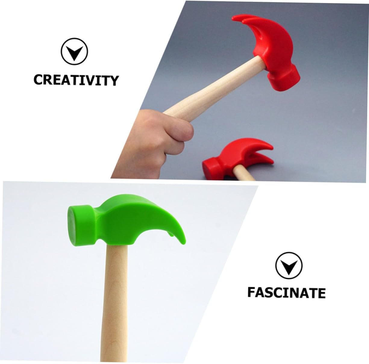 Martello - Leggero e della giusta dimensione, il piccolo martello è facile da usare e da usare e offre molta più comodità, martello di legno per giocattoli per bambini in plastica - i martelli vengono utilizzati per bussare ai tavoli e anche per i laboratori di falegnameria nella scuola materna in inverno. Puoi anche usare gocce per picchiettare sul ghiaccio, giocattoli per bambini, martelli per bambini: questi giocattoli con martello possono stimolare i bambini a esercitare le braccia e migliorare la loro capacità di presa, il che rende il gioco più divertente. Giocattolo martello per giocattoli per bambini - il prodotto è leggero, portatile, facile da usare ed è un pratico giocattolo martello, piccolo giocattolo martello Piccolo martello - membri, compagni di classe o vicini con bambini, rendili felici e migliora la loro relazione, martello giocattolo per bambini