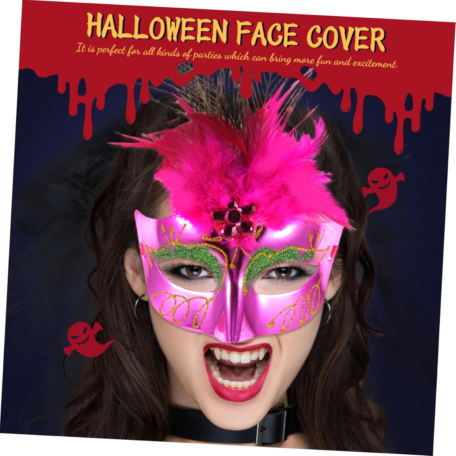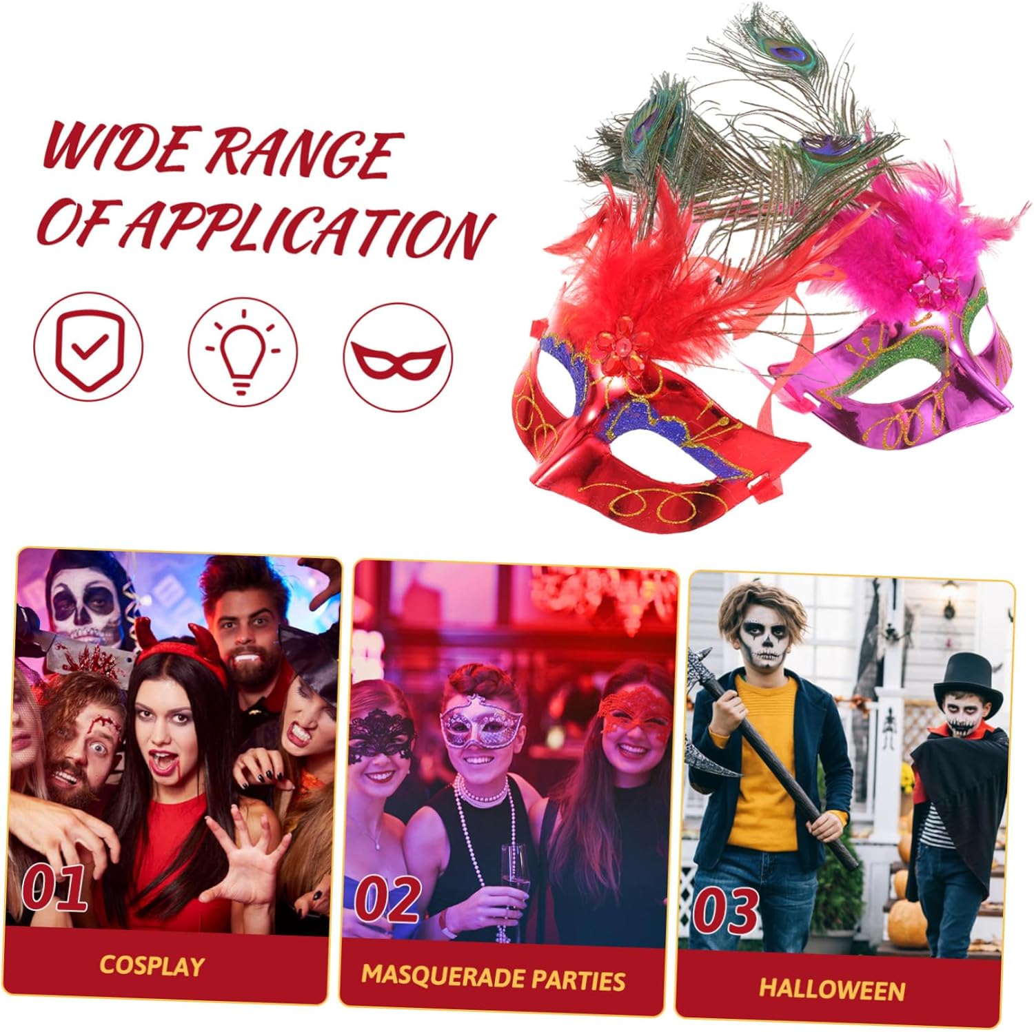 Confezione da 2 maschere di piume di pavone per donne, divertenti maschere in maschera, glitter veneziani, mezza maschera per Halloween, costume da festa, cosplay, Natale, colore casuale