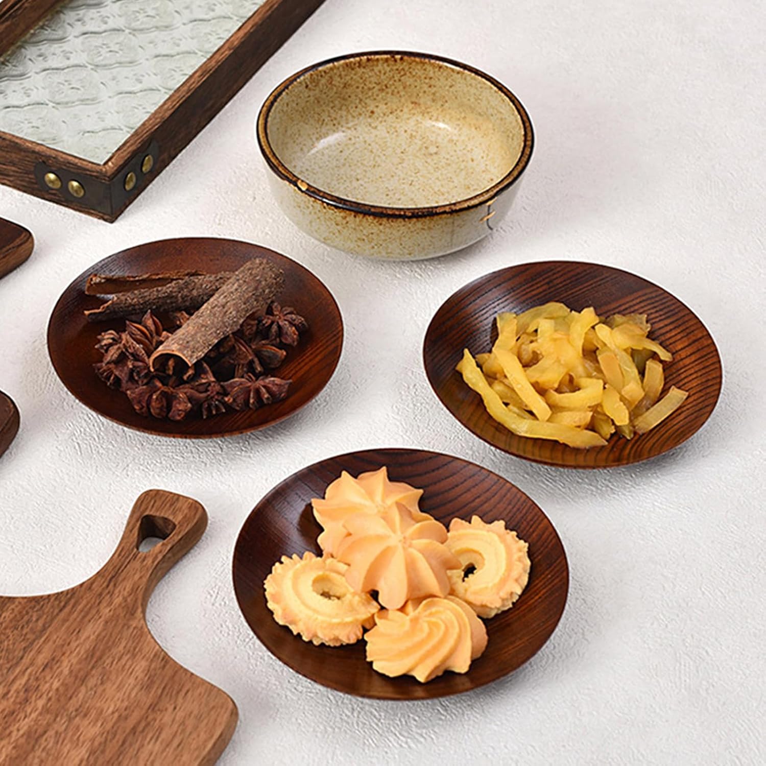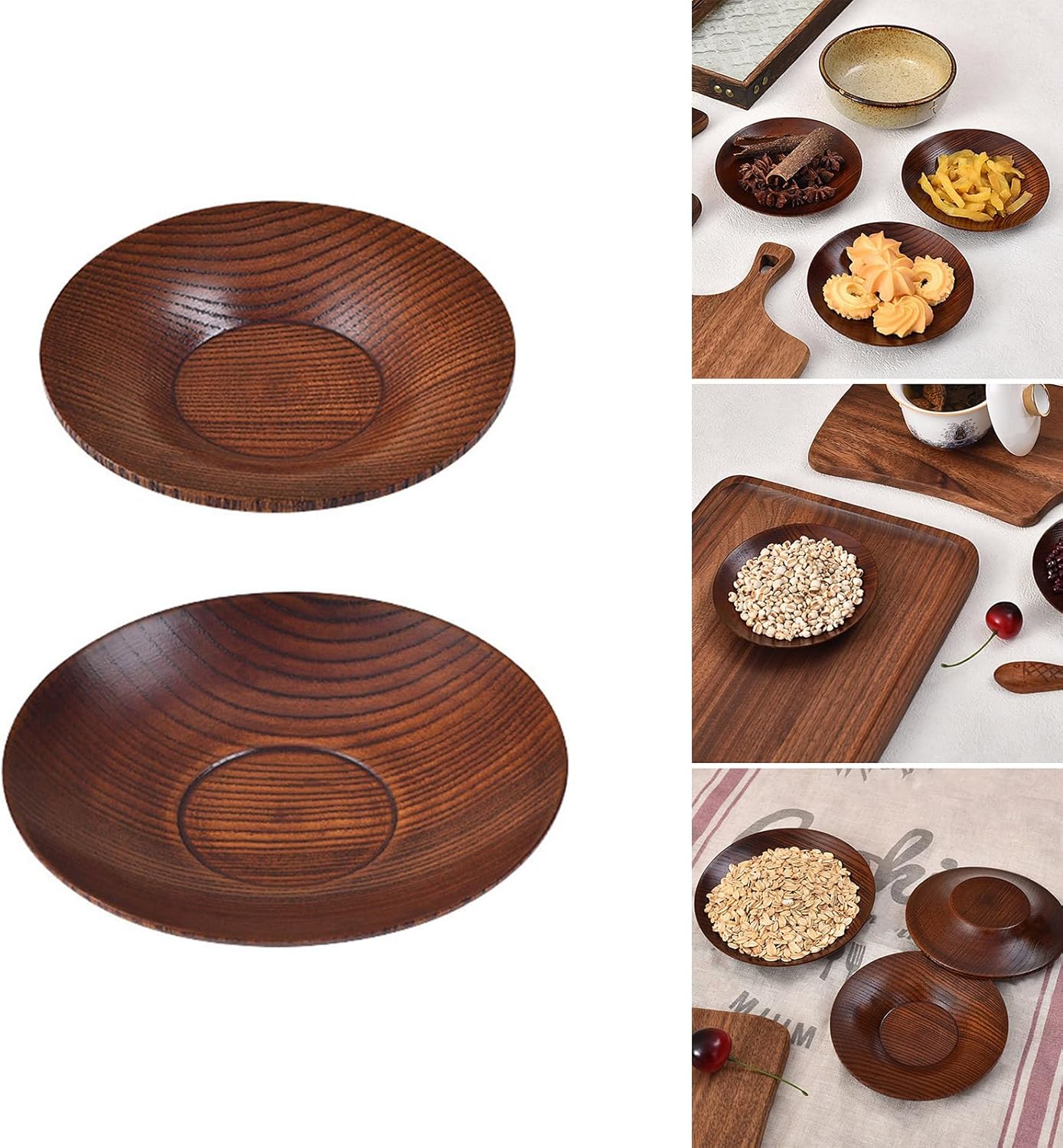 Perfetti per i pasti o le riunioni quotidiane in famiglia, questi piattini possono essere utilizzati per servire la colazione, il pranzo o la cena. Aggiunge un tocco al tuo tavolo da pranzo e migliora l'esperienza culinaria complessiva. Caratterizzati da un'esclusiva forma rotonda con bordi sottili, questi piatti piani in legno sono esteticamente gradevoli e pratici, offrendo un'eccellente resistenza al calore e durata per servire vari snack. Realizzati in legno di giuggiola, questi piattini in legno di giuggiola offrono un'esperienza culinaria naturale per garantire sicurezza e pace a te e alla tua famiglia. Indipendentemente dal luogo in cui si organizza una festa o un momento, questi piatti in legno sono perfetti per servire frutta o dessert, creando atmosfere invitanti che incoraggiano la condivisione e l'interazione tra amici e familiari. Adatto a casalinghe e appassionati di cucina che danno priorità allo stile di vita e offrono alle loro famiglie un ambiente da pranzo sano e visivamente accattivante.