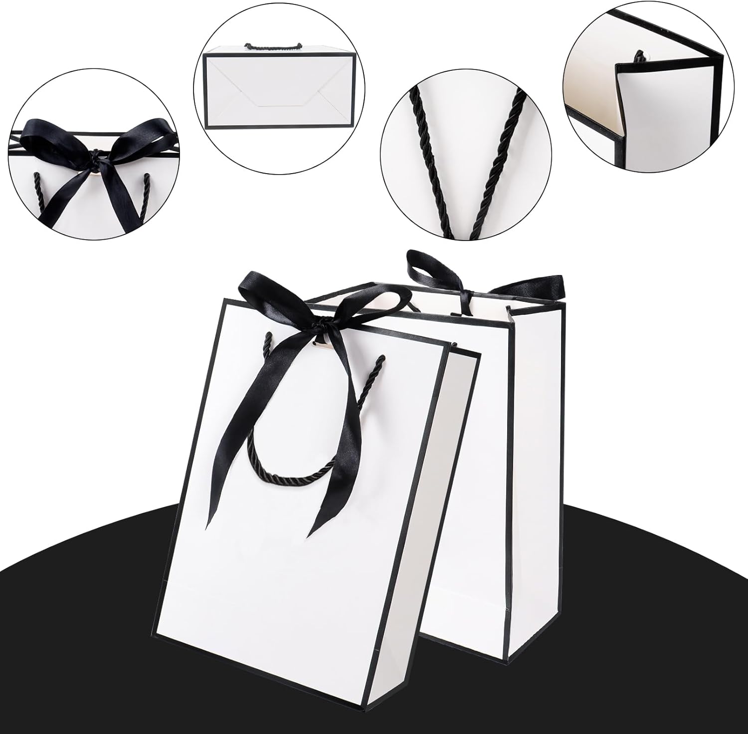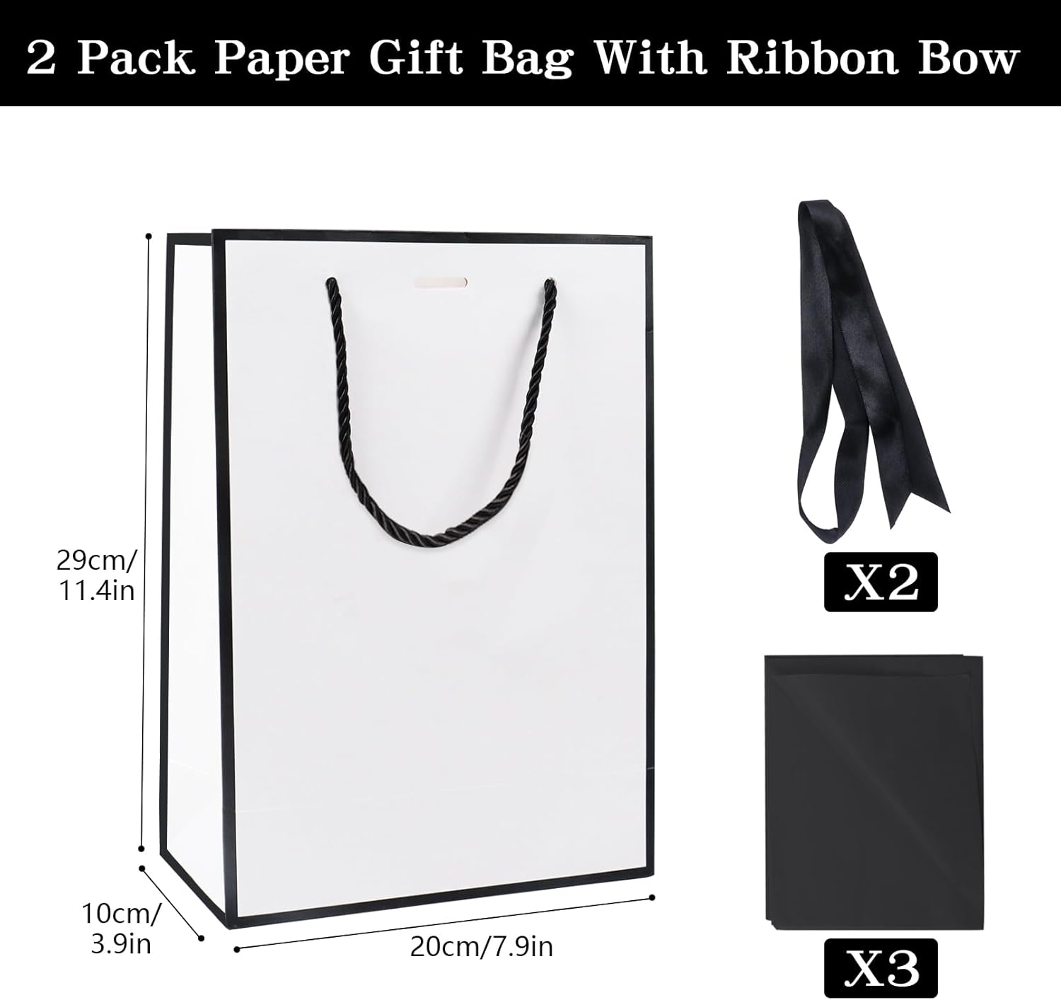 Set completo di confezioni regalo: questo set comprende 2 sacchetti regalo di alta qualità (29×20×10 cm), 2 fiocchi eleganti, 3 carte veline abbinate e 2 biglietti di auguri. MATERIALI DI ALTA QUALITÀ: Realizzati in carta spessa e resistente, questi sacchetti regalo sono abbastanza robusti da contenere una varietà di articoli come vestiti, libri o accessori mantenendo un aspetto elegante e sofisticato. Design elegante e versatile: con un'elegante chiusura a nastro e un design classico, questi sacchetti regalo sono perfetti per compleanni, anniversari, matrimoni, baby shower o altre occasioni speciali. Dimensioni adatte per vari regali: misurando 11,42×7,87×3,94 pollici, queste borse offrono spazio sufficiente per regali di medie dimensioni e li tengono al sicuro e ben presentati. RIUTILIZZABILI ED ECOLOGICI: questi sacchetti regalo e accessori riutilizzabili sono una scelta regalo eco-consapevole poiché riducono gli sprechi senza compromettere lo stile.