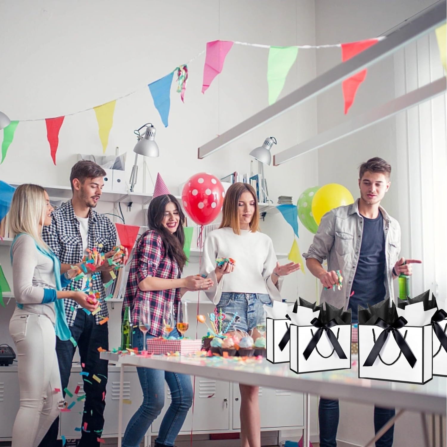 Contenuto della confezione: riceverai 2 sacchetti regalo con manici e nastri, 4 carte veline e 2 biglietti d'auguri, la combinazione di questi può fornire una confezione squisita per esprimere i tuoi sentimenti e soddisfare le tue esigenze di utilizzo. Design elegante: viene fornito con carta velina abbinata per avvolgere il tuo regalo o decorare i sacchetti da festa. È incluso un nastro di seta da legare attorno alla borsa, aggiungendo un tocco decorativo e fissando il contenuto. Un biglietto di auguri per scrivere messaggi al destinatario. Puoi creare disegni o lettere sui sacchetti per trasformarli in sacchetti regalo personalizzati. Materiale di qualità: i sacchetti regalo con manici sono realizzati principalmente in carta spessa che è robusta, durevole e offre un servizio a lungo termine. Dimensioni medie: i sacchetti regalo misurano 28 x 20 x 10 cm. Questi sacchetti regalo di medie dimensioni hanno una capacità generosa per vari regali di medie dimensioni, come giocattoli, trucchi, portagioielli, ecc. La scelta ideale per tutte le tue esigenze di regali. Ampia applicazione: questi sacchetti di carta bianca con carta velina bianca e dorata sono abbastanza versatili per una vasta gamma di occasioni, tra cui compleanni, matrimoni, feste, baby shower, anniversari, vacanze, Natale, Ringraziamento, festa della mamma e altro ancora. Rendi ogni celebrazione più speciale con questi graziosi sacchetti regalo