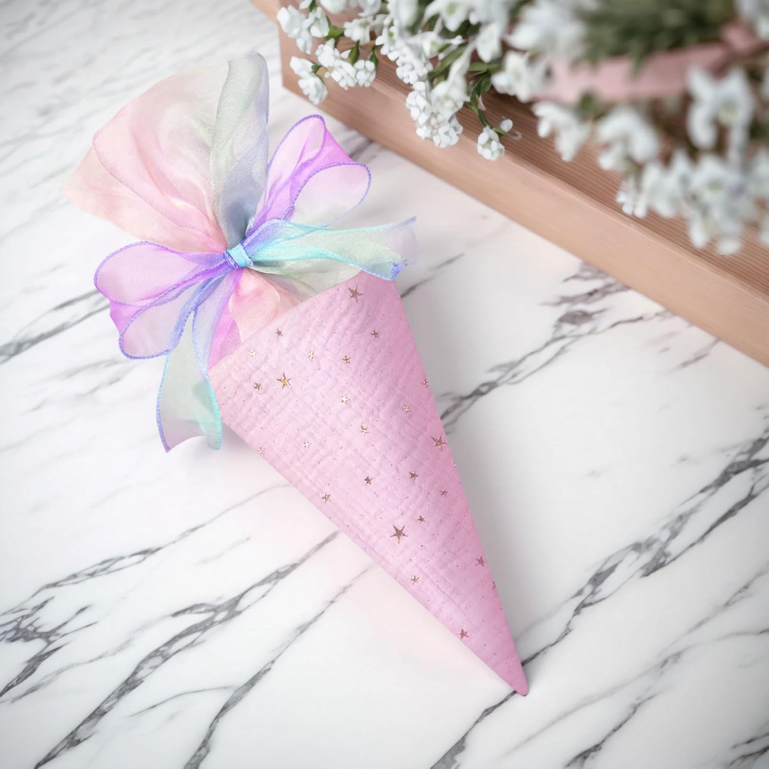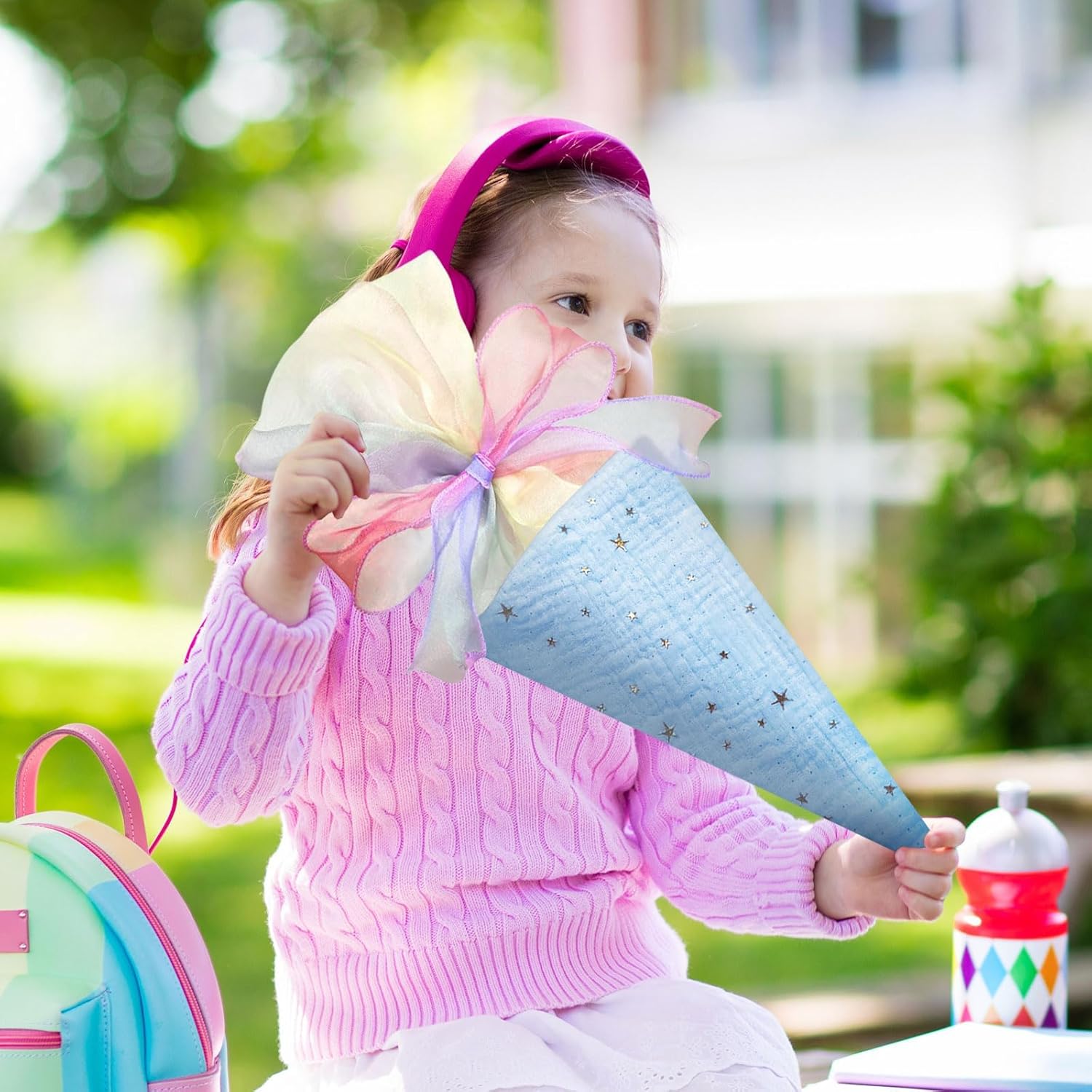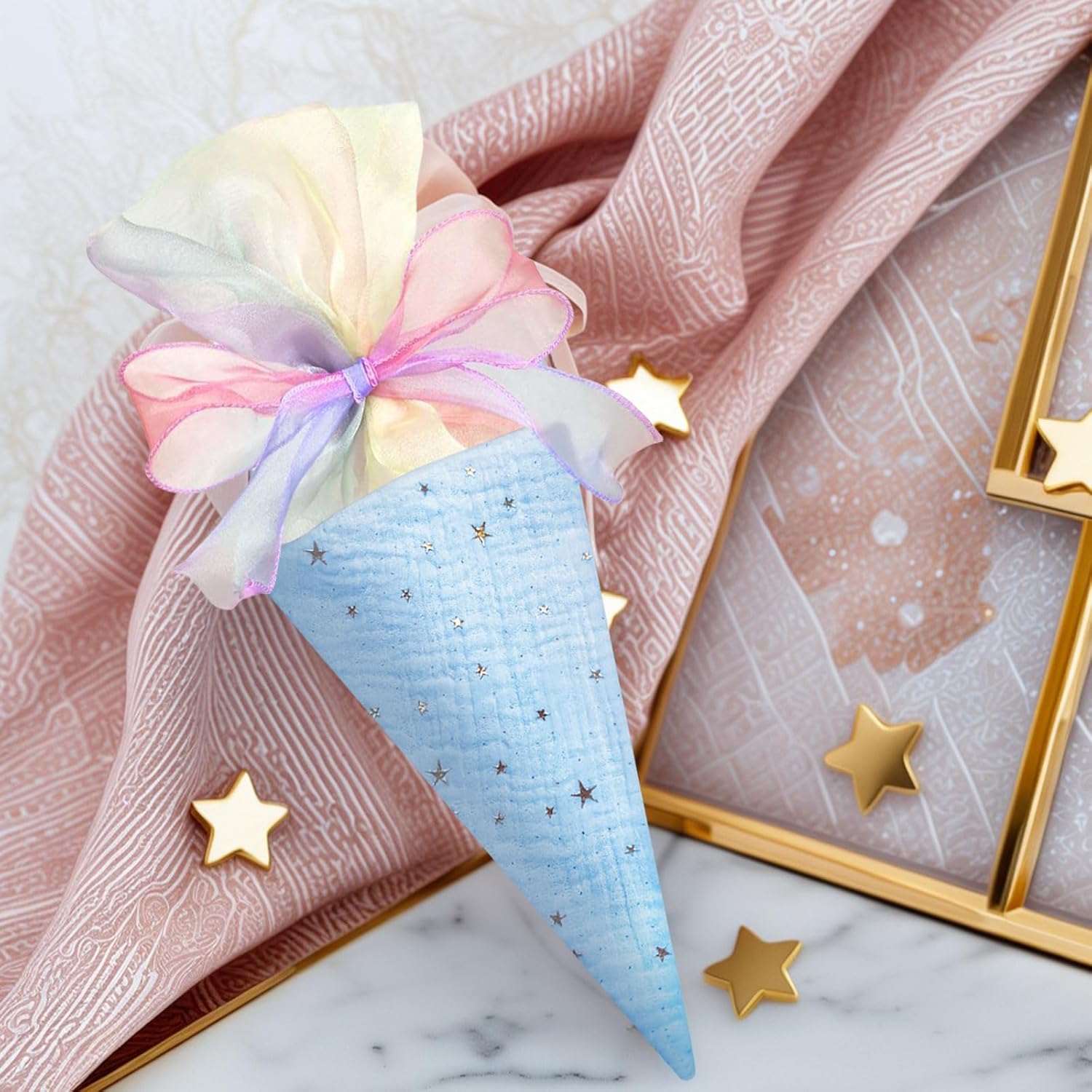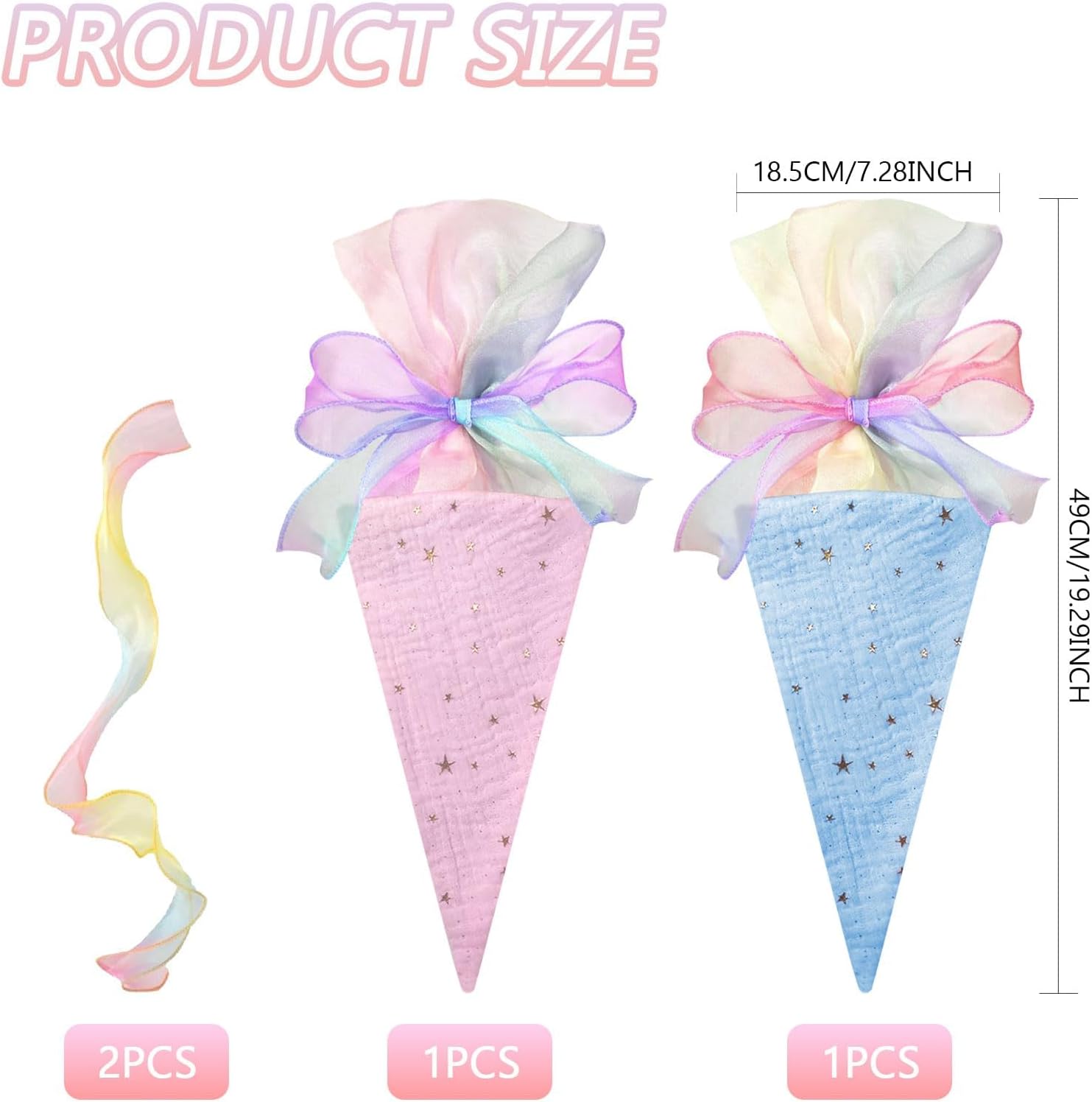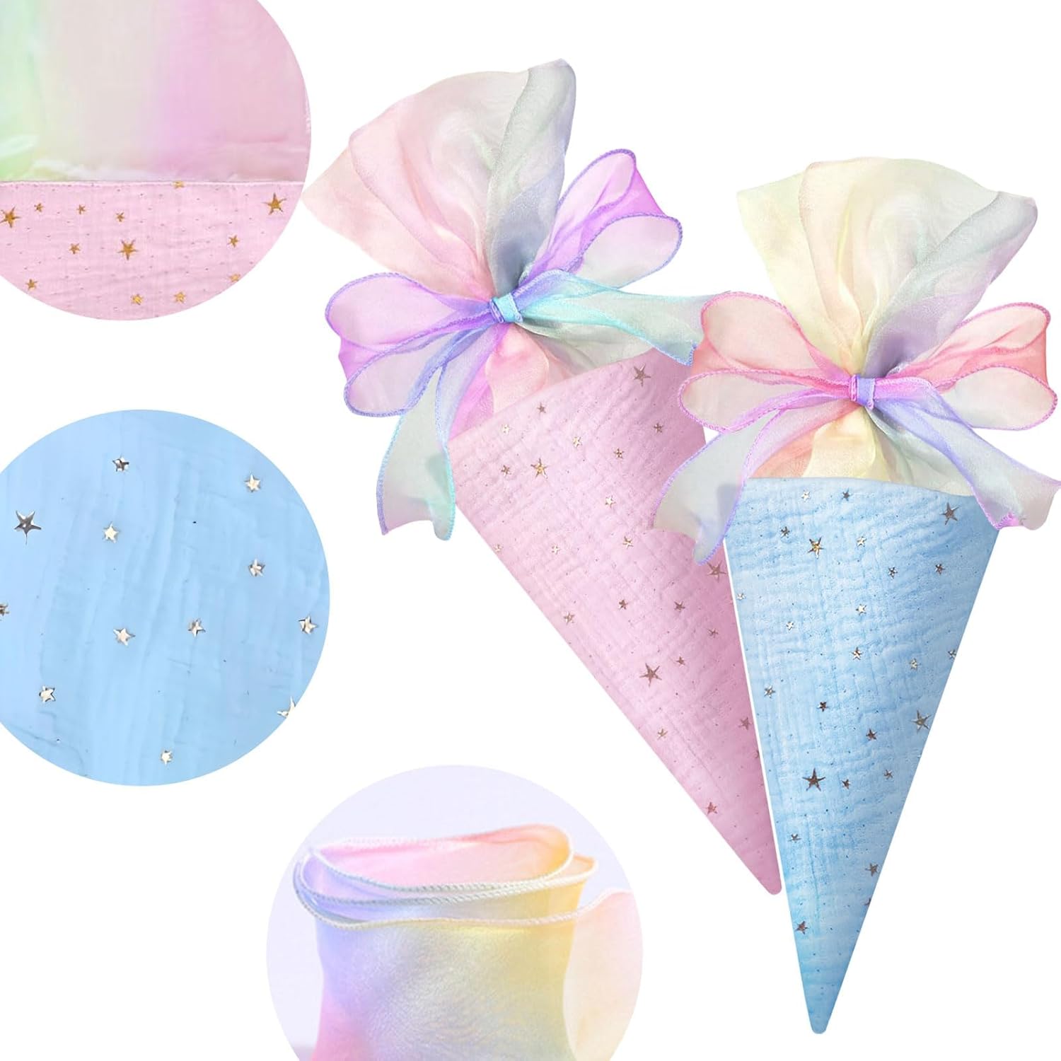 Incluso nel set per fratelli – riceverete 2 grandi coni scolastici (coni di zucchero) in rosa e blu – perfetti per i fratelli al loro primo giorno di scuola. Dimensioni perfette per il materiale scolastico: con un'altezza di 49 cm e un diametro di 18,5 cm, le borse offrono molto spazio per oggetti di riempimento come penne, astucci, bricolage, quaderni e piccole sorprese. Design a stella di alta qualità con fiocco - Realizzato in cotone di alta qualità con un simpatico motivo a stella e un fiocco delicato - un inizio elegante per la vita scolastica. Chiusura sicura e riutilizzabile: la chiusura ermetica garantisce che nulla vada perso. La robusta borsa in cotone può essere utilizzata anche dopo l'inizio della scuola. Il regalo perfetto per l'inizio della scuola - Idealmente riempito con dolci e piccole sorprese come regalo di ritorno a scuola per ragazzi e ragazze per l'inizio della scuola o il primo giorno di scuola.