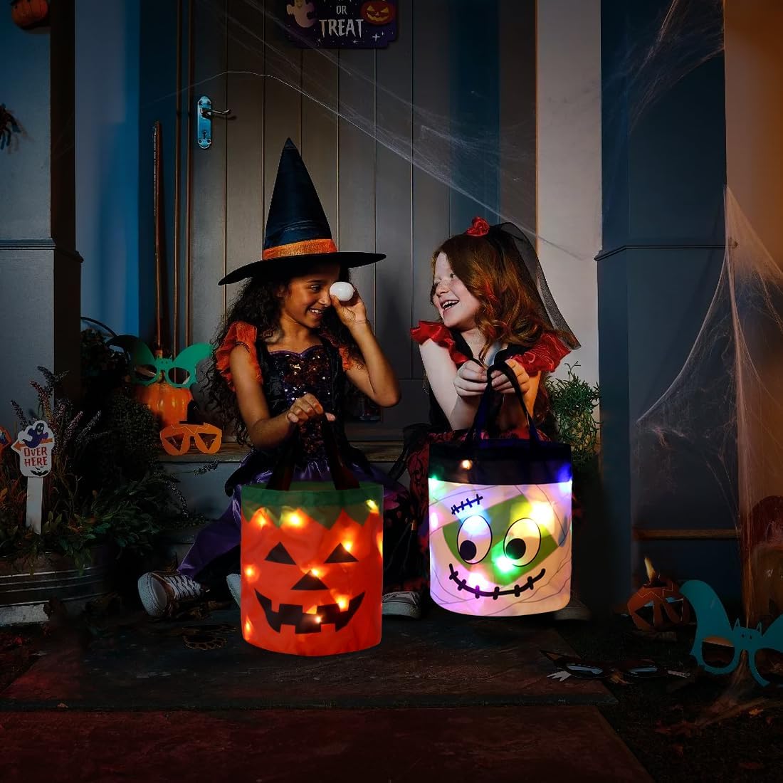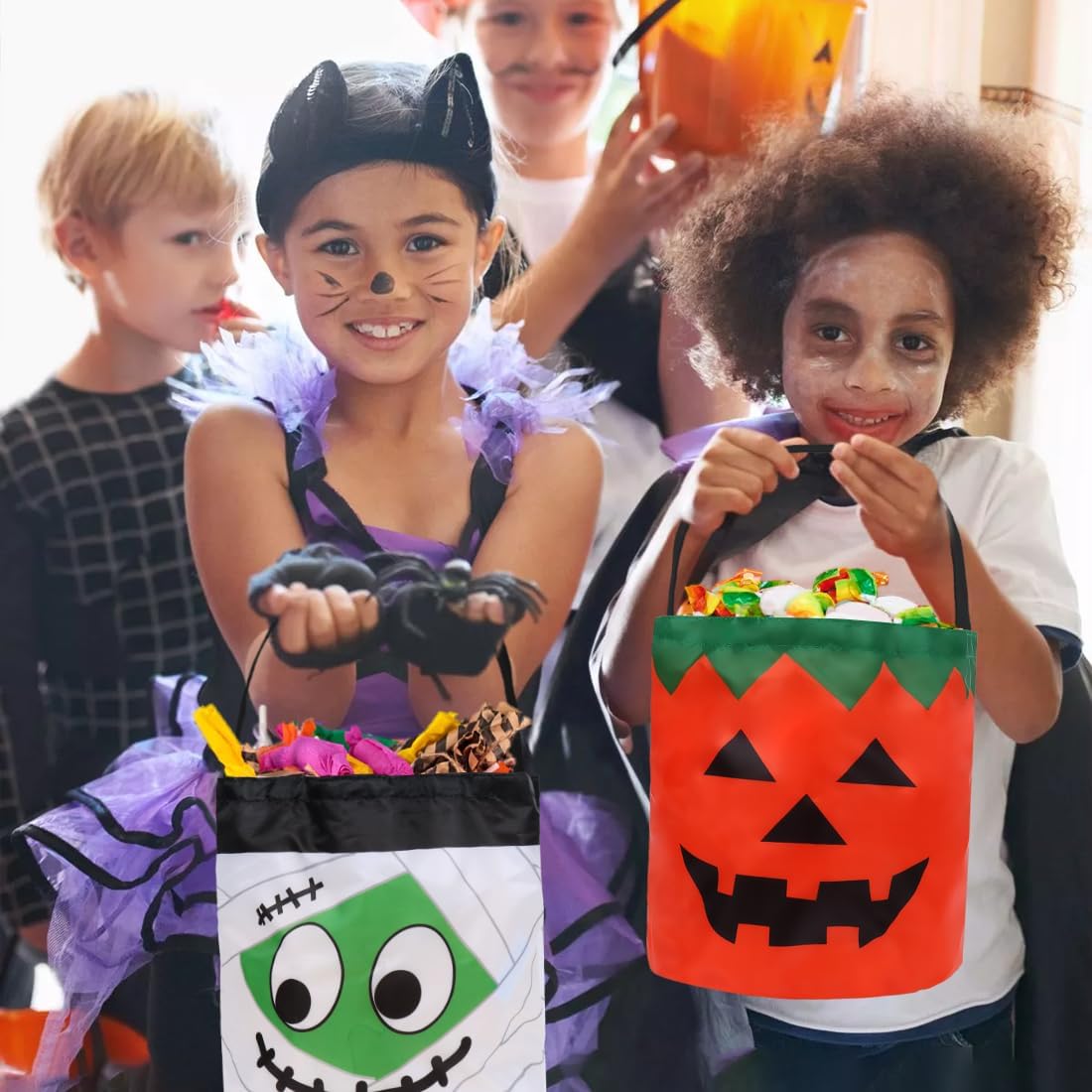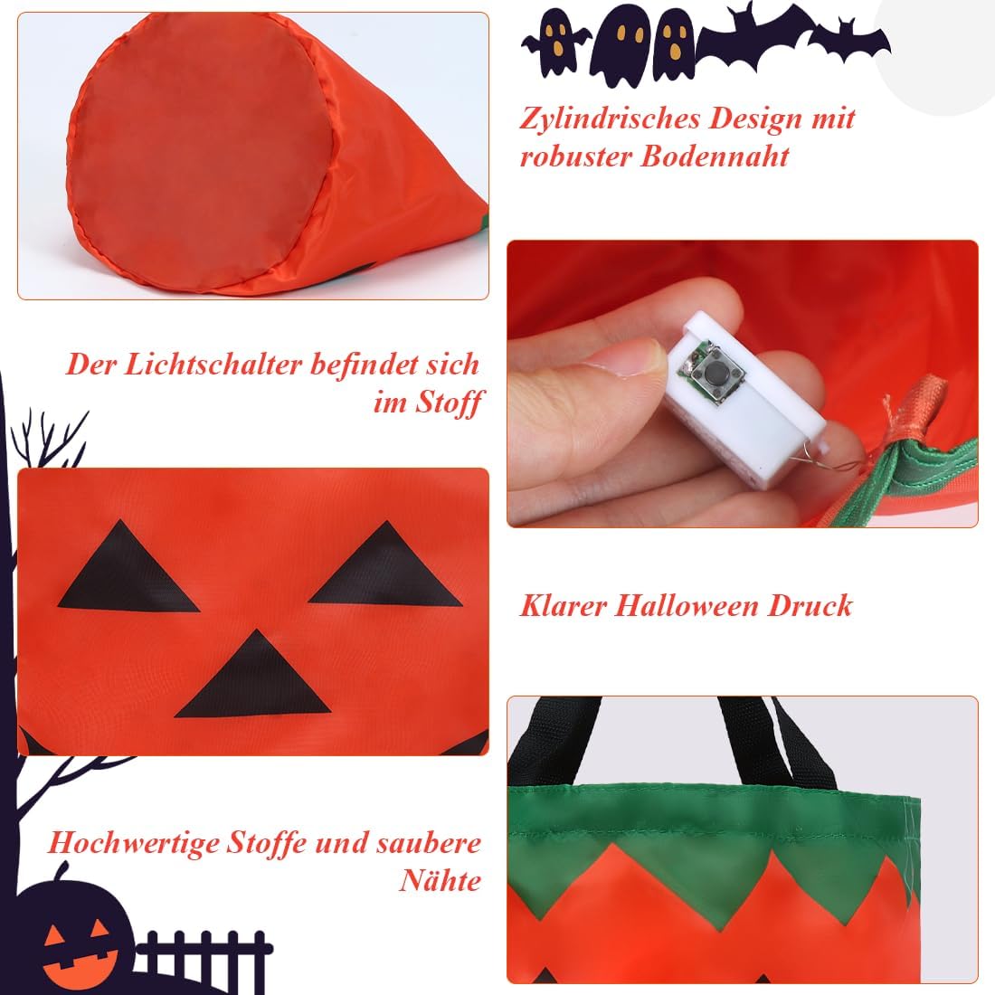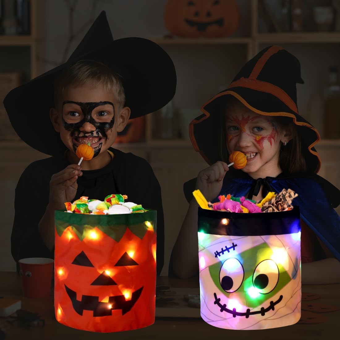 Secchiello per caramelle di Halloween: riceverai due sacchetti di caramelle luminosi di Halloween. Uno arancione, uno bianco, questi sacchetti di caramelle sono decorati con emoji di Halloween, aggiungendo ulteriore divertimento alla tua celebrazione di Halloween. Sacchetto di caramelle luminoso: questi sacchetti sono dotati di luci a LED che si accendono con il semplice tocco di un pulsante, creando un'atmosfera festosa nella notte di Halloween. Materiali di alta qualità: queste borse di Halloween sono robuste, resistenti e leggere, il che le rende facili da trasportare per i bambini. Che si tratti di raccogliere dolci o di conservare piccoli regali, sono pratici. MULTIUSO: Questi luminosi sacchetti per caramelle sono versatili e ideali per le celebrazioni di Halloween e le feste di carnevale. Aggiungono un tocco speciale alle tue vacanze. Possono anche essere usati come sacchetti regalo per la famiglia e gli amici in modo che possano condividere la gioia delle feste. Dolcetto o scherzetto: i secchielli per caramelle di Halloween sono perfetti per le attività di Halloween con i bambini. I bambini usano questi graziosi sacchetti di caramelle per raccogliere caramelle nella notte di Halloween. Questi secchielli per caramelle lampeggiano delicatamente al buio, attirando immediatamente l'attenzione di chi li circonda e attirando l'attenzione nella notte di Halloween.