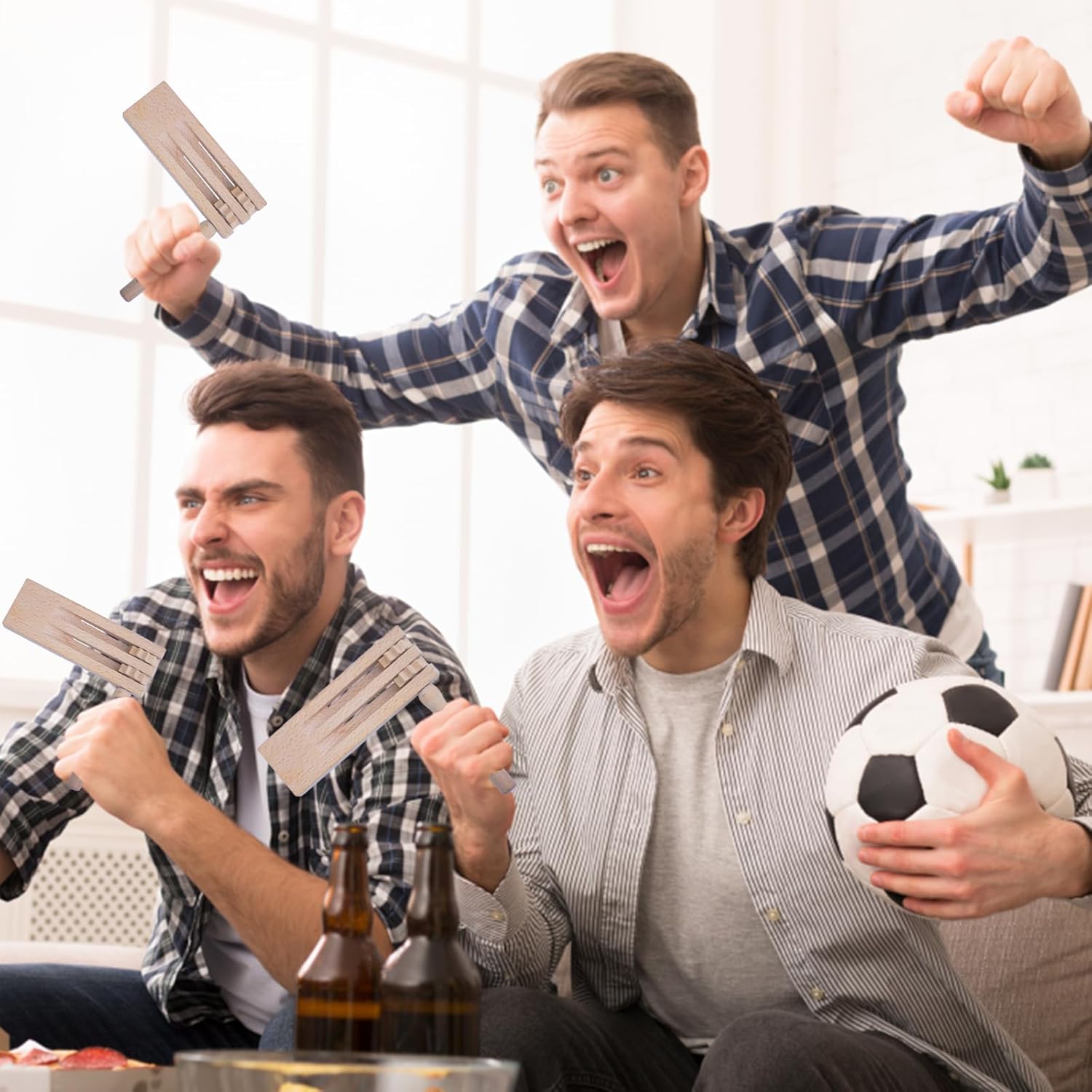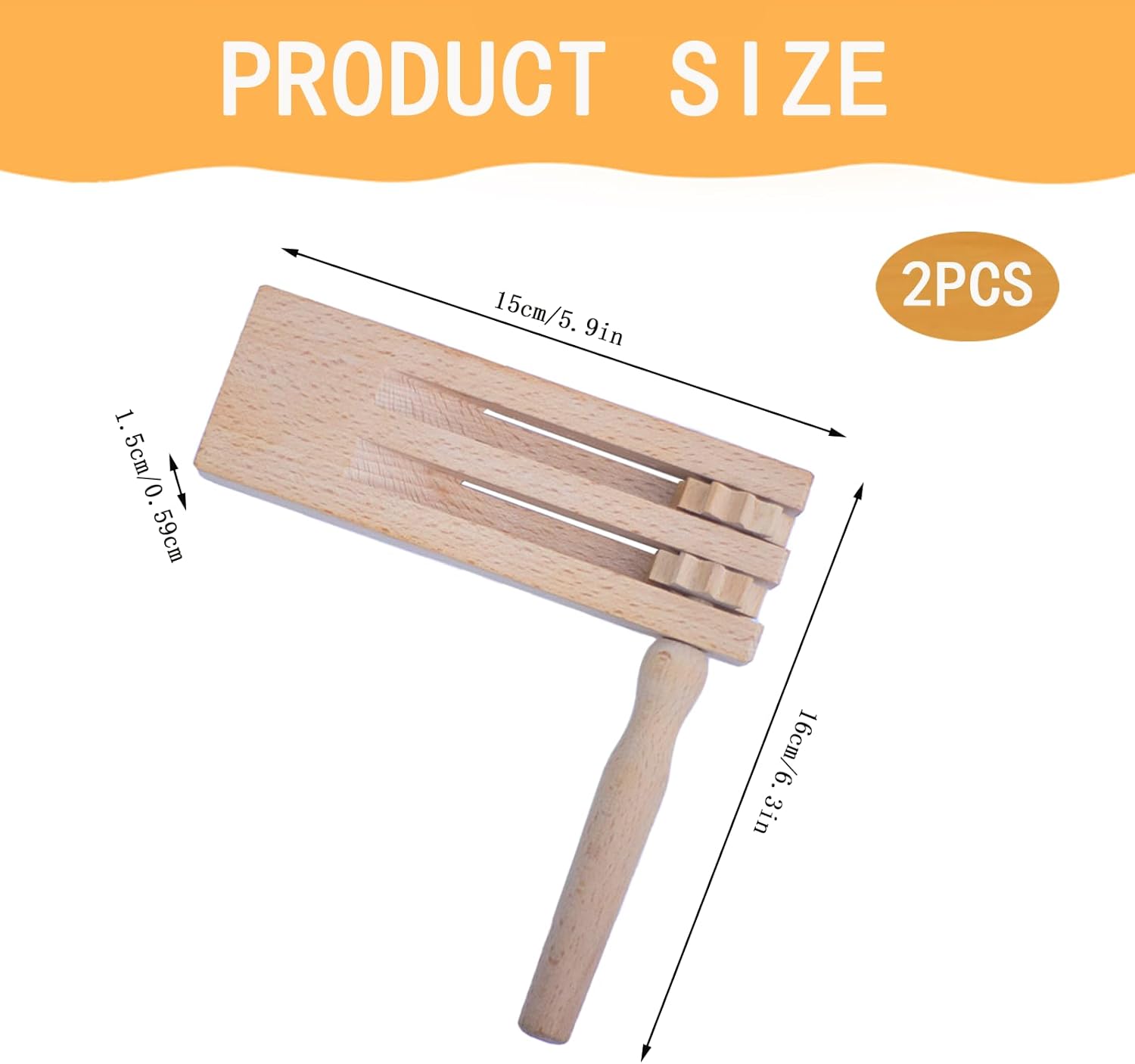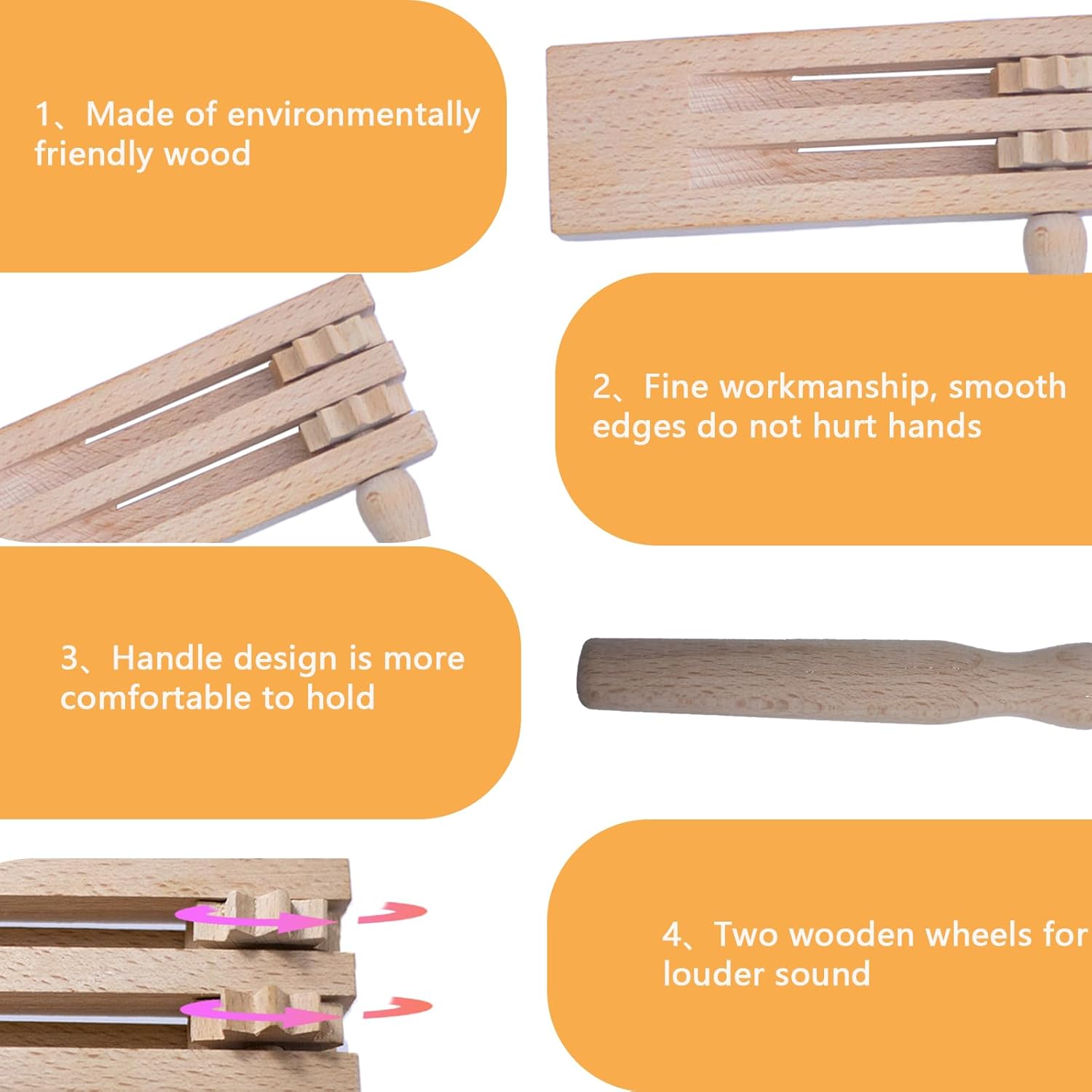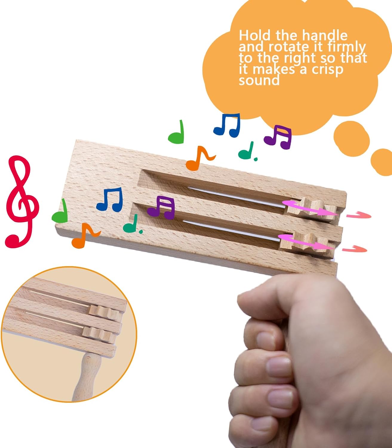 【Contenuto del kit】 Riceverai 2 pezzi di rumori a cricchetto in legno, dimensioni: 15,5 x 15 x 1,6 cm/6,1 x 5,9 x 0,63 pollici, leggeri e compatti, facili da trasportare, in grande quantità, adatti per le tue riunioni e attività quotidiane, aggiungi buon divertimento alle attività della tua festa. 【Materiale naturale】 Il doppio cricchetto rotante è realizzato in legno naturale, atossico e inodore, sicuro da usare. La superficie finemente lucidata del sonaglio è liscia e priva di bave, quindi non devi preoccuparti di ferirti le mani mentre giochi. Ben fatto e robusto, quindi non facile da rompere, sia per l'uso quotidiano che per la conservazione a lungo termine, ti offre un'esperienza durevole e duratura. 【Fai un forte rumore】 Il nostro cricchetto in legno è costituito da una base in legno e due maniglie rotanti. Tutto quello che devi fare è girare le maniglie per produrre un tono nitido ed entusiasta. Perfetto per tutti i tipi di feste, eventi entusiasti ed emozionanti competizioni sportive e altre occasioni per esprimere la tua eccitazione e gioia. 【Strumento musicale per bambini】 Il cricchetto a sonaglio in legno è molto piccolo, il design della maniglia può essere tenuto meglio con una mano, perfetto per far giocare i bambini. Stimolare l'interesse dei bambini, migliorare la consapevolezza del suono dei bambini, sviluppare il senso della musica, aiutare a migliorare l'udito o il livello musicale. 【Applicazione versatile】 I giocattoli con strumenti a cricchetto sono adatti per celebrazioni, eventi sportivi, spettacoli musicali e feste, ecc. Possono anche simulare abilmente il suono degli zoccoli dei cavalli, il cinguettio degli uccelli e altri suoni naturali, fornendo un'esperienza sonora unica e vivida per varie occasioni.