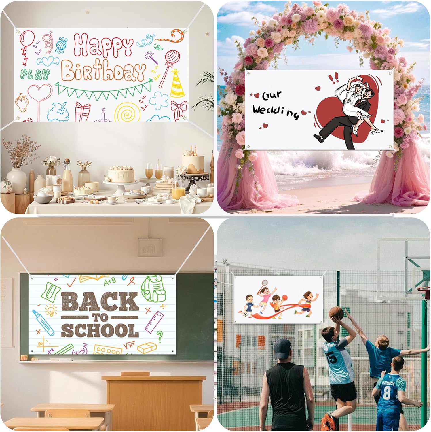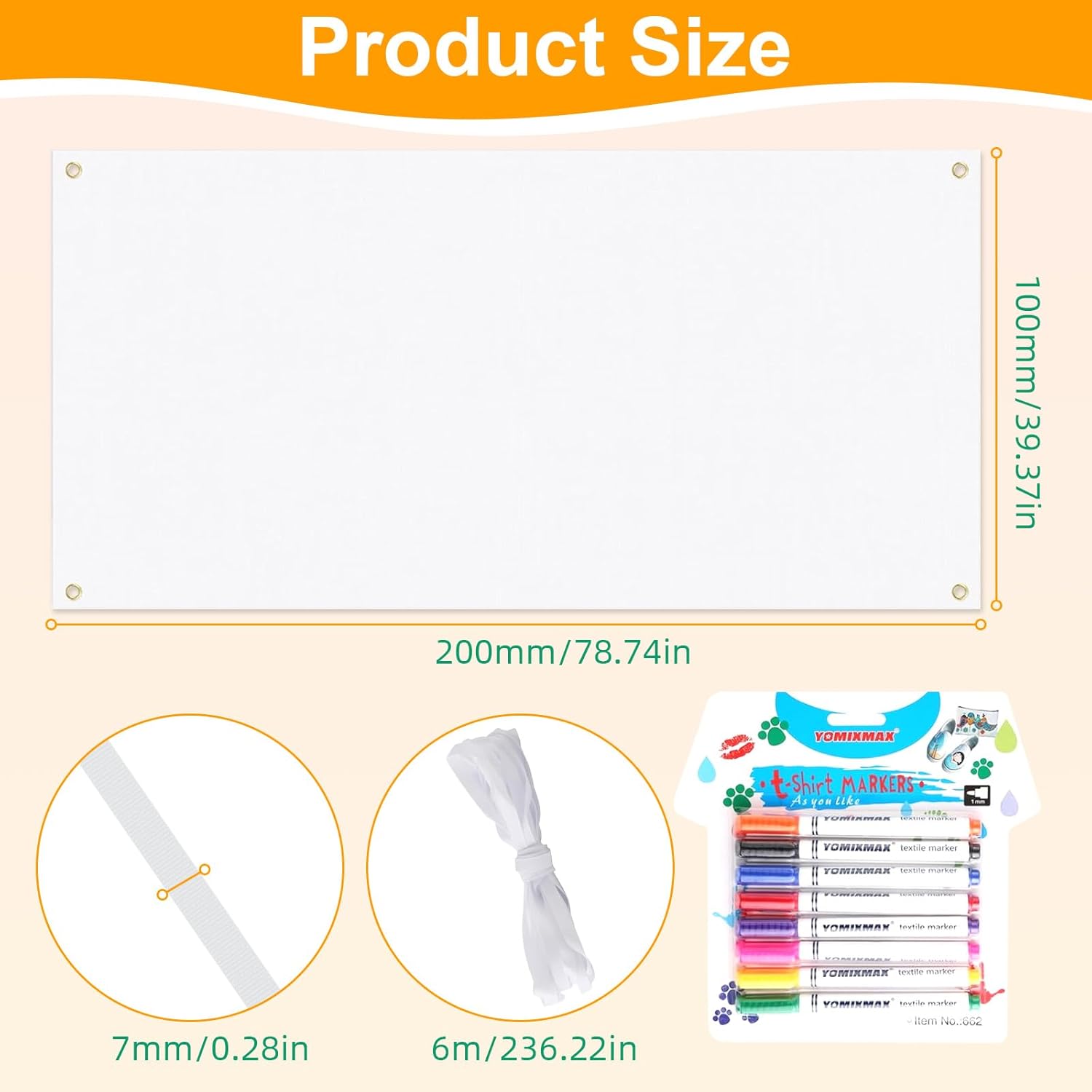 CONTENUTO DELLA CONFEZIONE: Riceverai 2 striscioni bianchi vuoti con dimensioni 180x60 cm e 2 corde per appendere con lunghezza 6 m. Ci sono anche 8 penne per tessuti di colori diversi, la bandiera bianca può essere dipinta su entrambi i lati senza sbavature di colore, che puoi utilizzare per progettare gli striscioni secondo le tue idee ARTIGIANATO SQUISITO: il poster bianco è realizzato in poliestere di alta qualità, resistente, leggero, non facile da sbiadire o rompersi. facile da trasportare e riutilizzato molte volte. La bandiera fai-da-te è perfettamente tagliata e sigillata con doppie cuciture tutt'intorno per garantire che la bandiera bianca abbia bordi lisci, non sia floscia e non sia facile da sbavare; la parte centrale è piatta e diritta FACILE DA INSTALLARE: installare questa bandiera fai-da-te è comoda e facile, basta collegare le corde con gli occhielli metallici. Progetta la tua bandiera è facile da installare e rimuovere. Devi solo appenderlo dove vuoi decorare. E le robuste corde sospese ti aiutano ad appenderlo al muro, al balcone, ecc. BANNER VUOTO VERNICIABILE: puoi dare libero sfogo alla tua immaginazione per progettare tu stesso il banner pubblicitario, colorare, dipingere, disegnare, scarabocchiare e decorare bandiere, esprimere le tue idee e fare lavoretti. Che si tratti di colori con le dita, colori acrilici, vernici spray, pennarelli, pennarelli o colori per tessuti, la bandiera avrà sicuramente successo e farà scalpore al prossimo bazar, festival, festa di strada o cittadina. AMPIO UTILIZZO: I nostri striscioni verniciabili possono essere appesi al muro, alla recinzione, al tetto, al portico e così via, per decorazioni interne ed esterne. Può essere utilizzato anche nelle attività dei centri commerciali, mostre, pubblicità. Lo striscione di compleanno è adatto anche per scrivere cartelli di bentornato a scuola, cartelli di apertura/chiusura, cartelli per feste a tema e decorazioni di Halloween