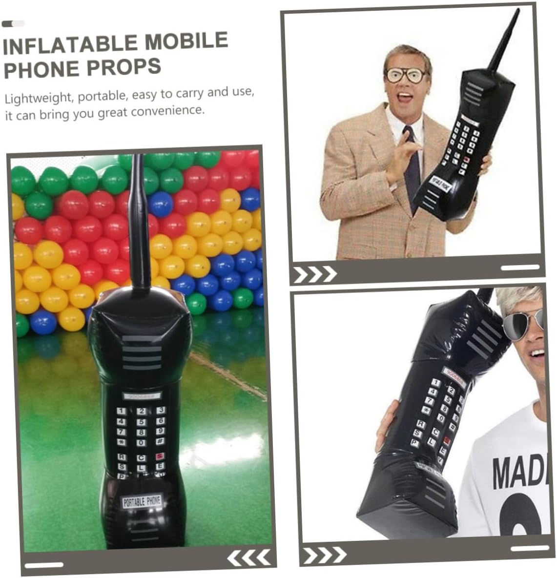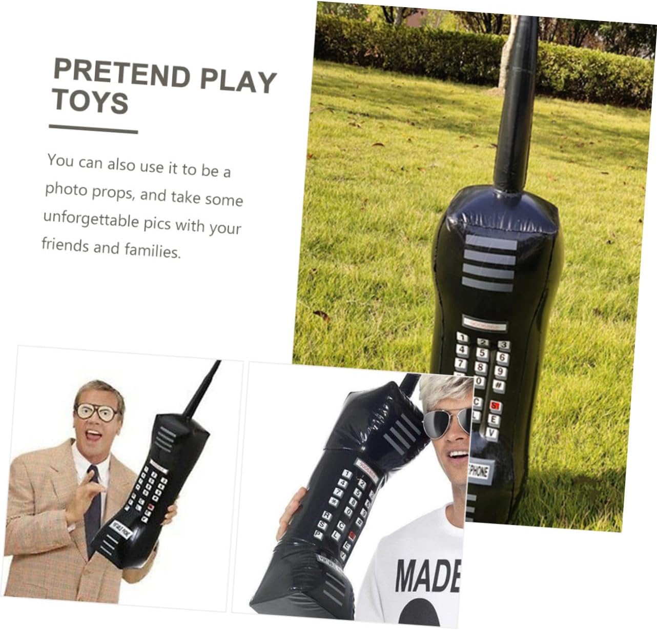 Telefono giocattolo per bambini: puoi giocare con questo finto telefono giocattolo gonfiabile per rendere la tua festa più divertente e migliorare l'atmosfera della festa, supporto per cellulare. Fai finta di telefono: non solo può essere utilizzato come supporto per spettacoli, ma anche come decorazione per feste a tema vintage, finto telefono giocattolo. Microfoni gonfiabili come accessori per telefoni cellulari: facili da usare, facili da tenere e facili da trasportare. Questo è un oggetto meraviglioso per ridere e divertirsi, un supporto per cellulare retrò Supporto per cellulare: il design leggero rende facile per i bambini afferrarlo, pratico e divertente, cellulare per bambini portatile Oggetti di scena per cellulari gonfiabili: può essere una buona scelta per i tuoi amici e bambini, a loro piacerà molto, giocattolo gonfiabile