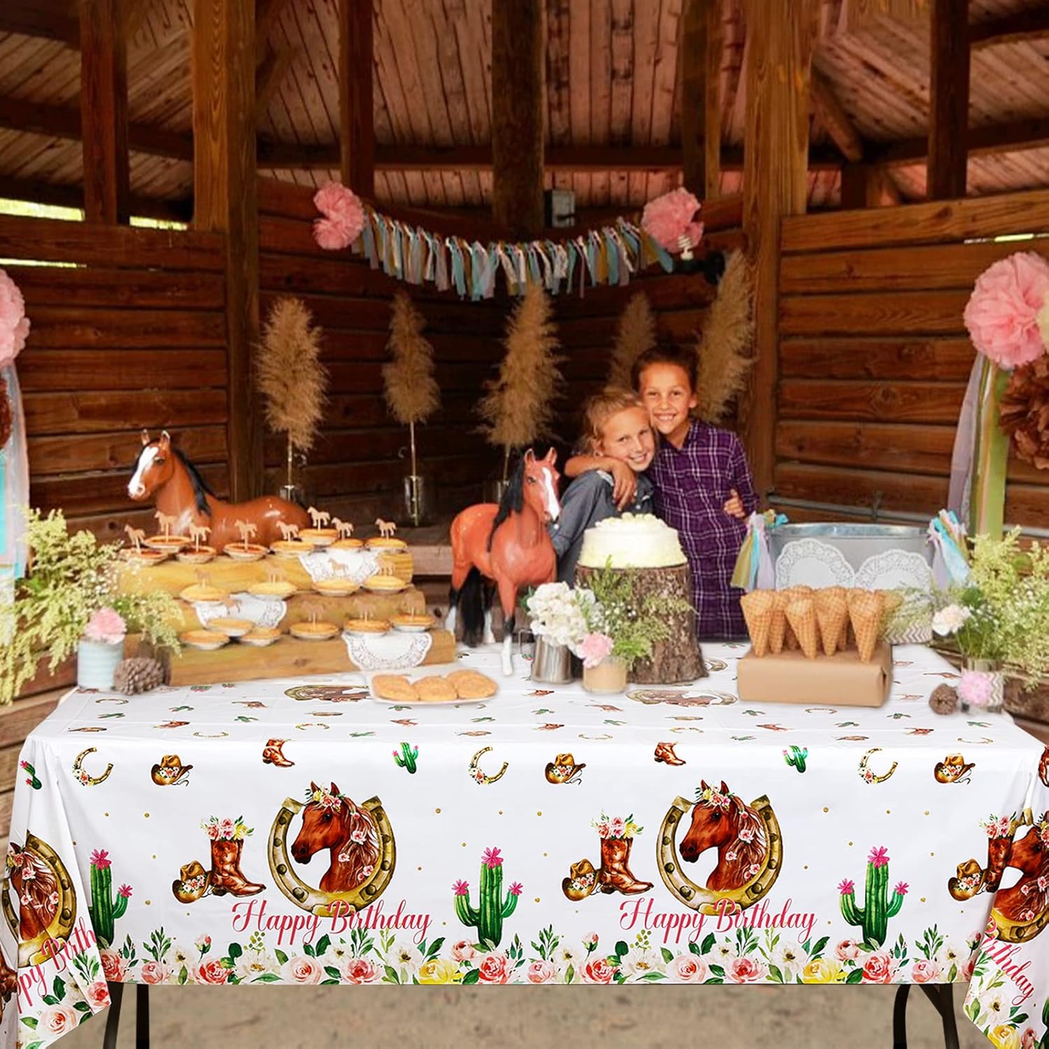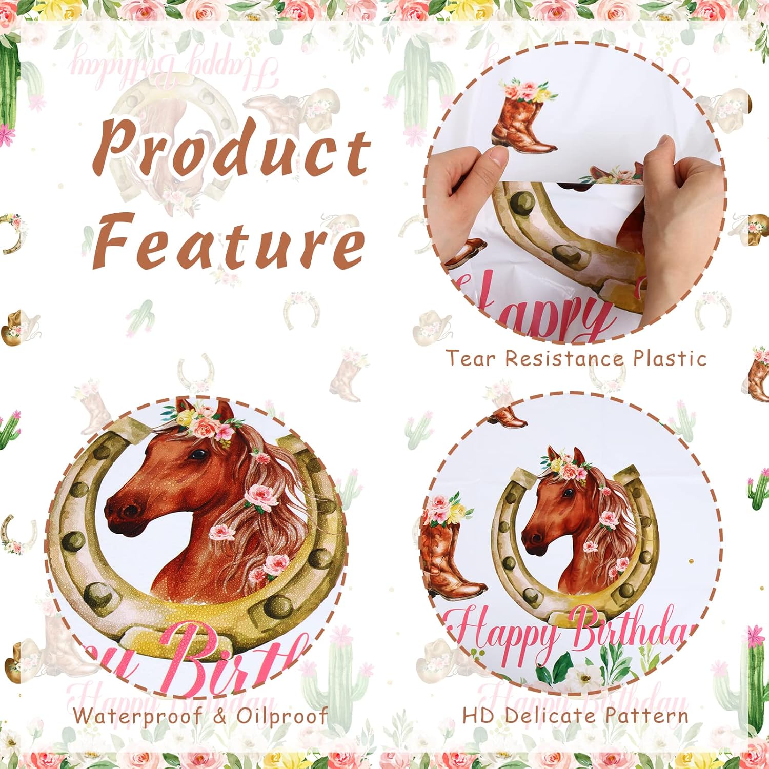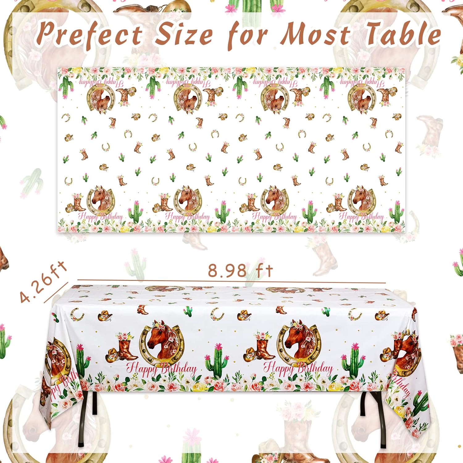Il pacchetto include: 2 tovaglie per feste di compleanno a tema cavallo cowgirl occidentale in confezione da 2 possono essere buone forniture per feste in grado di soddisfare le tue esigenze di utilizzo e decorazione. Bellissimo aspetto: lo stile principale riguarda il tema Western Cowgirl, come puoi vedere, i cavalli selvaggi, i cactus e i fiori sono stampati sulla tovaglia, quando aggiungi questa tovaglia alla tua festa, sentirai la naturale atmosfera occidentale sulla scena. Design meraviglioso: il colore rosa della tovaglia per la festa di buon compleanno a tema cavallo è bellissimo con vivaci motivi floreali e di cavalli su di essa. È adatto per le feste di compleanno delle ragazze. Puoi decorare il tavolo dei regali o il tavolo delle torte con questa tovaglia, che renderà la scena del tuo compleanno più sognante e bella. Ampio utilizzo: queste tovaglie per feste di compleanno a tema cavallo hanno due pezzi in totale. Oltre ad essere utilizzato come tovaglia, puoi usarlo come sfondo a tema o sfondo per le riprese, in modo che tu e la tua famiglia possiate scattare bellissime foto anche alla festa di compleanno. Buona qualità: questa tovaglia è realizzata in plastica, può essere facilmente pulita e asciugata se sporca accidentalmente. Non preoccuparti che si sporchi.