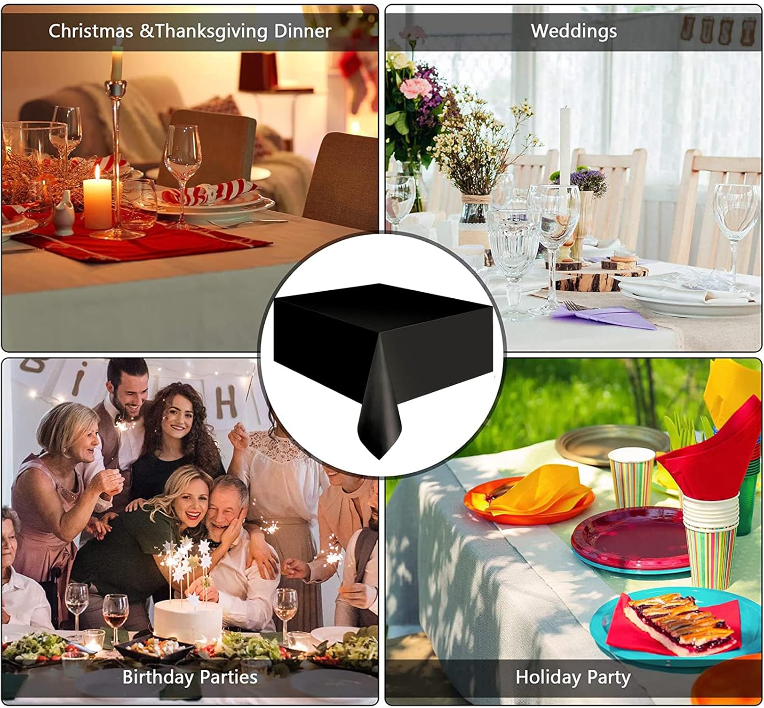 Materiale: la tovaglia è realizzata al 100% in PVEA, biodegradabile, ecologica, non tossica e innocua per il corpo umano. Il materiale plastico può essere riciclato, riducendo al minimo l'impronta di carbonio. Dimensioni: ogni tovaglia misura circa 137 x 274 cm (54 x 108 pollici), adatta per la maggior parte dei tavoli rettangolari di diverse dimensioni. Riutilizza o smaltisci: dopo la festa, basta sciacquare e asciugare le tovaglie di plastica per riutilizzarle alla festa successiva oppure arrotolarle e buttarle via. Colori diversi: lascia correre la tua fantasia. Queste tovaglie sono disponibili in una varietà di colori e stili per adattarsi al tuo umore speciale, permettendoti di ospitare diversi temi di festa. MULTIUSO: Queste tovaglie di plastica usa e getta sono ideali per feste, matrimoni, catering, Ringraziamento, Natale, baby shower, barbecue, eventi all'aperto, catering, decorazioni natalizie, ristoranti, uso domestico e qualsiasi altro evento.