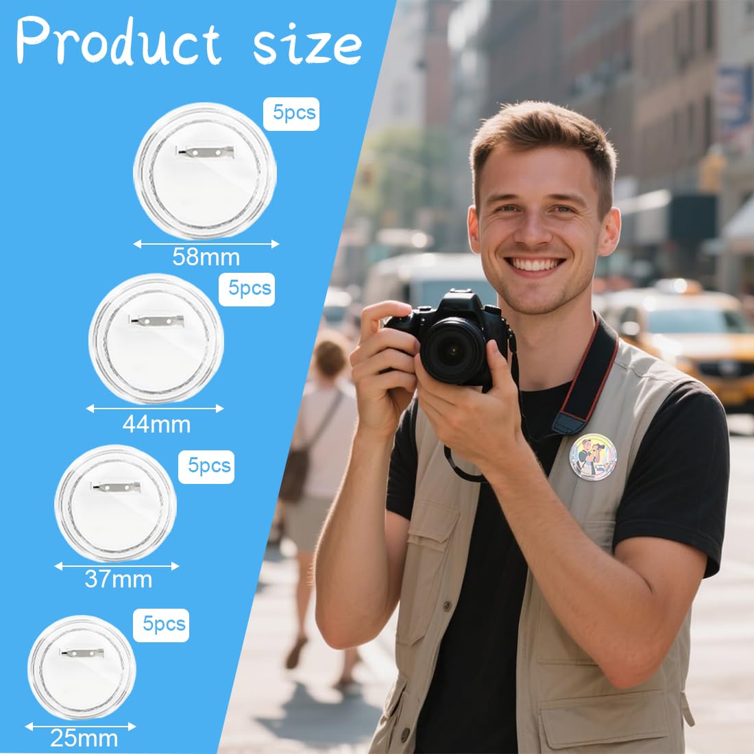 Ampia combinazione: 20 badge acrilici in 4 dimensioni da 25 a 58 mm, 5 pezzi ciascuno per soddisfare le diverse esigenze creative. Che tu stia realizzando spille o oggetti decorativi, troverai la dimensione giusta. Fai da te creativo: materiale acrilico vuoto, puoi disegnare e incollare liberamente foto, usare la tua immaginazione per creare il tuo badge, adatto all'interazione genitore-figlio, lezioni di artigianato e stimolazione dell'ispirazione creativa. Materiale di alta qualità: realizzato in acrilico trasparente, ha una consistenza forte, non facile da rompere, superficie liscia, buoni effetti di stampa e pittura, può visualizzare chiaramente motivi creativi e può essere conservato a lungo. Personalizzazione della scena: il badge finito può essere indossato come badge per attività e identificazione della festa; può essere utilizzato anche per decorare borse e articoli di cancelleria per aggiungere personalità, il che è pratico e interessante. REGALO IDEALE: regalalo come pacchetto di materiali fatti a mano ad amici e bambini amanti dell'artigianato per trasmettere il divertimento creativo; la spilla finita può anche essere utilizzata come regalo unico per esprimere i tuoi pensieri.