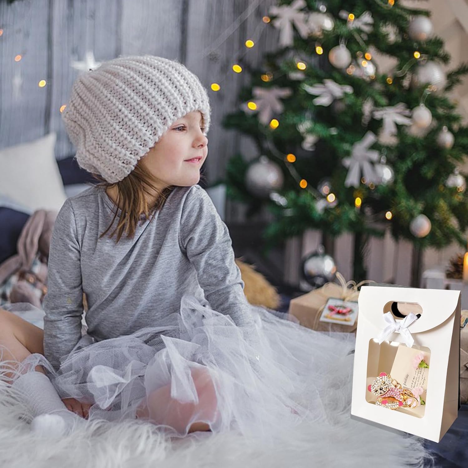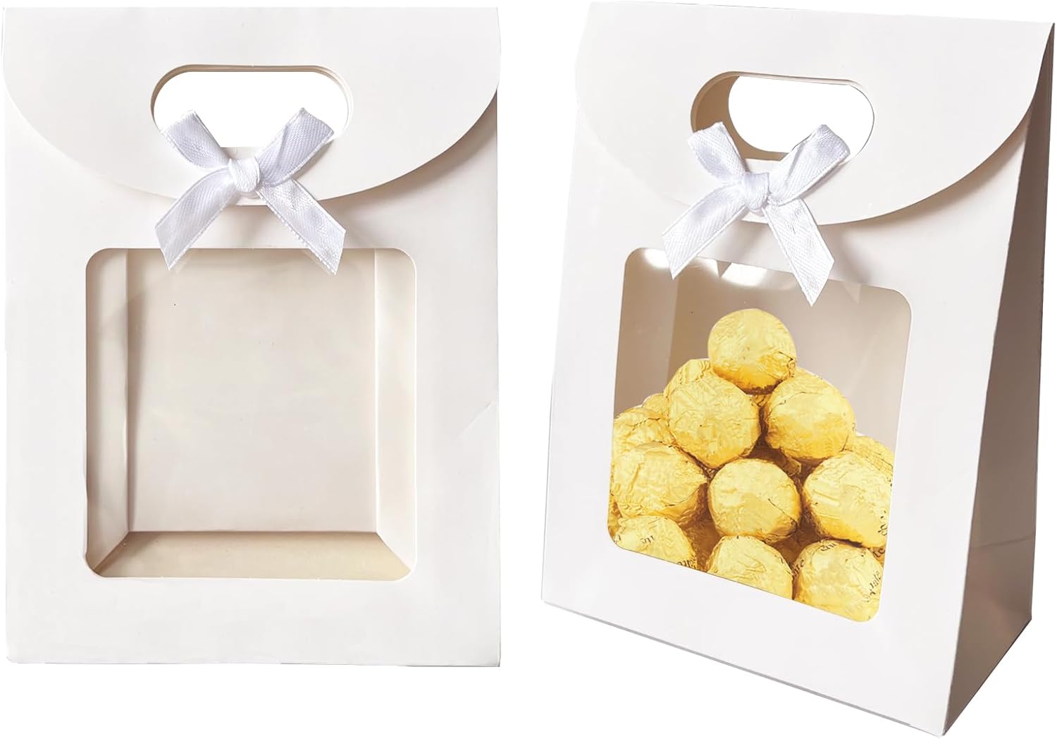 【Materiale di alta qualità】: i sacchetti di carta bianca sono realizzati in carta kraft. Il sacchetto regalo è spesso e resistente, bello, liscio al tatto, non facile da danneggiare, riutilizzabile, non tossico e può essere utilizzato a lungo. 【Design perfetto】: la confezione regalo in carta kraft ha una maniglia e una finestra di visualizzazione, che non solo la rende facile da tenere ma ti consente anche di vedere gli oggetti all'interno. Inoltre, la base rettangolare garantisce che la borsa rimanga in posizione verticale e così tutto ciò che contiene. Facile da riporre: i sacchetti di carta kraft bianca sono pieghevoli e misurano ca. 7*14*20 cm quando aperto e ca. 2*14*20 cm quando piegato. Puoi riporre le scatole regalo Kraft in posizione piatta in modo che non occupino troppo spazio. 【Versatile】 Il sacchetto regalo in carta kraft bianca può essere utilizzato per confezionare cioccolatini, dolci nuziali, dolci, gioielli e piccoli regali. Può essere utilizzato per Natale, compleanni, appuntamenti, lauree, Pasqua e altre festività. 【Il miglior regalo】: i sacchetti regalo con finestra bianca sono perfetti per confezionare regali o regali principali, pieni di regali, dolci, snack e altro per i tuoi cari. Stupirai i tuoi cari.