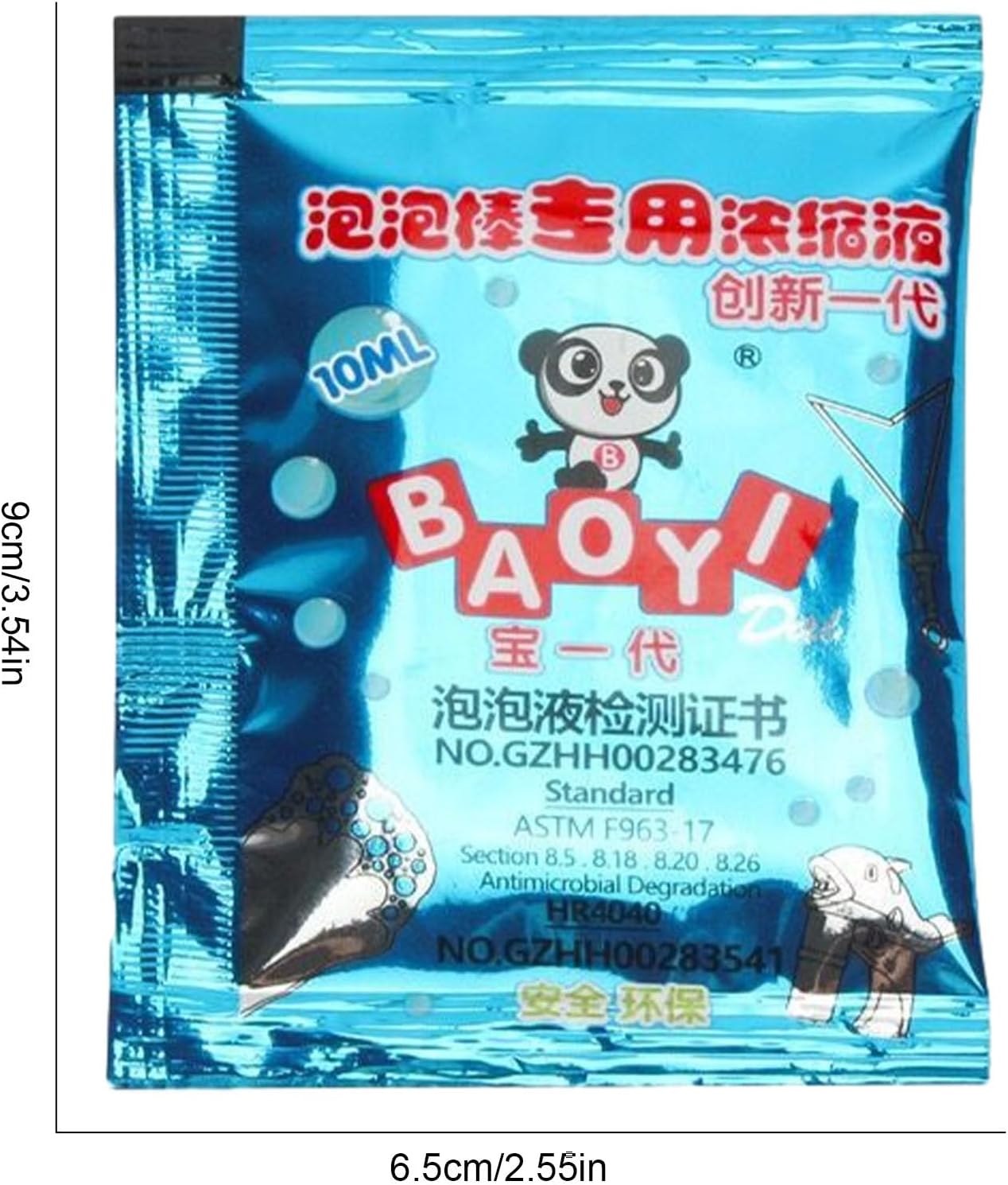 Prestazioni di bolle superiori: ottieni risultati eccezionali con la nostra soluzione di bolle altamente concentrata e diluita, perfetta per l'uso nei generatori di bolle. Diluire con acqua in rapporto 1:6 e mescolare uniformemente per creare bolle più durature che i tuoi bambini adoreranno. Piacere abbagliante: una ricarica di soluzione a bolle ultraleggera, volante e resistente che soddisferà tutti. Con migliaia di bolle luminose, è perfetto per ogni occasione. I passanti rimarranno colpiti dalla performance abbagliante che renderà il vostro evento ancora più attraente. Soffiare senza sforzo: goditi il divertimento di soffiare bolle sempre e ovunque con questa ricarica di soluzione per bolle facile da trasportare. L'imballaggio ecologico previene le perdite e si adatta perfettamente alla tua tasca. ECOLOGICA E CONCENTRATA: la nostra ricarica per la soluzione di bolle è composta da saponine naturali e crea bolle di sapone ricche e di lunga durata, pur essendo sicure per i bambini. Ottieni 20 confezioni di liquido concentrato da 10 ml, sufficienti per preparare 100 ml di soluzione per bolle e goderti ore di divertimento. Ampia applicazione: rendi il tuo divertimento all'aria aperta ancora più emozionante con questa ricarica di concentrato di bolle che funziona con diversi giocattoli a bolle. Perfetto per il campeggio e la spiaggia, lezioni di scienze a scuola e feste di compleanno. Questa ricarica ti consente di intrattenere le bollicine nel tuo giardino, parco o qualsiasi altro luogo di tua scelta.