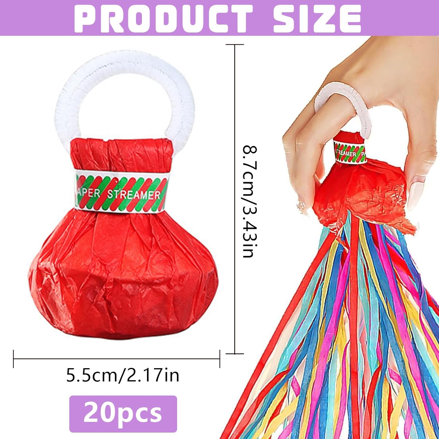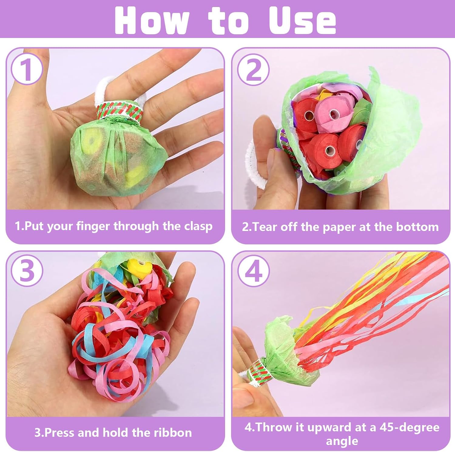 🎉 【La confezione include】 Riceverai 20 pezzi di stelle filanti da lanciare a mano in colori casuali che misurano 8,7 x 5,5 cm. Ogni streamer lanciato a mano è composto da 30 pezzi di nastri colorati. Puoi facilmente aggiungere un po' di pepe alla tua festa o al tuo evento con questi streamer lanciati a mano. 🎉【Materiali di alta qualità】Le stelle filanti per il lancio delle feste sono realizzate in carta di alta qualità con pregevole fattura, colori brillanti, sono atossiche e innocue, sane e sicure, puoi usarle senza preoccupazioni. 🎉【Facile da usare】Basta inserire le dita nell'impugnatura del lancio dello streamer nuziale, staccare l'involucro inferiore e lanciarlo con un angolo di 45 gradi dall'alto verso il basso per creare uno straordinario effetto visivo. 🎉【Pulizia rapida】I nastri degli streamer party bomb sono collegati tra loro. Dopo l'uso, devi solo prendere un'estremità dello streamer e non rimarranno residui. Più facile da pulire dei coriandoli e riduce significativamente il tempo e l'energia spesi per pulire dopo la festa. 🎉 【Ampia applicazione】 Questi streamer manuali sono perfetti per feste, matrimoni, compleanni, carnevali, balli studenteschi, lauree, Halloween, Natale e altre celebrazioni, offrendo un'esperienza indimenticabile per te, la tua famiglia e i tuoi amici.