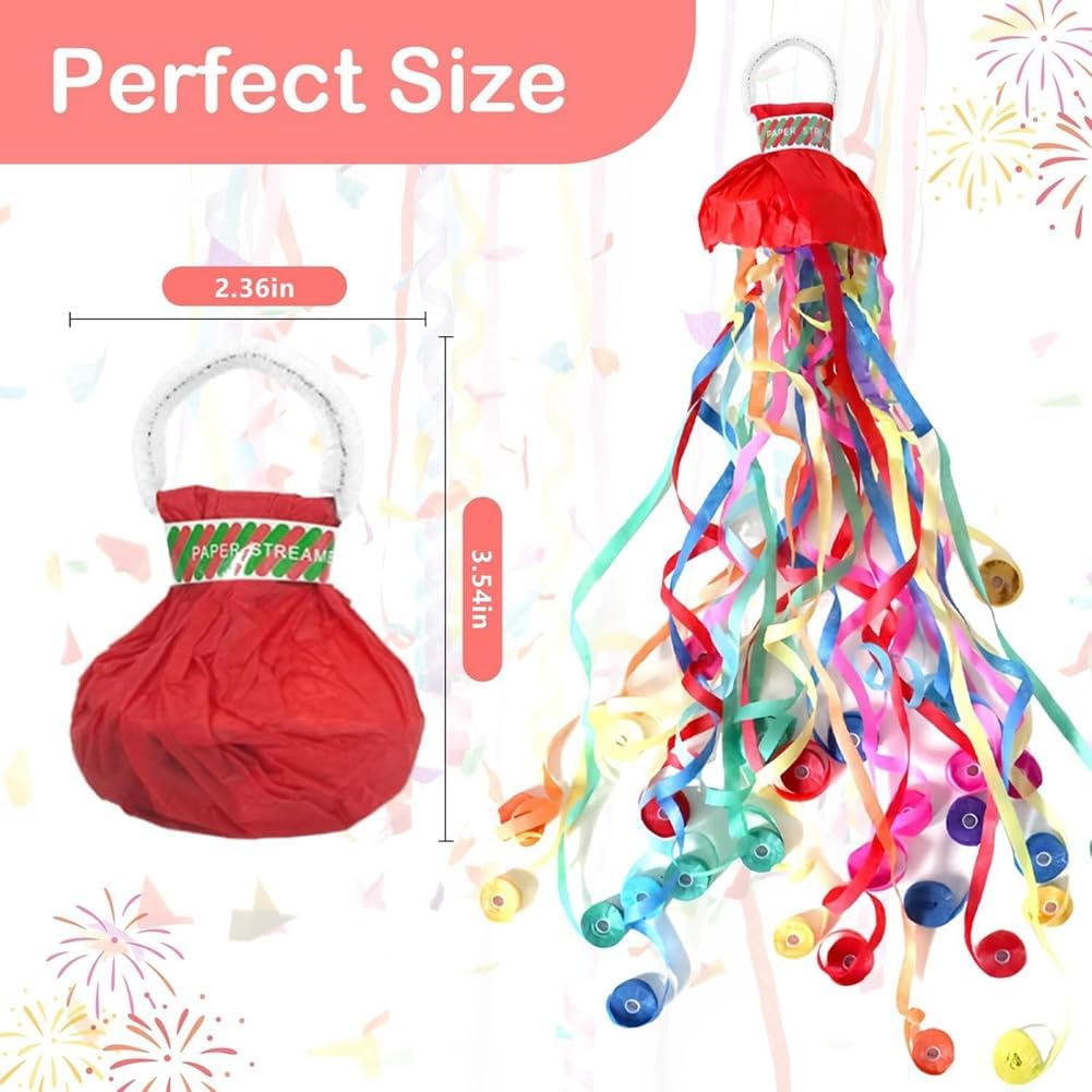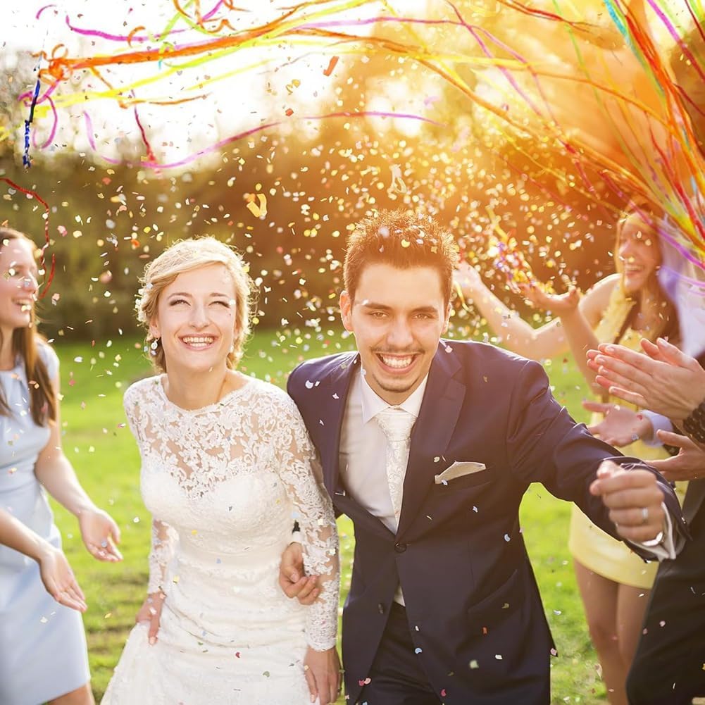 SET COMPLETO: la confezione contiene 20 petardi, ciascuno riempito con 30 stelle filanti che misurano fino a 5 metri. Questi streamer colorati sono ideali per creare un'atmosfera festosa durante qualsiasi celebrazione e garantiranno che il tuo evento sia indimenticabile. NESSUN DISORDINE, PULIZIA FACILE: a differenza dei coriandoli tradizionali, questi stelle filanti sono progettati per una celebrazione pulita. Raccoglili semplicemente e smaltiscili dopo l'evento. Questa funzione rende la pulizia post-festa un gioco da ragazzi, dandoti più tempo per goderti i festeggiamenti. Design intuitivo: attiva gli streamer utilizzando le dita attraverso la maniglia ad anello e strappando la carta inferiore. Lanciali con un angolo di 45 gradi e guarda i coriandoli svolazzare meravigliosamente nell'aria, migliorando l'atmosfera della festa. Sicuri e silenziosi: questi streamer sono realizzati in carta biodegradabile ignifuga e progettati per un utilizzo sicuro. Non producono rumore quando attivati, il che li rende perfetti per l'uso in presenza di bambini e animali domestici, garantendo un ambiente di festa sicuro. Strumento versatile per le celebrazioni: perfetto per una varietà di occasioni tra cui compleanni, matrimoni, lauree e altro ancora. Questi streamer offrono anche fantastiche opportunità fotografiche e aggiungono un tocco di giocosità ai tuoi momenti speciali e ai post sui social media.