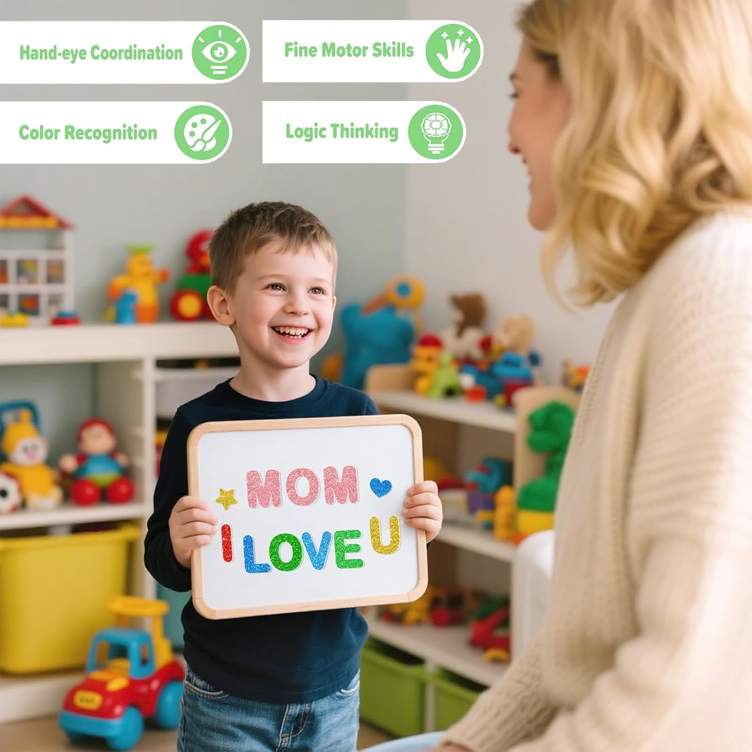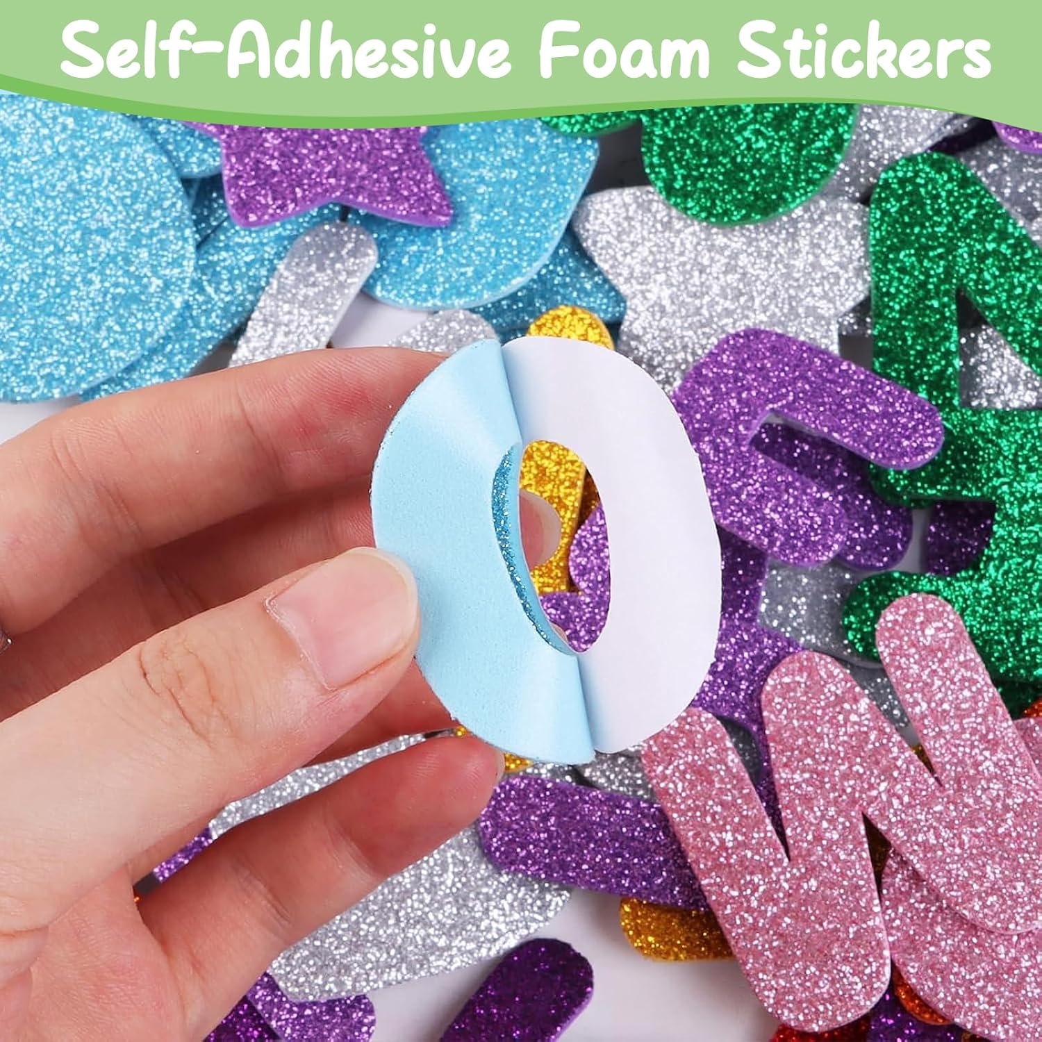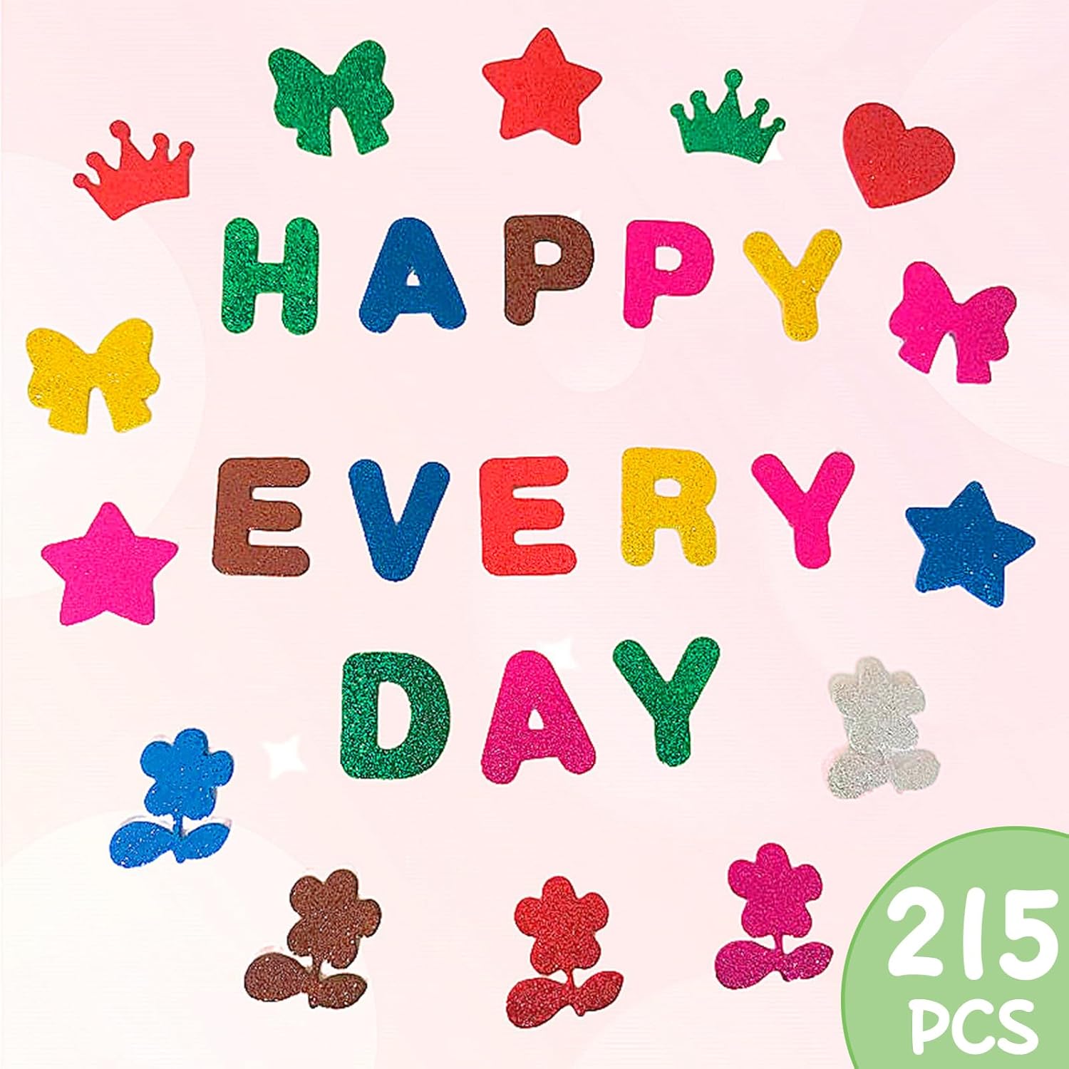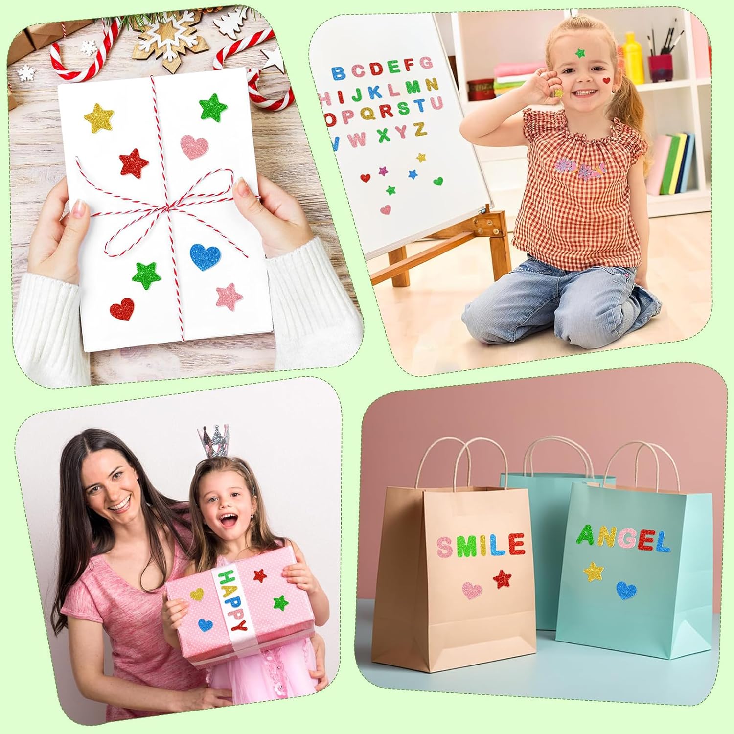 Materiale sicuro: le nostre lettere autoadesive in gommapiuma sono realizzate in materiale EVA sicuro e non tossico. La superficie è rivestita con polvere d'oro scintillante, morbida e resistente agli strappi, che la rende sicura per i bambini. Le lettere in gommapiuma hanno colori vivaci e sembrano lucenti e radiose. I colori vivaci promuovono la percezione dei colori dei bambini. Puoi usarlo con sicurezza Set alfabeto in schiuma: questo set di lettere in gommapiuma contiene 26 adesivi con lettere in 7 colori diversi, comprese lettere dalla A alla Z, stelle e cuori. In questo modo puoi scrivere tutte le parole inglesi senza errori. Con un totale di 215 lettere, imparare l'alfabeto è divertente. Gli adesivi autoadesivi con lettere in feltro promuovono la creatività e le capacità di ortografia dei bambini. Design autoadesivo: gli adesivi con lettere sono autoadesivi. Basta staccare la parte posteriore e attaccarlo ovunque. L'adesivo con lettere è adatto per superfici lisce e pulite. Non è necessaria alcuna colla aggiuntiva. I bambini possono utilizzare gli adesivi in qualsiasi momento. L'applicazione è semplice e conveniente. Ideale per realizzare giocattoli educativi: questa lettera autoadesiva in gommapiuma non è solo di alta qualità, ma anche educativa. Con le lettere adesive lampeggianti, i genitori possono interagire con i propri figli, insegnare loro a leggere e distinguere i colori e rafforzare la relazione genitore-figlio. Le lettere per il cono scolastico hanno colori diversi che promuovono la vista e lo sviluppo cognitivo e danno ai tuoi figli la gioia di apprendere. Versatile: queste lettere in gommapiuma sono ideali per progetti scolastici, album di ritagli, cornici per foto e decorazioni di compleanno. La gommapiuma con lettere è ottima anche per sacchetti regalo, creazioni con la carta, cartoline di Natale e opere d'arte personalizzate. Sono adatti anche per le attività di ritorno a scuola, per le attività genitori-figli, ecc., rendendoli un regalo ideale per i bambini in età scolare